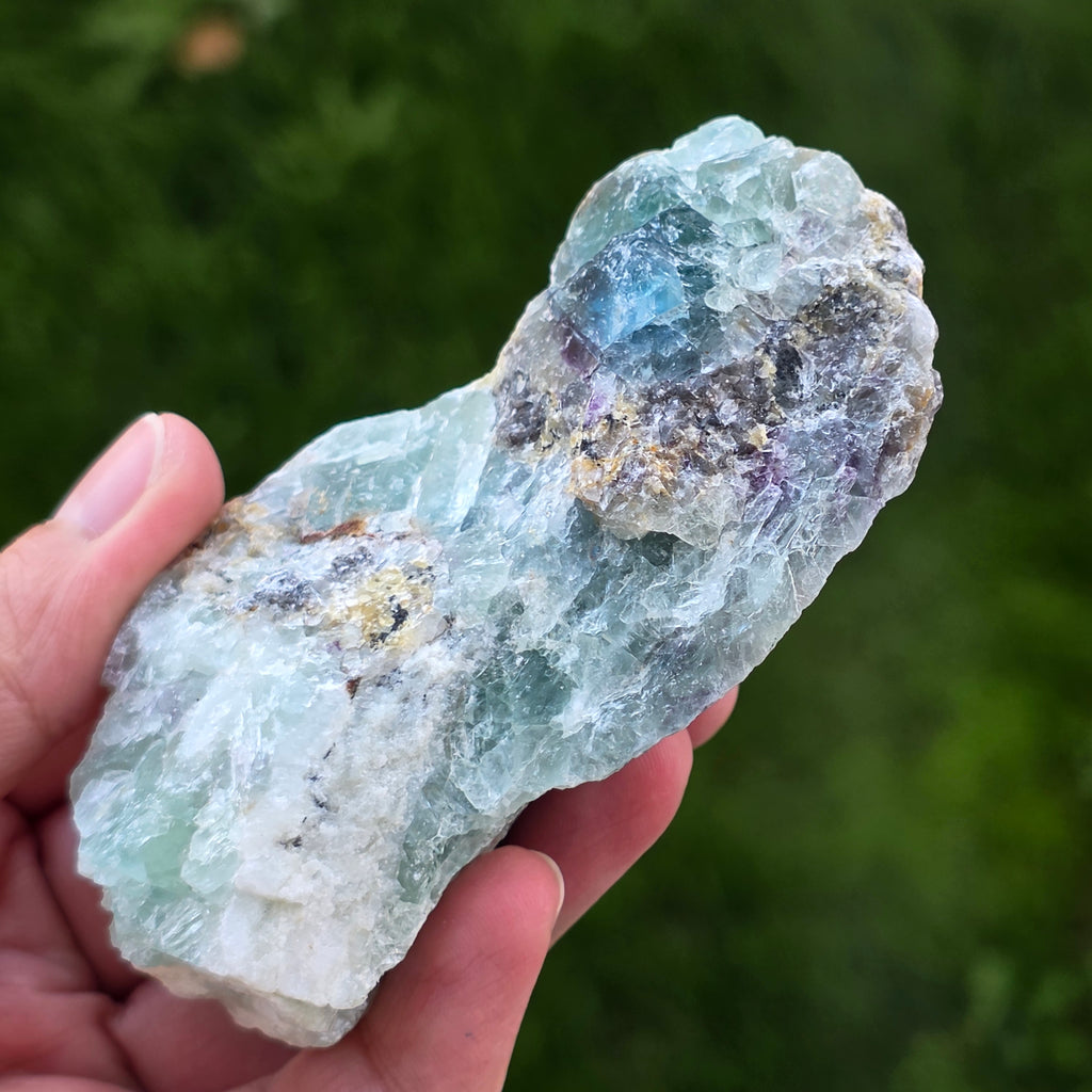 Ο φθορίτης ουράνιου τόξου (πολύχρωμος), με τις φωτεινές αποχρώσεις του πράσινου, μοβ, κίτρινου και άλλων, είναι μια ζωντανή εκδήλωση του ουράνιου τόξου στον κόσμο Κρύσταλλα, προσφέροντας ζωντανή ομορφιά που ευχαριστεί το μάτι και εμπνέει την ψυχή.