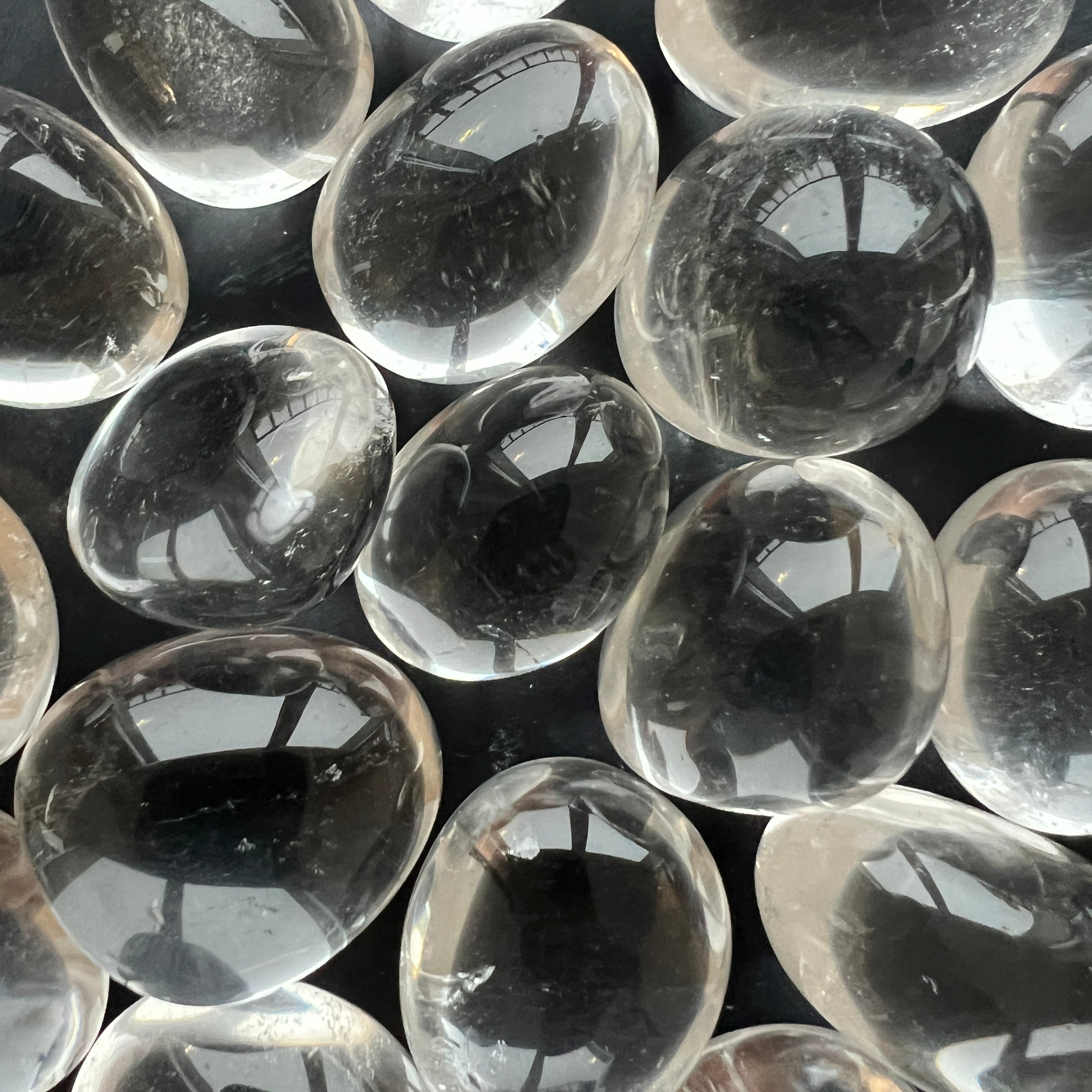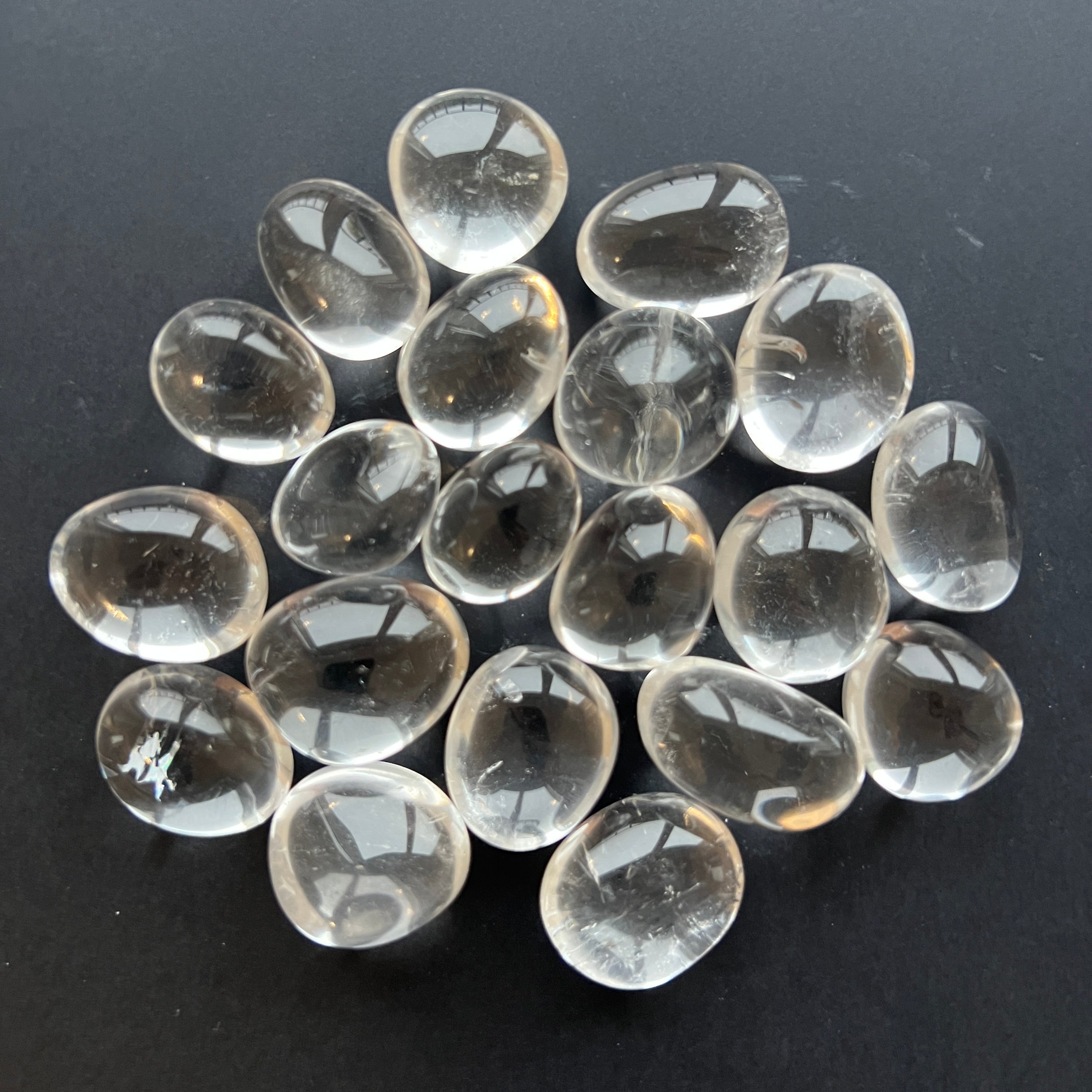 Θραύσματα στερεοποιημένου φωτός, λειασμένα από τον χρόνο και το νερό. Κάθε ένα ICY άχρωμη έλαση χαλαζία φέρει μια κρυστάλλινη διαφάνεια που θυμίζει καθαρό πάγο – καθαρό, ήρεμο και γεμάτο εσωτερική γαλήνη. Η λεία, ελαφρώς γυαλιστερή επιφάνεια αποκαλύπτει λεπτά φυσικά εγκλείσματα και λεπτές αντανακλάσεις που δίνουν την εντύπωση ενός ζωντανού φωτός, παγιδευμένου μέσα στην πέτρα.