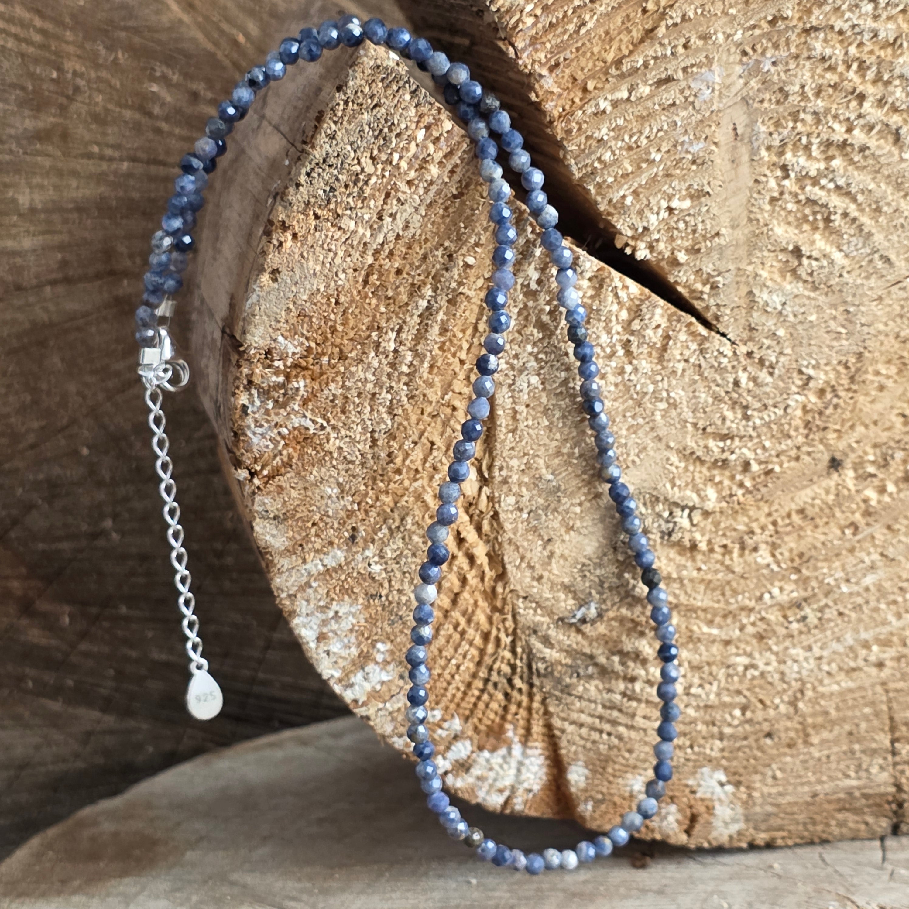 Ένα κολιέ από o Αθόρυβη κομψότητα, που δημιουργήθηκε από Φυσικό ζαφείρι 3mm, των οποίων οι βαθιές αποχρώσεις του μπλε διατηρούν το μυστήριο των καθαρών νυχτών και της εσωτερικής γαλήνης.