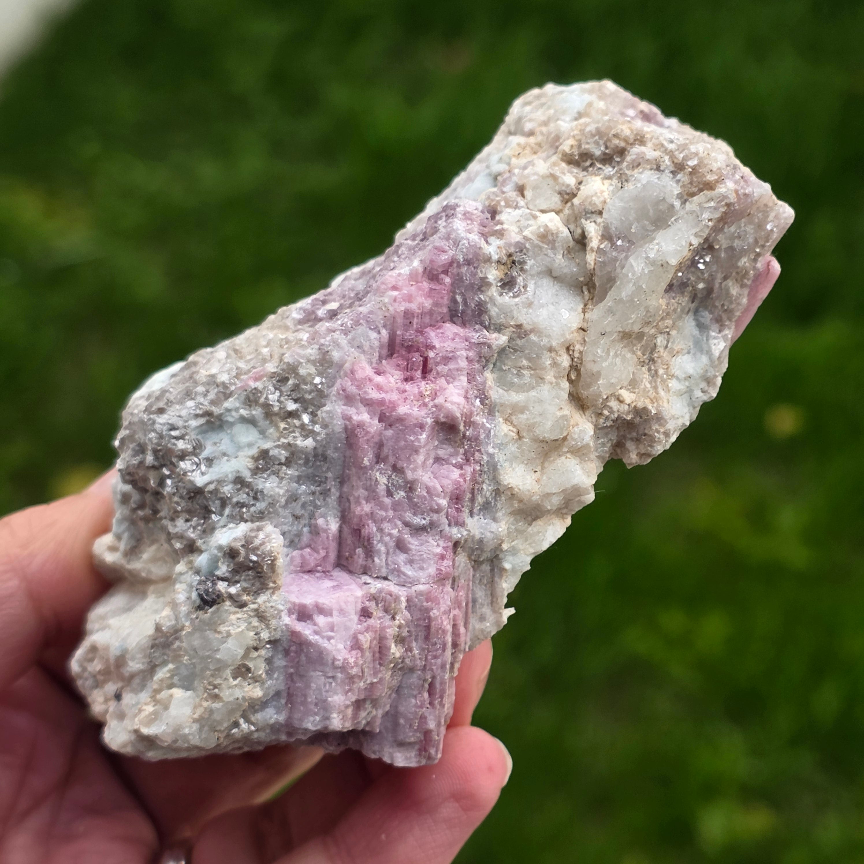 Η ροζ τουρμαλίνη συνδέεται με καρδιακές ενέργειες και θεωρείται ότι έχει ιδιότητες ηρεμιστικής, συναισθηματικής επούλωσης, προώθησης των αυτο -αγαπημένων και αρμονικών σχέσεων.
