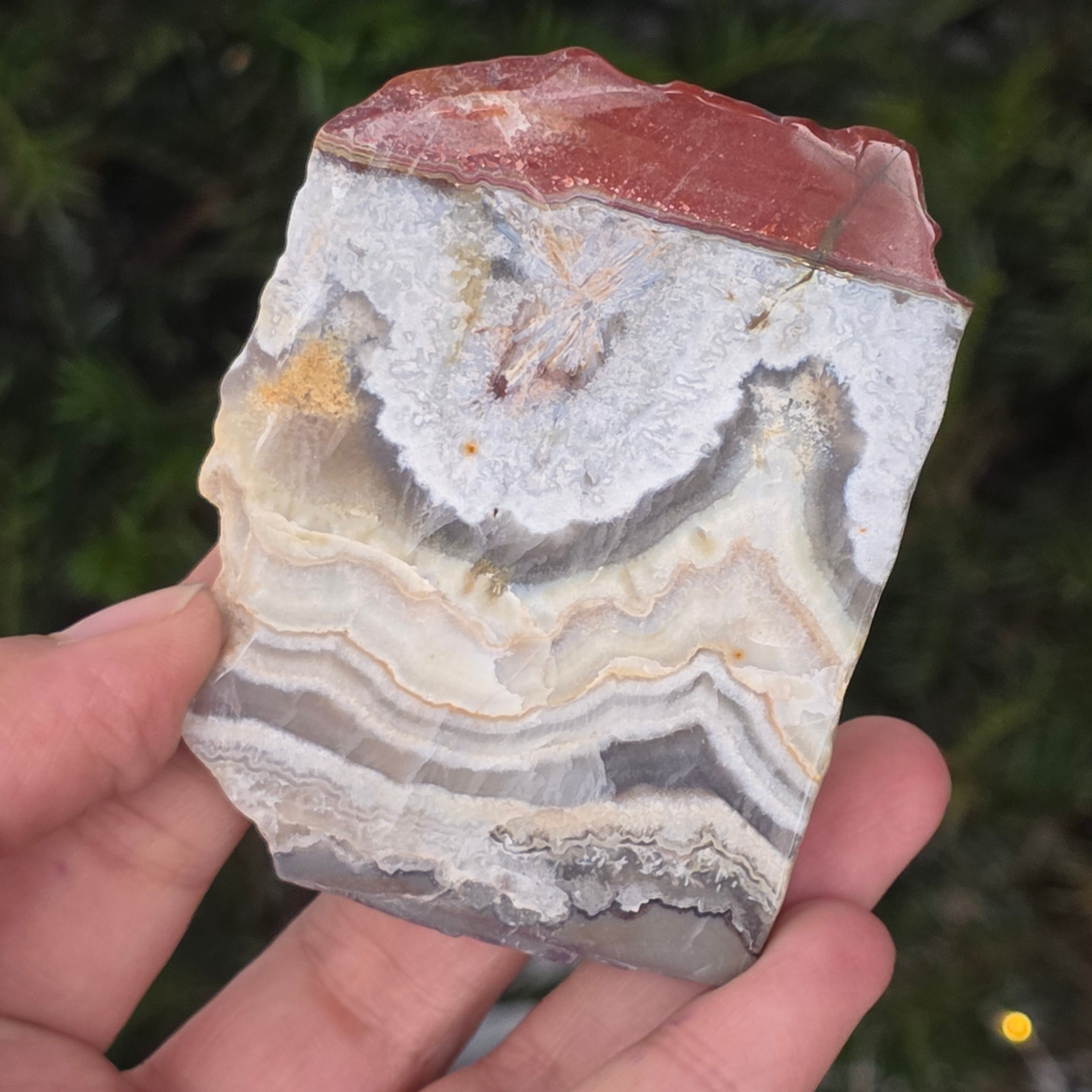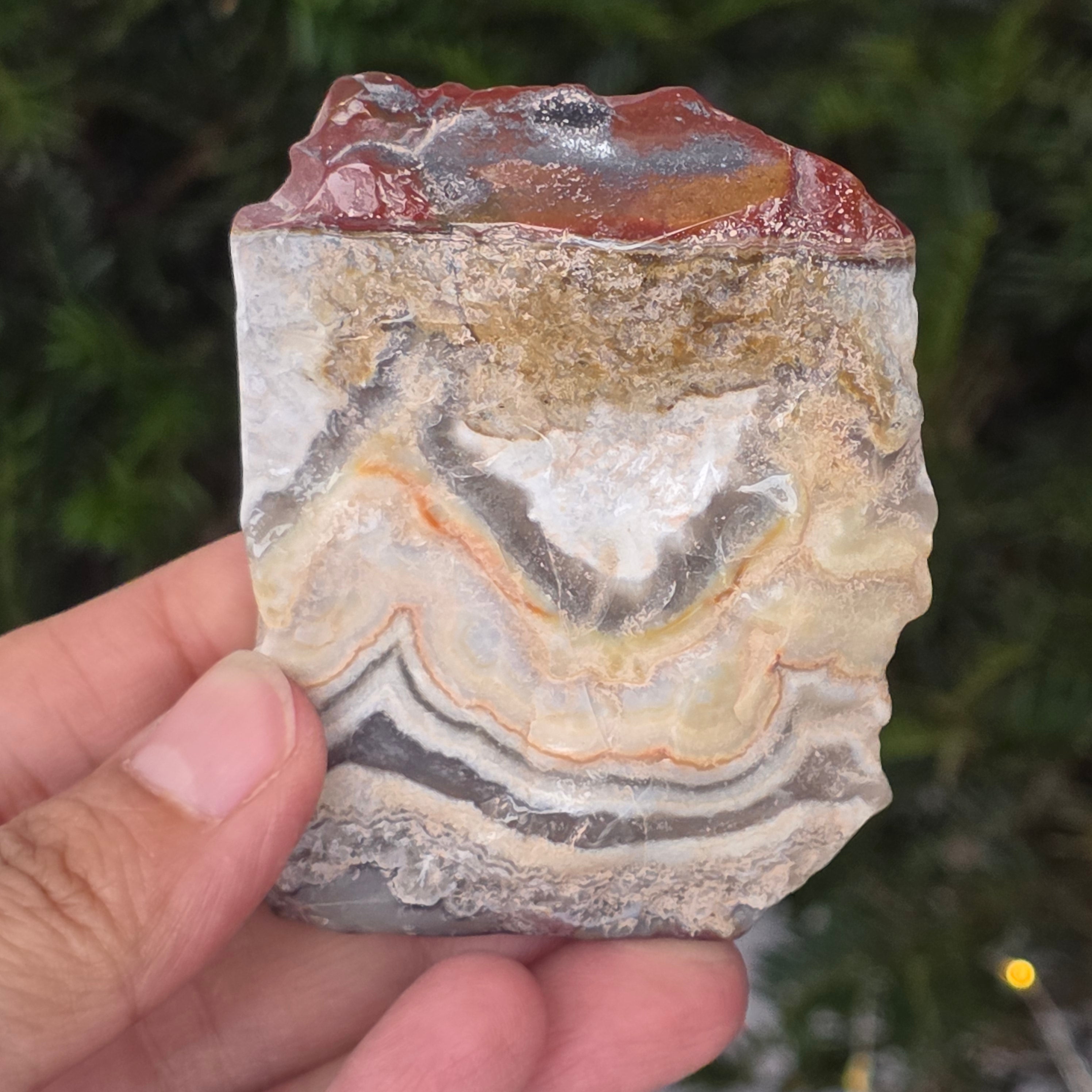 Ο αχάτης Crazy από το Μεξικό είναι μία από τις πιο ζωντανές και εντυπωσιακές ποικιλίες αχάτη, φημισμένος για τις κυματιστές γραμμές του και τα τρελά παιχνίδια χρωμάτων που φαίνεται να έχουν σχεδιαστεί από ένα ελεύθερο χέρι, χωρίς κανόνες. Σε αυτό το φυσικό κομμάτι, μικρό αλλά εξαιρετικά εκφραστικό, αποκαλύπτεται ολόκληρη η ιστορία της πέτρας: γήινα στρώματα, ζεστές αποχρώσεις καραμέλας, έντονο κόκκινο, πορτοκαλί, γκρι και κρεμ, αναμειγμένα σε σπειροειδή σχέδια που μοιάζουν να σφύζουν από ζωή.