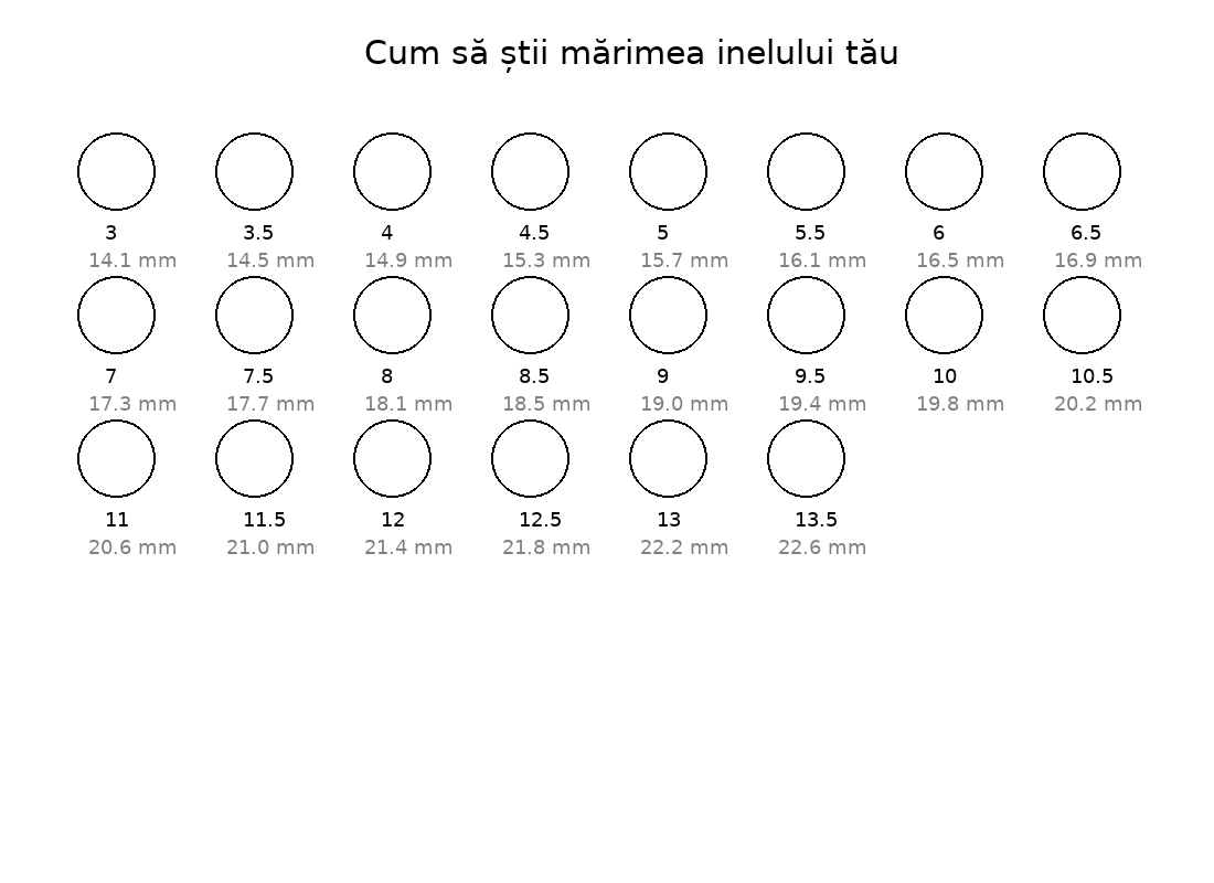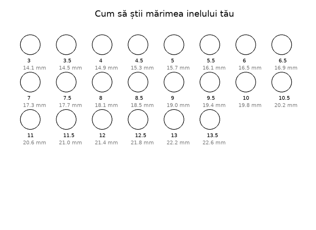 Αν θέλετε να μάθετε ποιο είναι το σωστό μέγεθος, σας το προτείνουμε μετρήστε ένα δαχτυλίδι που σας ταιριάζει καλά και συγκρίνετε το μέγεθος με διάγραμμα μεγεθών δαχτυλιδιού διαθέσιμο στη συλλογή φωτογραφιών του προϊόντος.