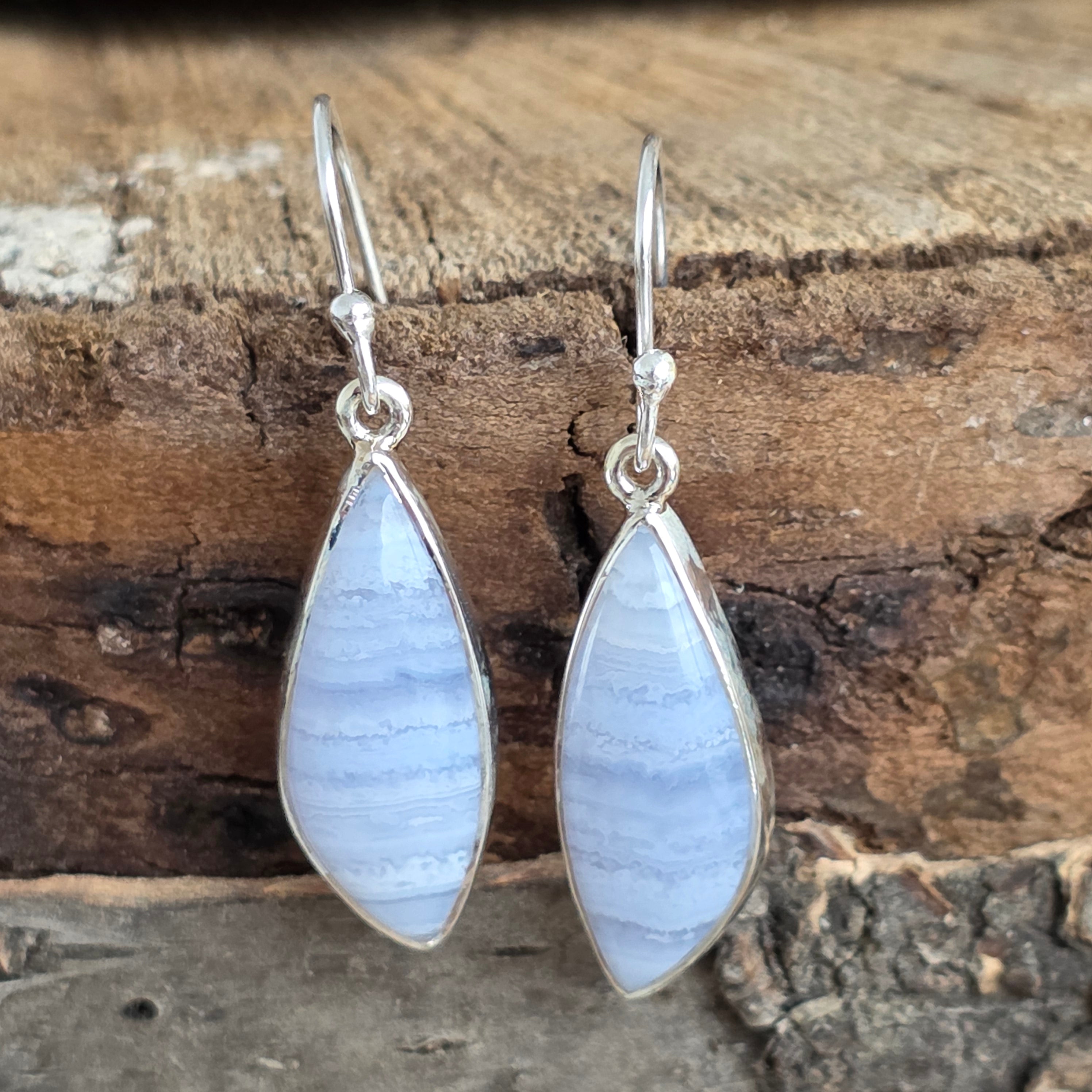 Περιγραφή - Σκουλαρίκια μπλε χαλαζία/ blue lace από ασήμι | Μοντέλο 2