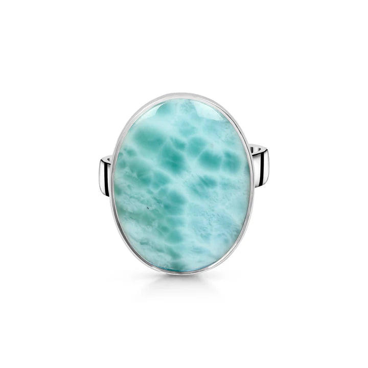 Ένα μοναδικό δαχτυλίδι από φυσικό λαρίμαρ, γνωστό ως η πέτρα του ουρανού και της θάλασσας. Οι αποχρώσεις του σε υδάτινο μπλε, με λευκές αντανακλάσεις σαν τα κύματα της θάλασσας, φέρνουν εσωτερική γαλήνη και μια αίσθηση απέραντης ελευθερίας.