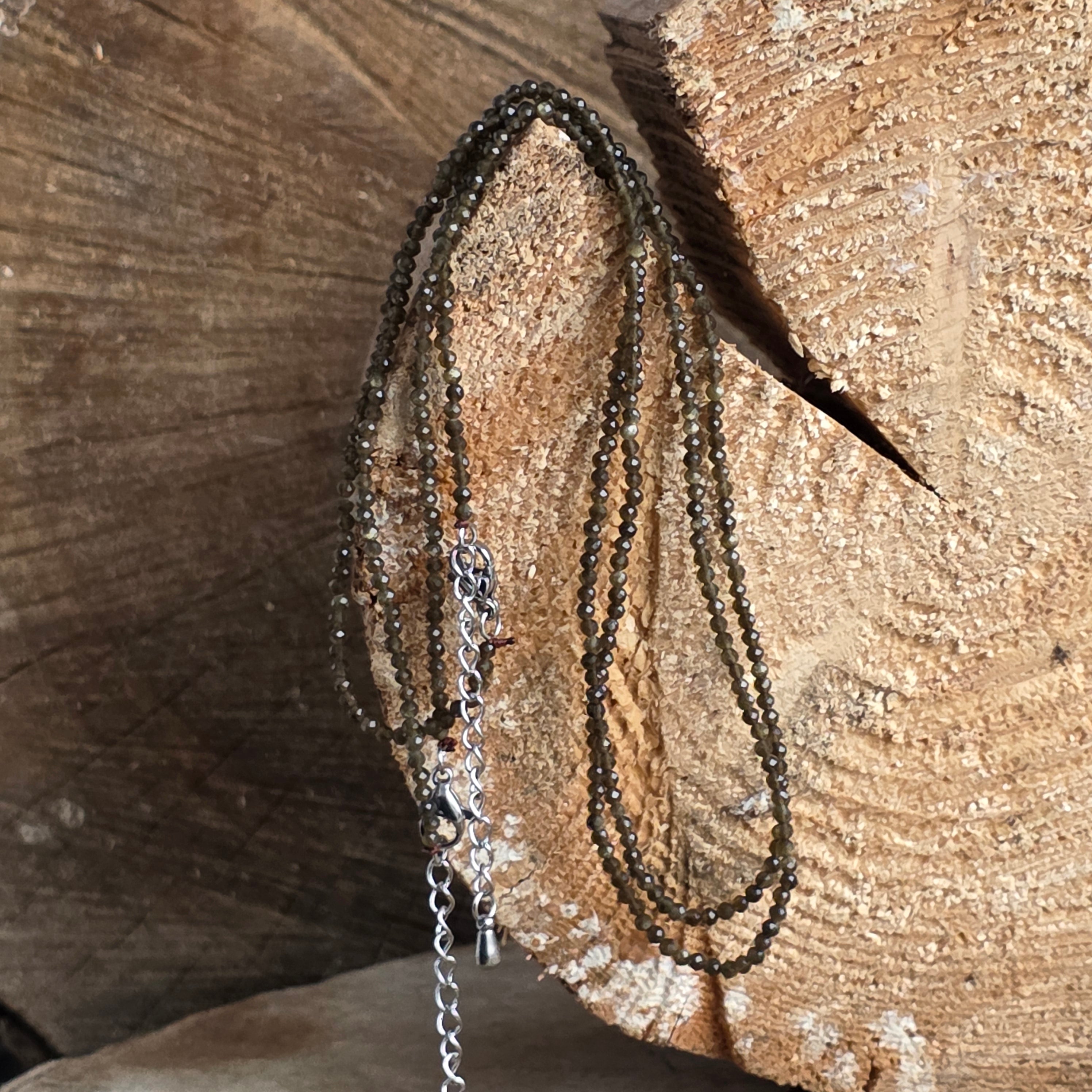 Ασημένιο κολιέ οψιδιανός με σφαίρες 2 mm