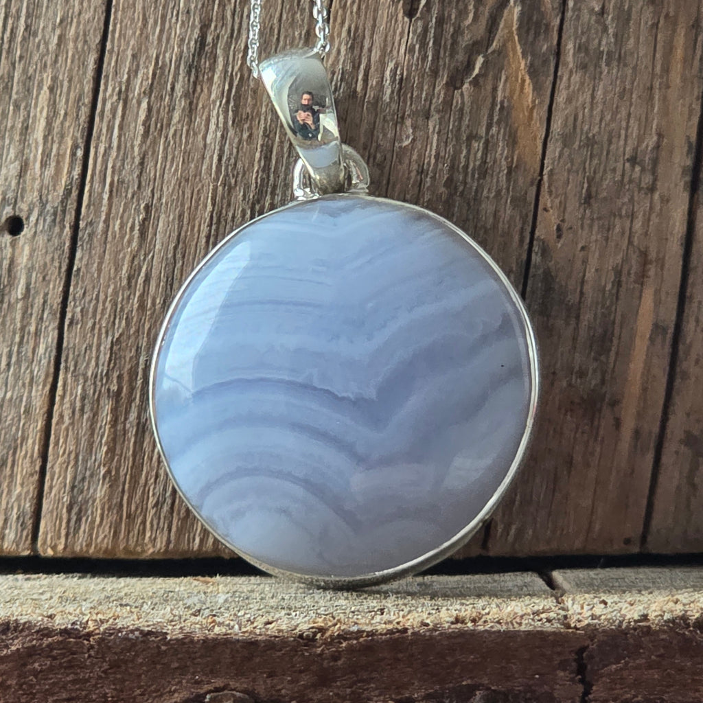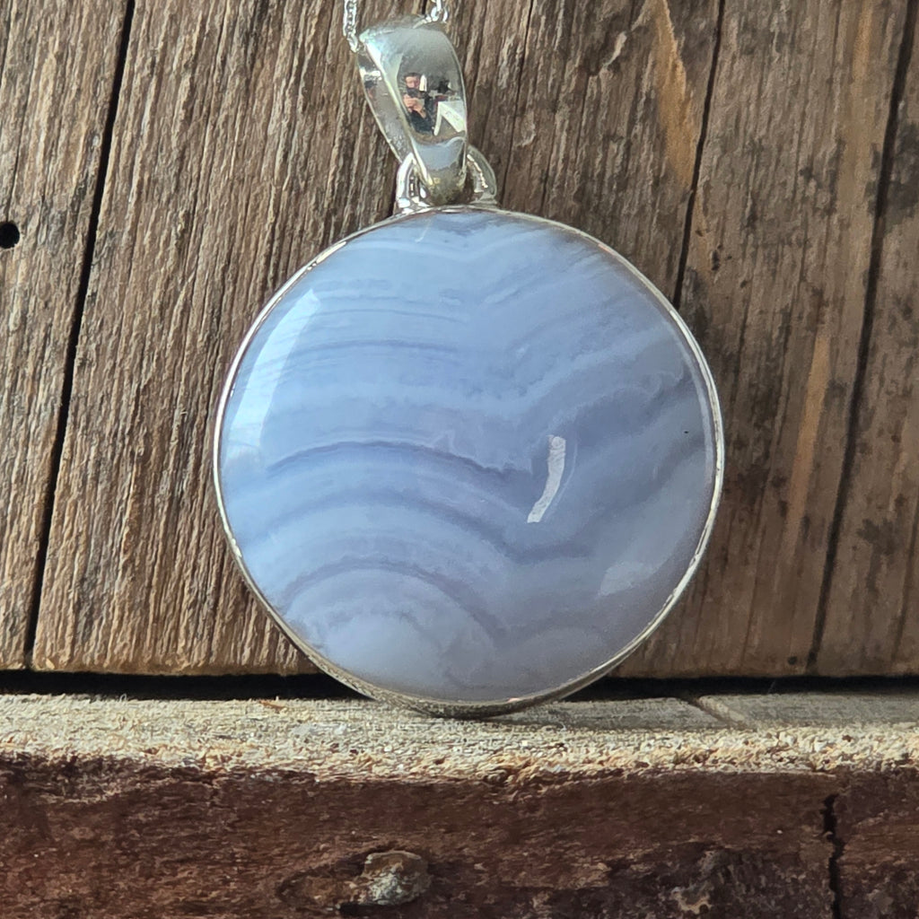 Ασημένιο μενταγιόν δαντέλα μπλε χαλκηδόνιου | Μοντέλο 1