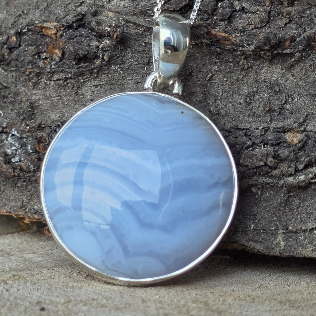 Περιγραφή - Ασημένιο μενταγιόν δαντέλα μπλε χαλκηδόνιου | Μοντέλο 1