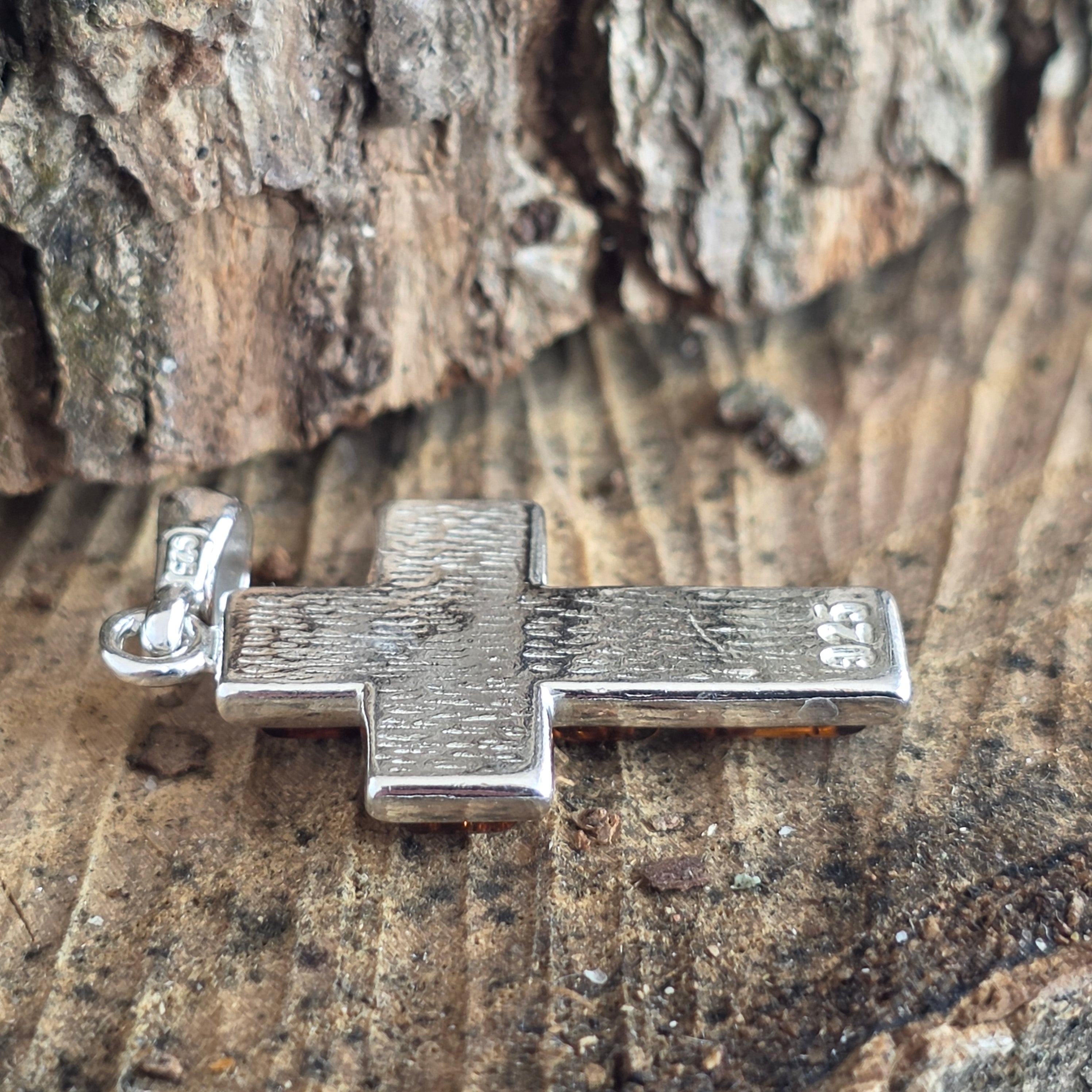 Κρεμαστό ασημένιο με κεχριμπάρι σε σχήμα σταυρού Amber30