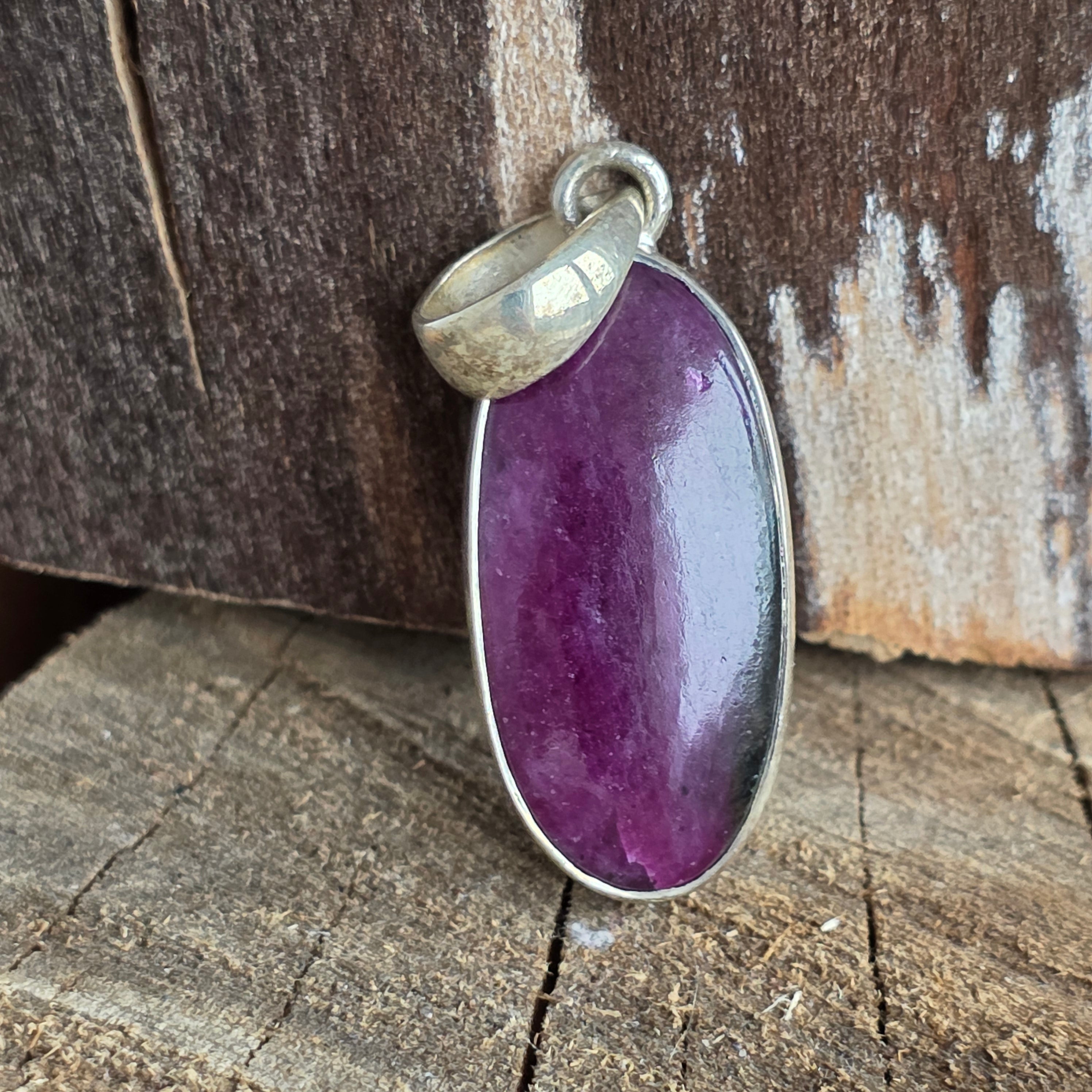 Ασημένιο ρουμπινί μενταγιόν 3.8 cm Οβάλ