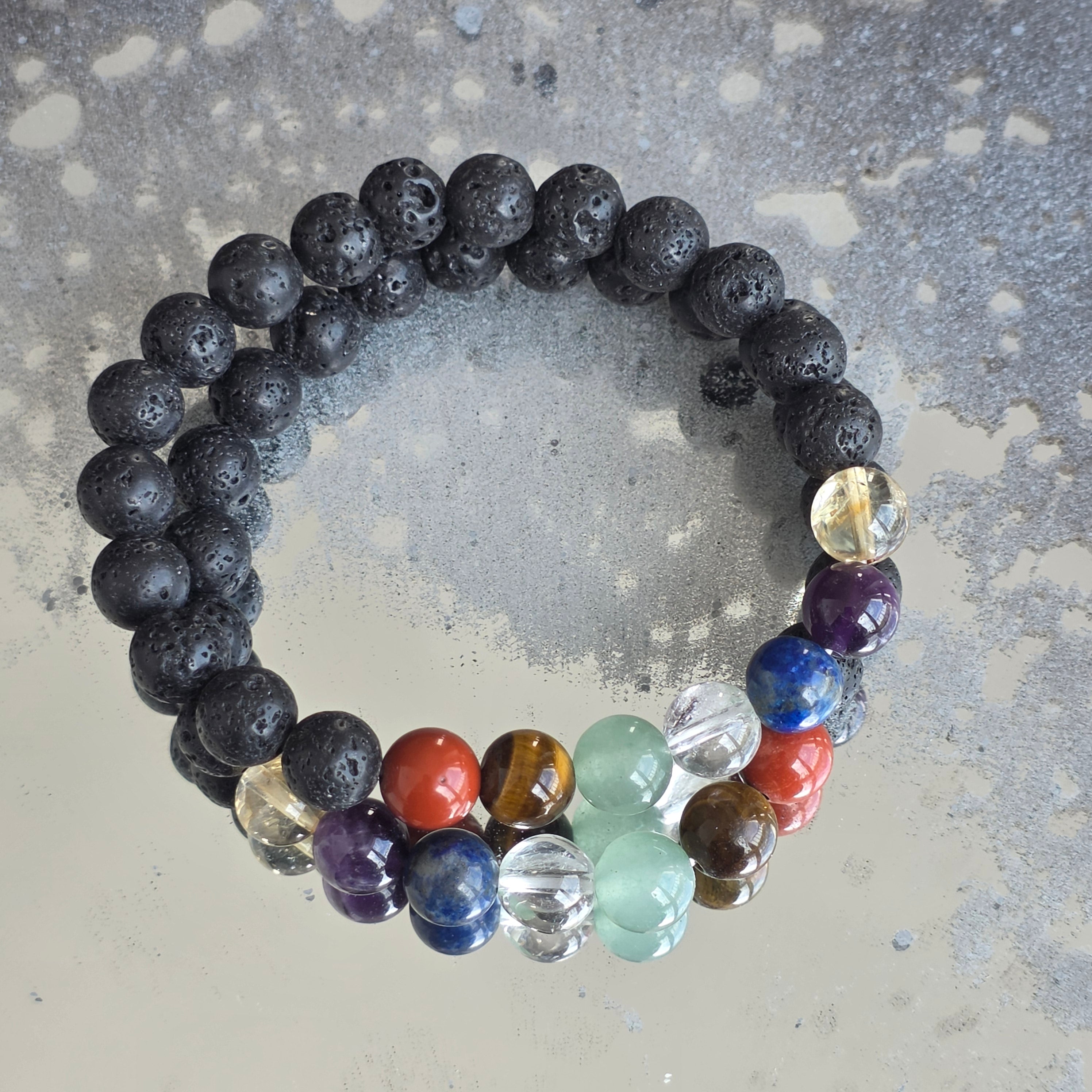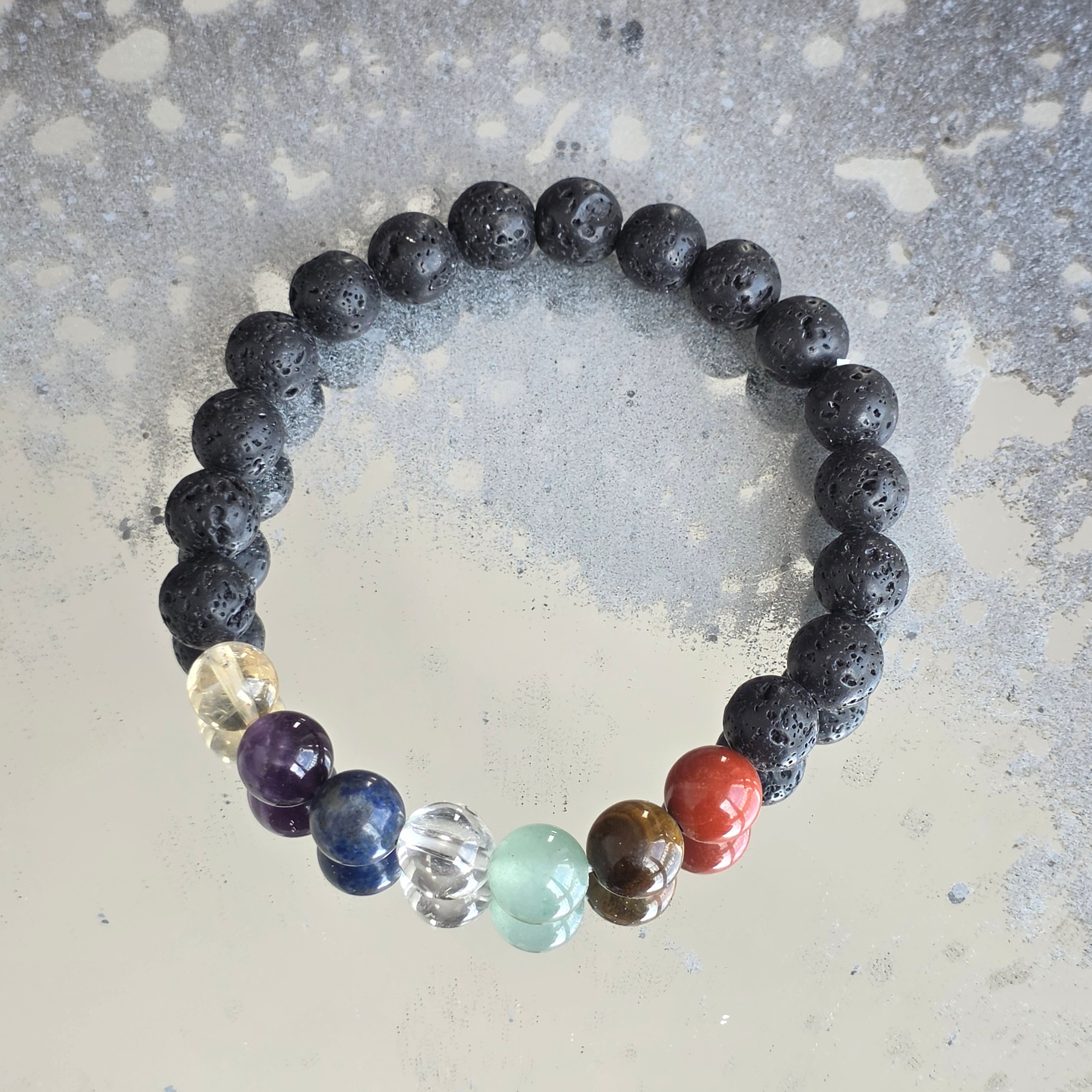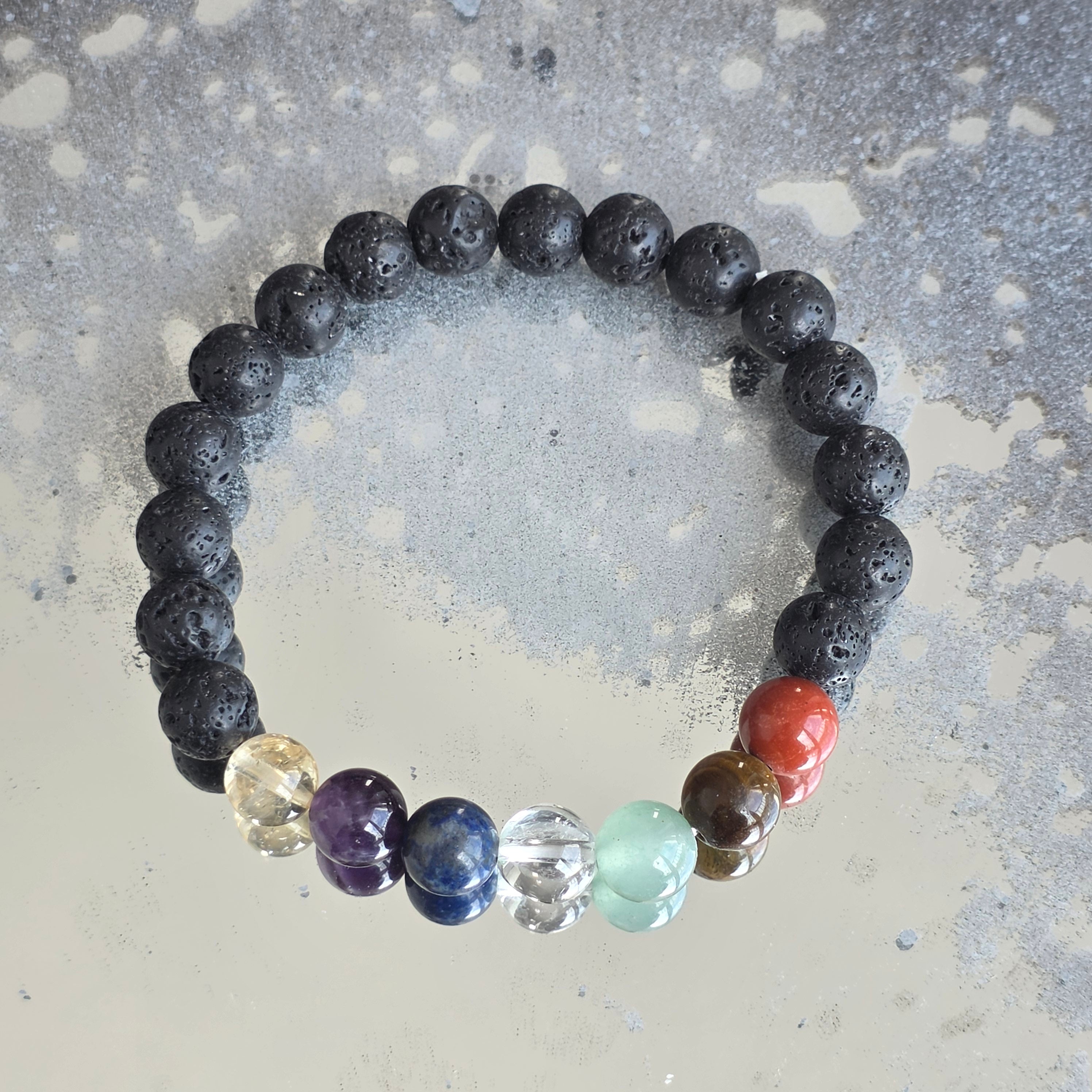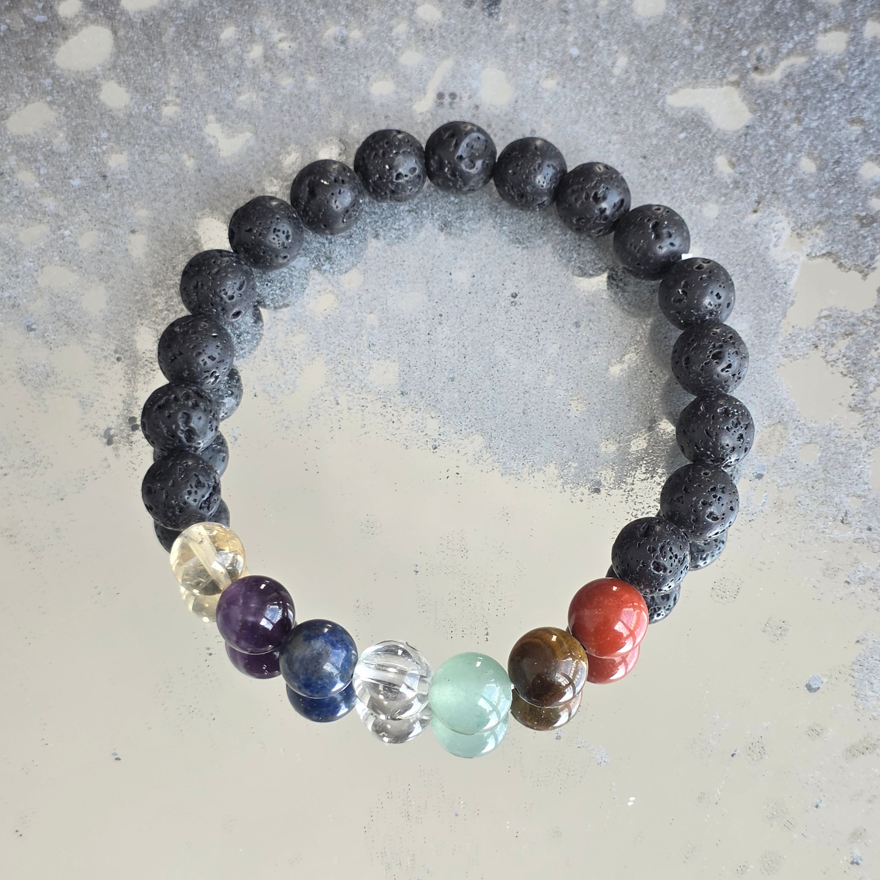 Βραχιόλι βασάλτης 7 τσάκρα, σφαίρες 8 mm