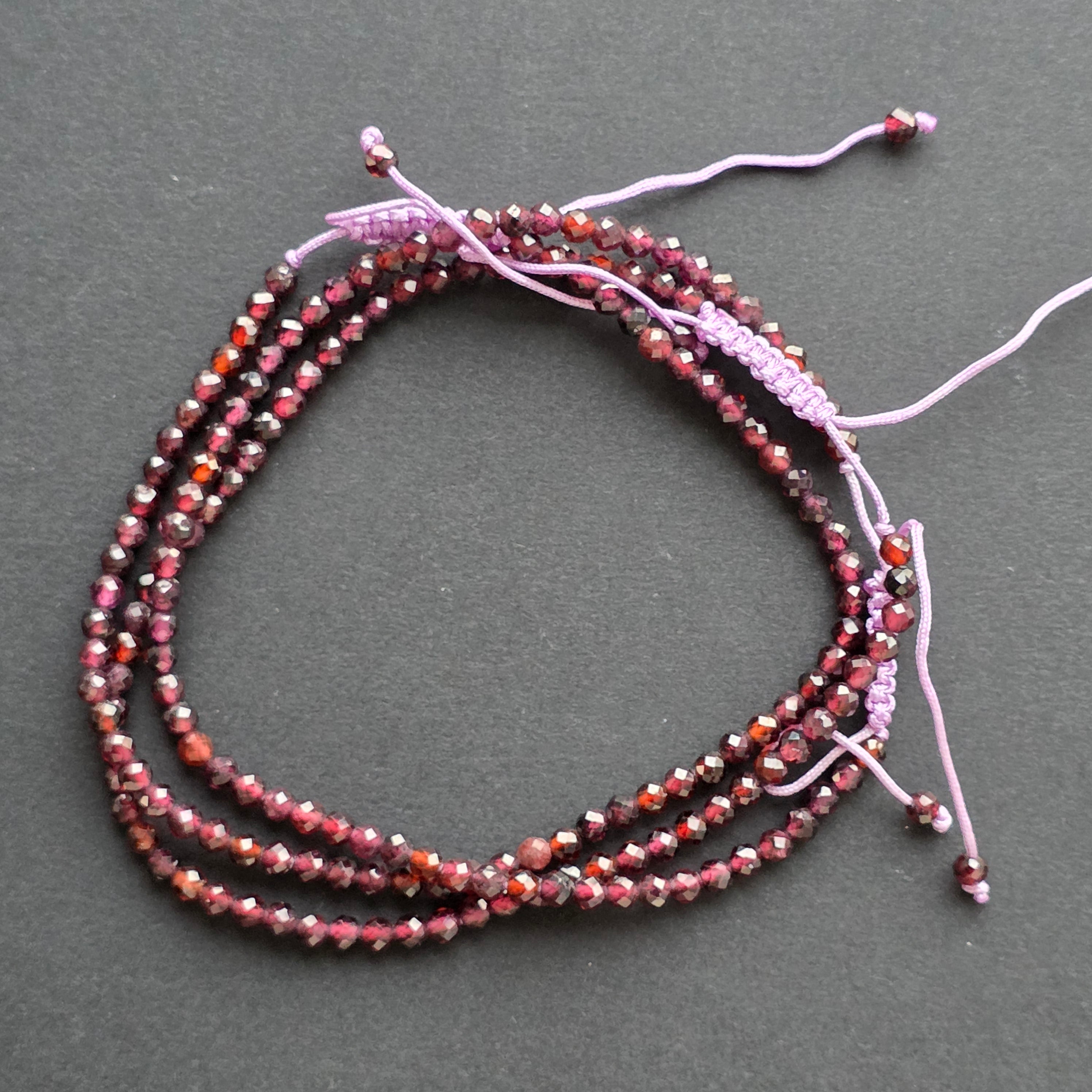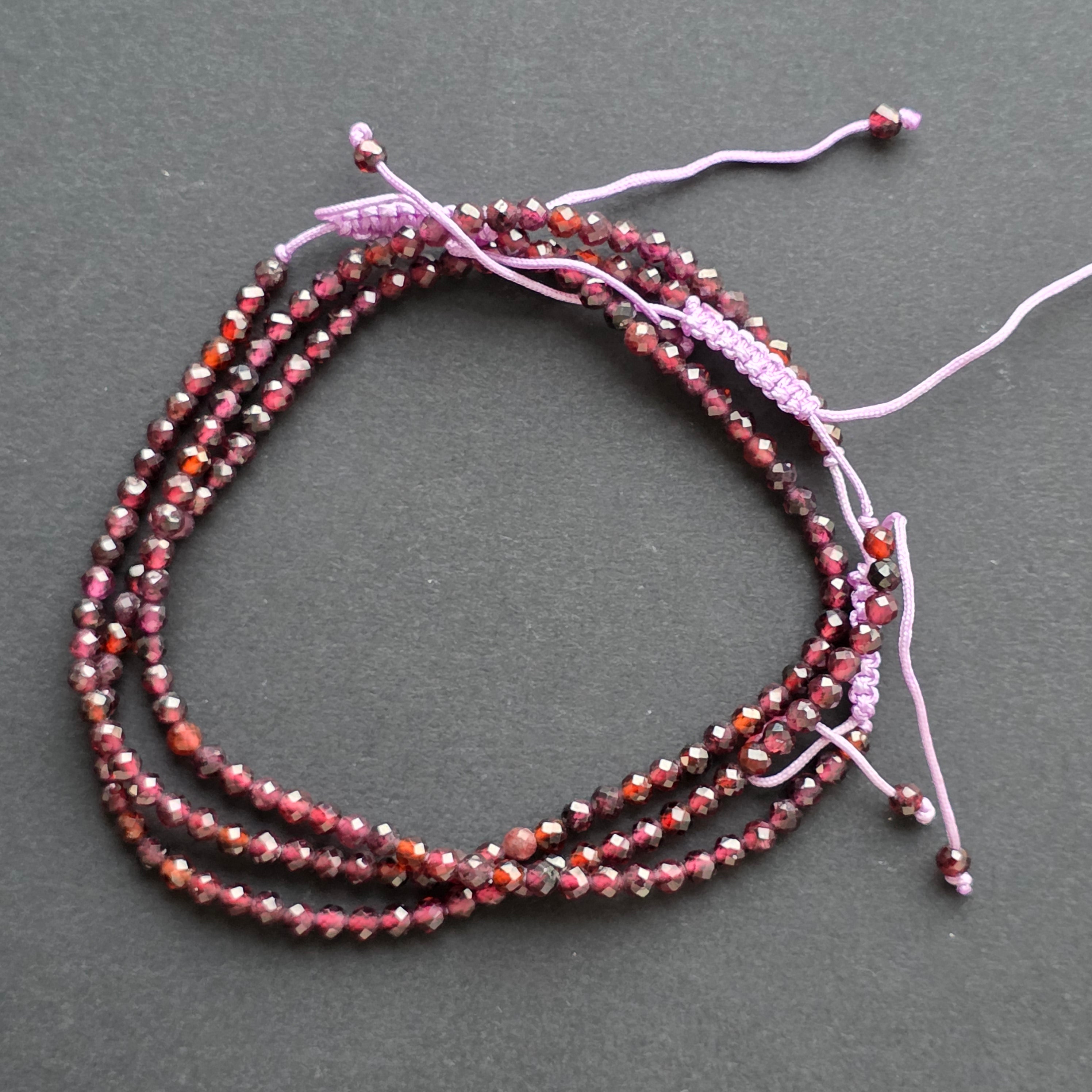 Βραχιόλι με γκριλάρες γρανάτη 3 mm με ρυθμιζόμενο κορδόνι