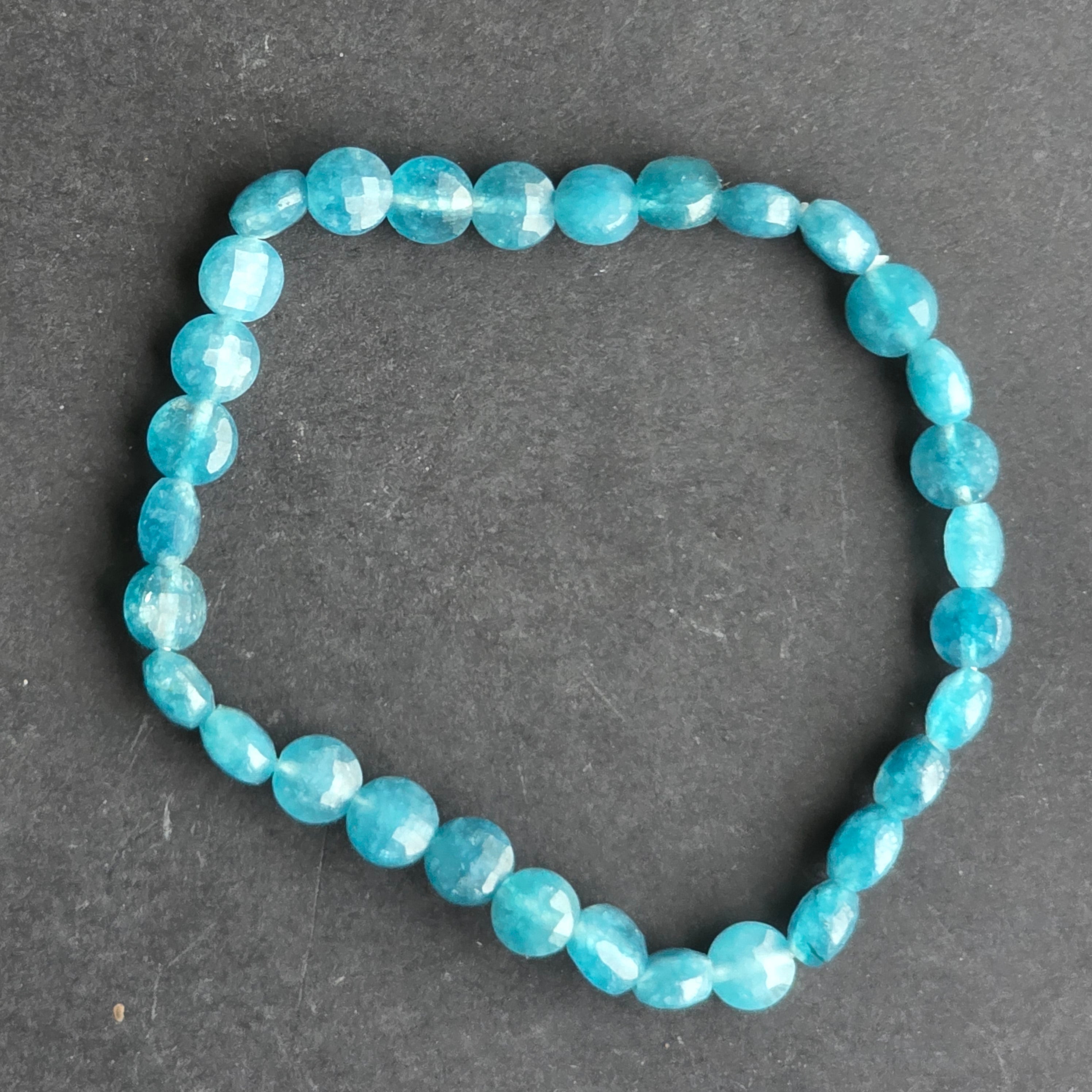 Περιγραφή - Βραχιόλι με γυαλισμένα μπλε καλσίτη, στρογγυλά δισκία 6x4 mm