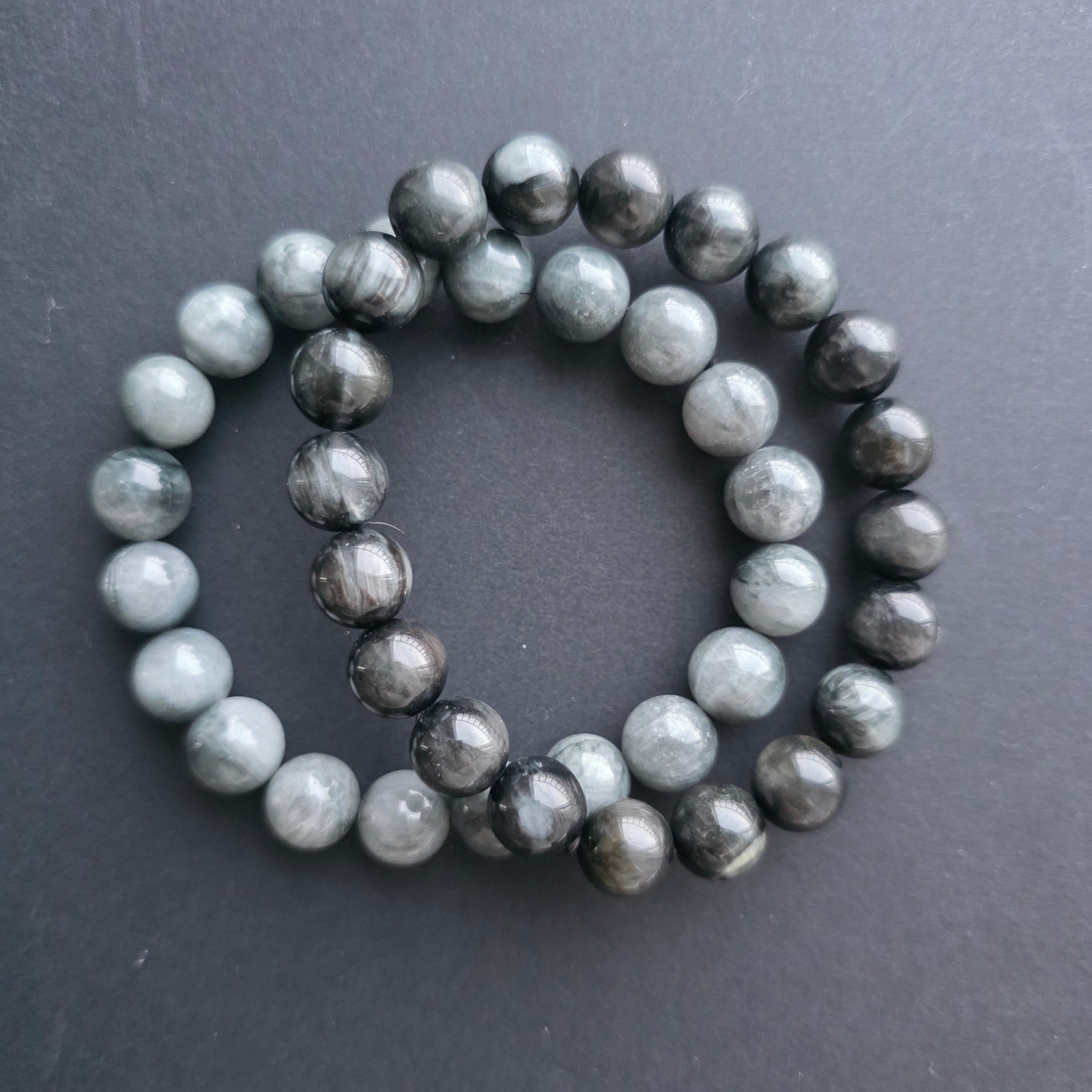 Περιγραφή - Βραχιόλι με μάτι τίγρης γκρι 9-10 mm