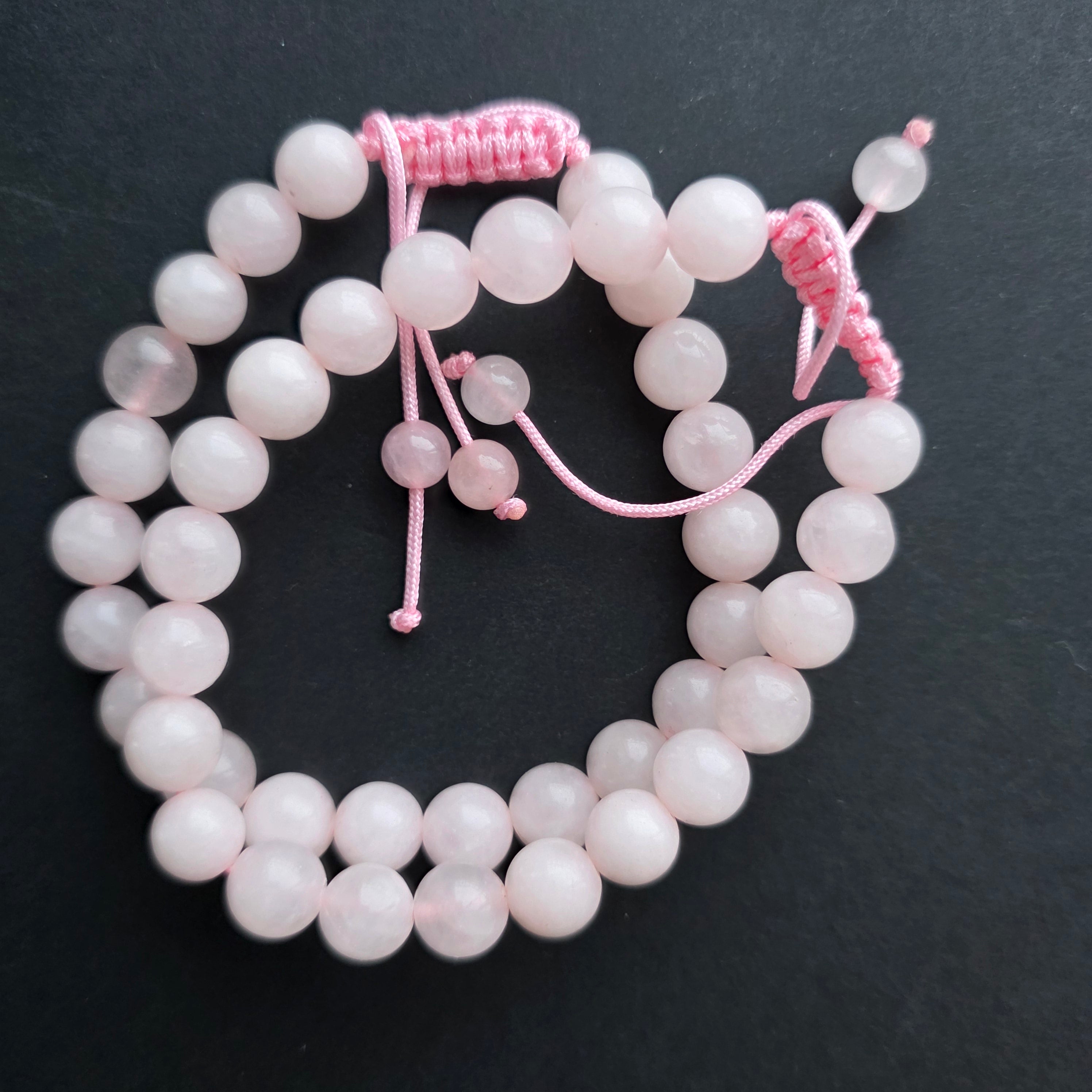 Περιγραφή - Βραχιόλι με ροζ χαλαζία 8-9 mm με ρυθμιζόμενο κορδόνι