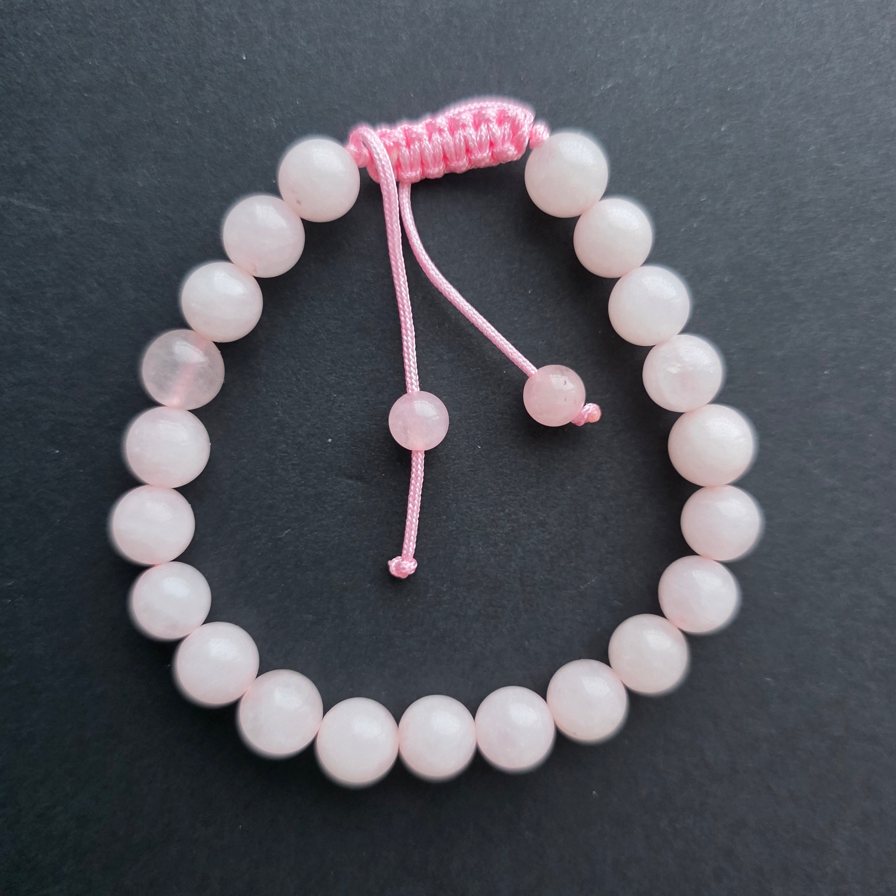 Βραχιόλι με ροζ χαλαζία 8-9 mm με ρυθμιζόμενο κορδόνι