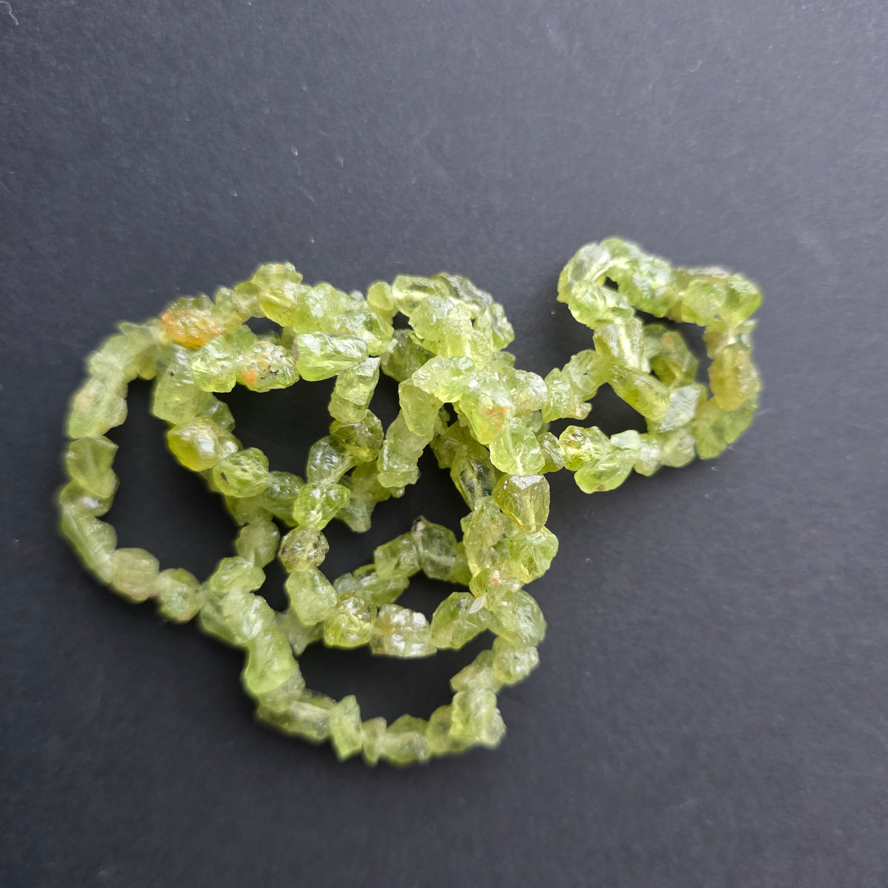 Πέτρα: φυσικό περίδοτο – σφαιρικές χάντρες 7–8 mm, ποιότητας Α