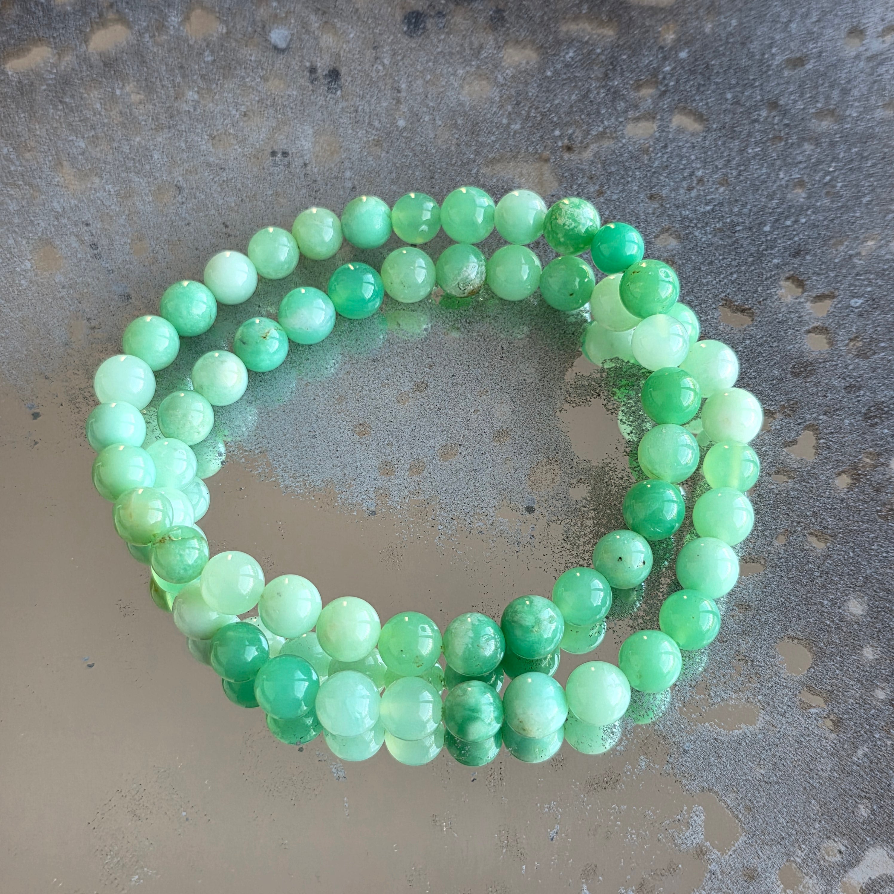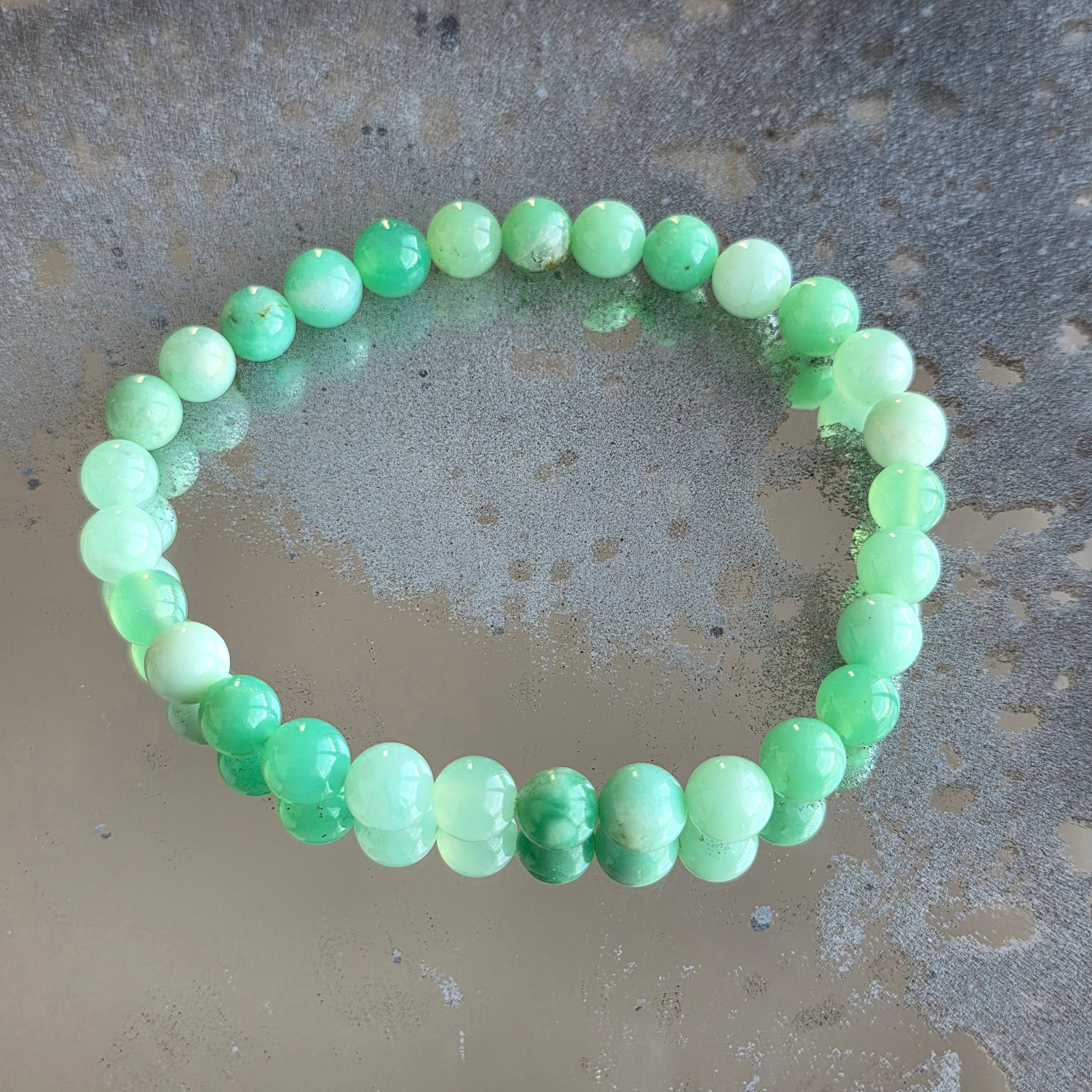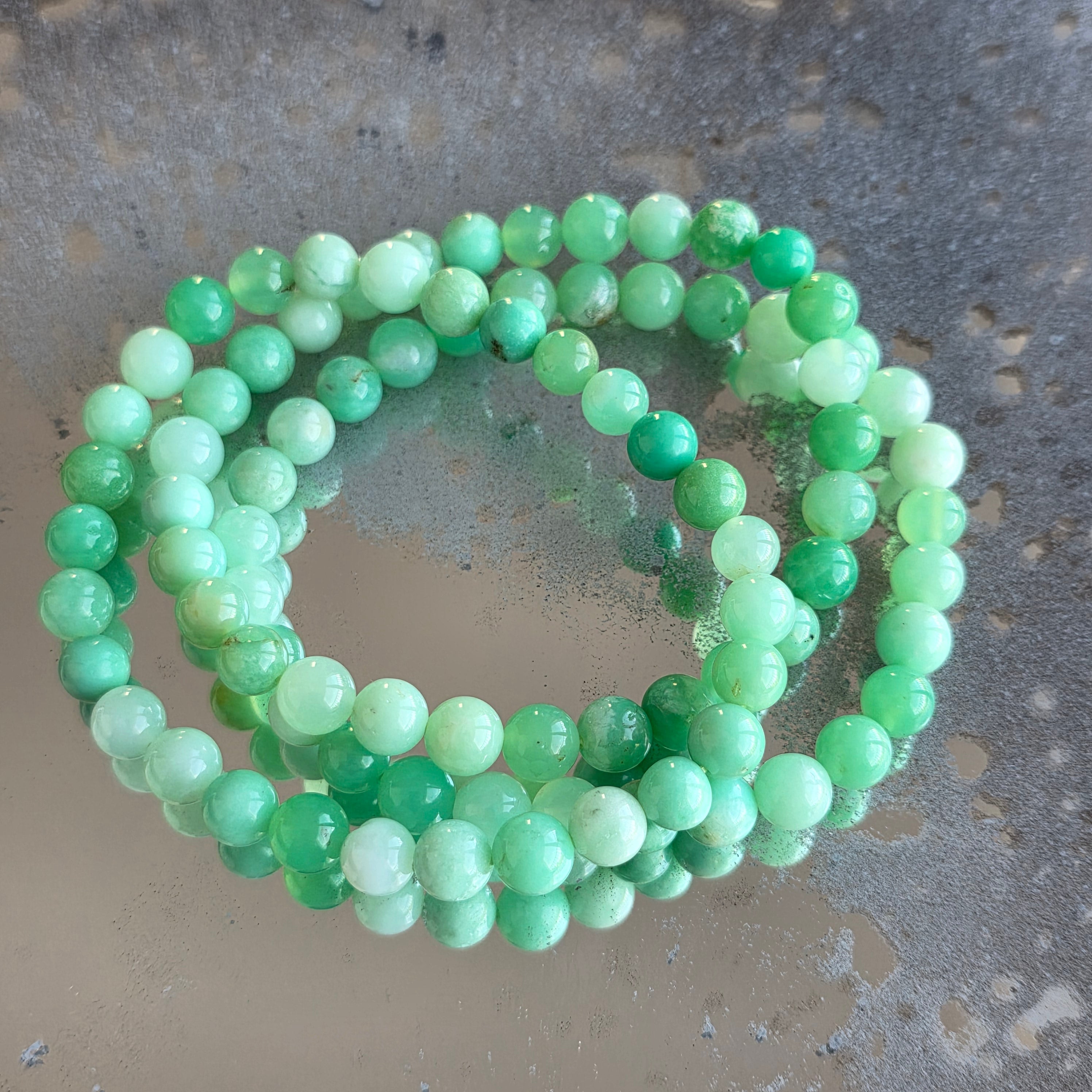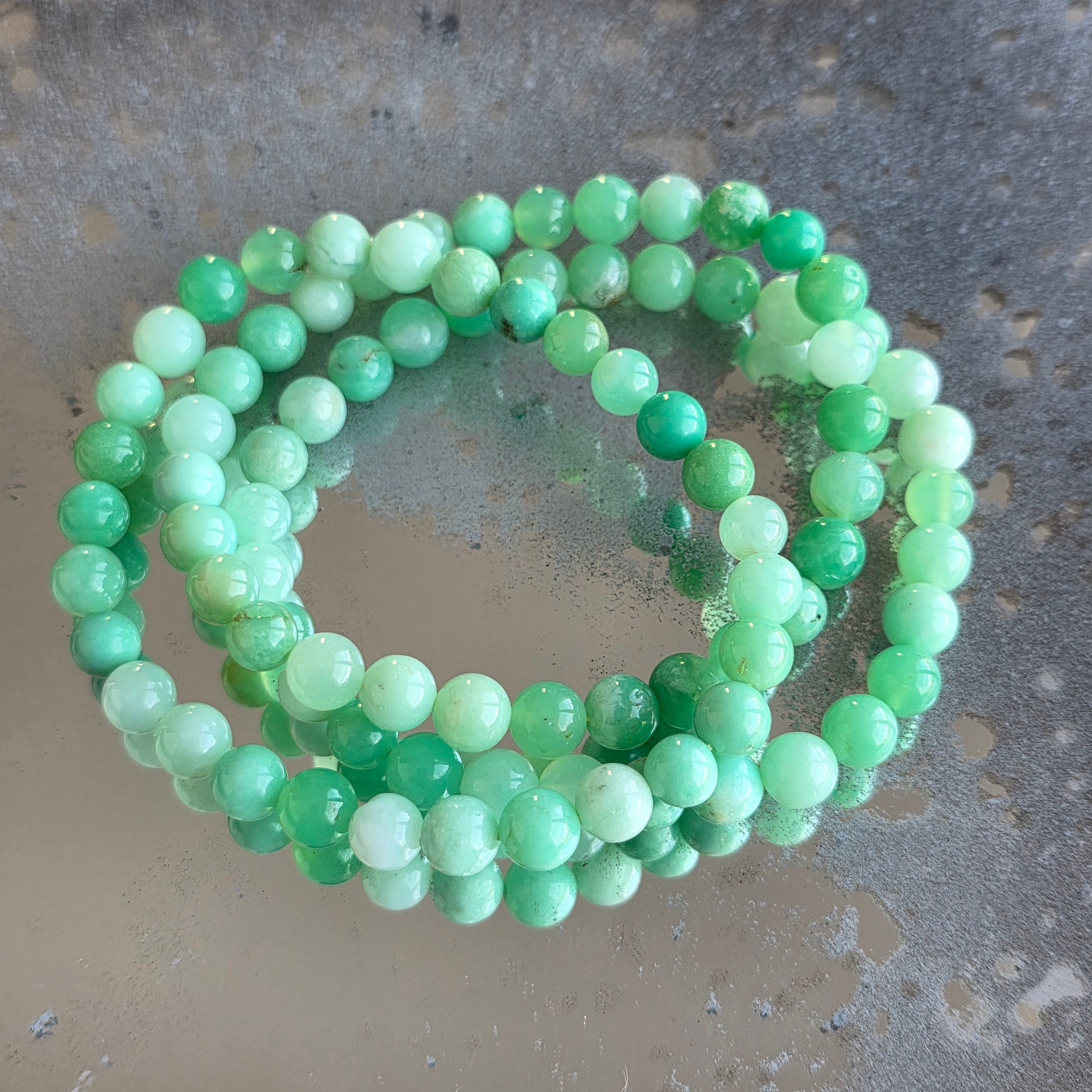 Ένα ισορροπημένο και φωτεινό βραχιόλι, όπου το χρυσόπραζ αποκαλύπτει τις φρέσκες αποχρώσεις του πράσινου σε μια απλή και κομψή μορφή. Οι χάντρες 6 mm προσφέρουν μια διακριτική, αλλά καλά καθορισμένη παρουσία, κατάλληλη για καθημερινή χρήση.