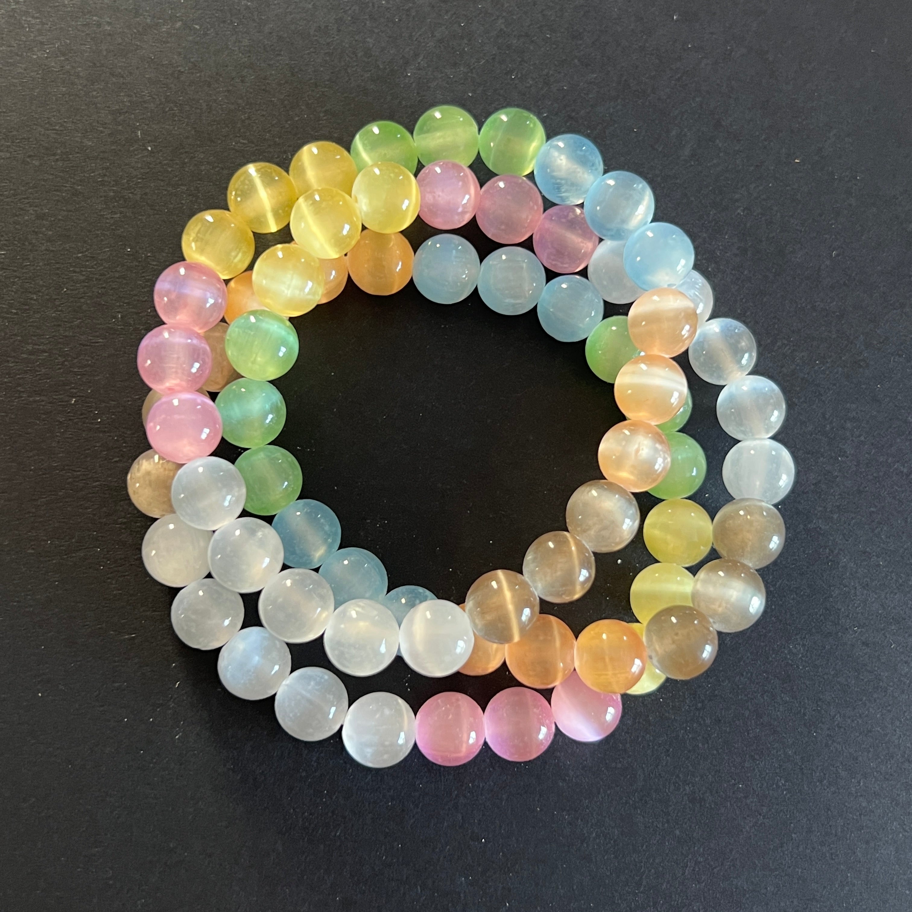 Περιγραφή - Βραχιόλι χρωματιστές σφαίρες από σεληνίτη 8 mm