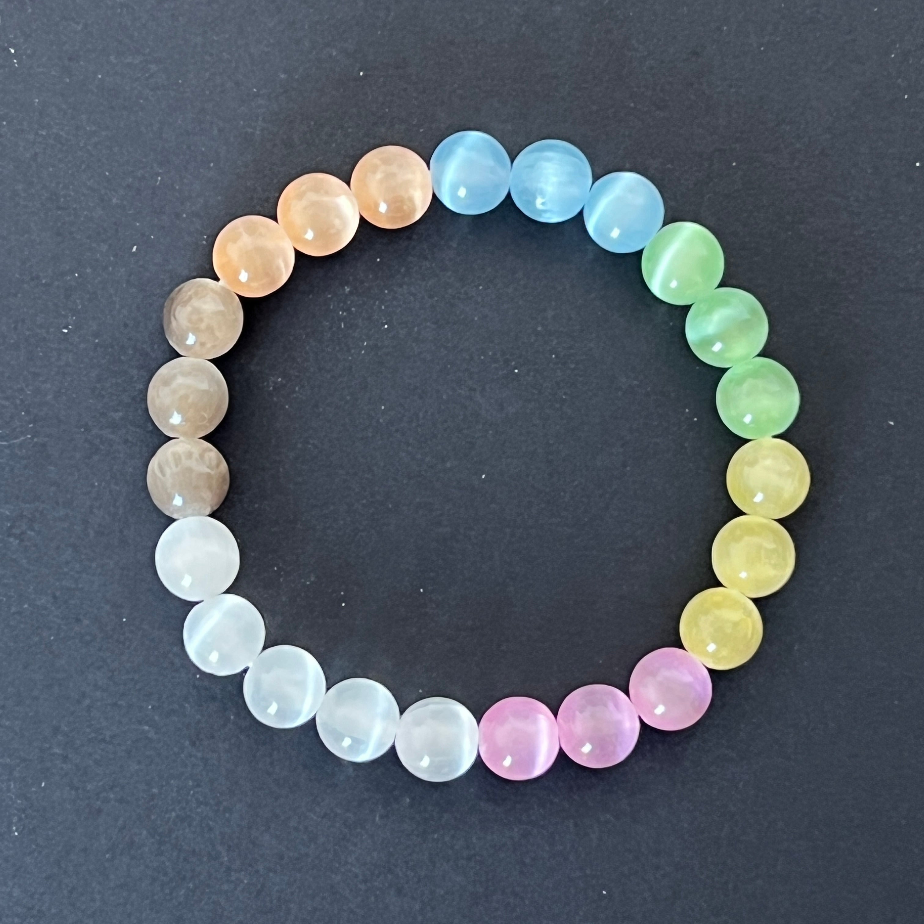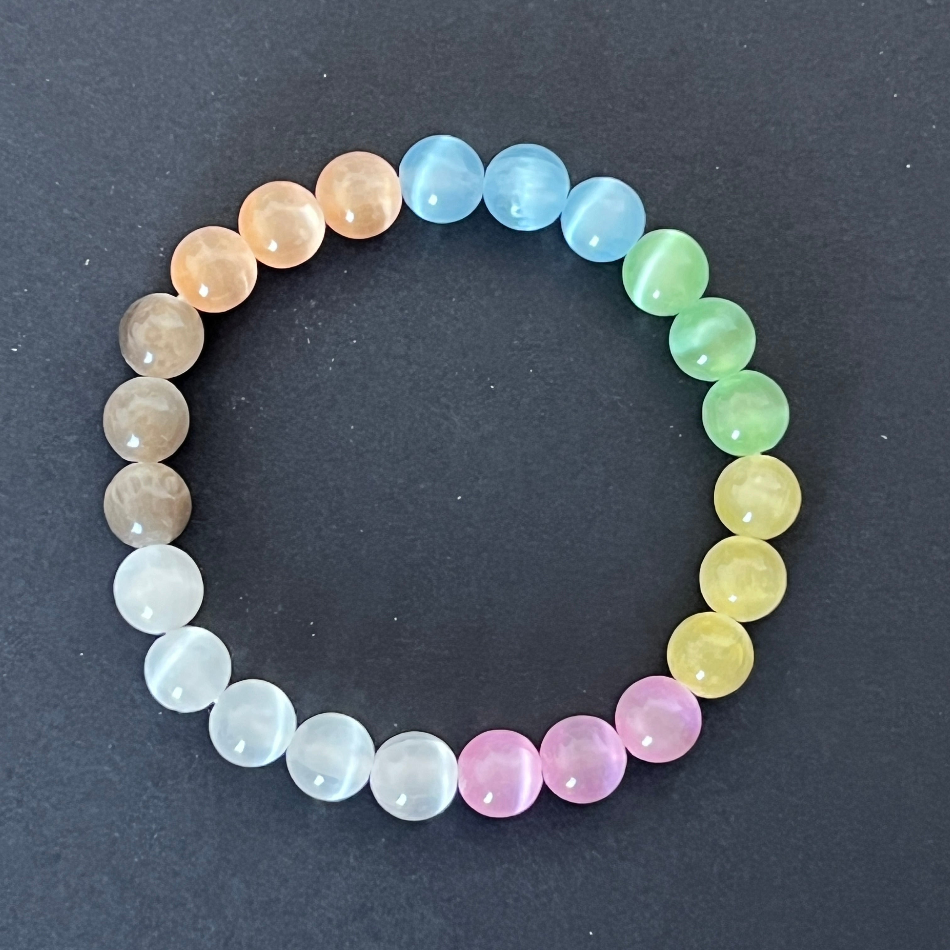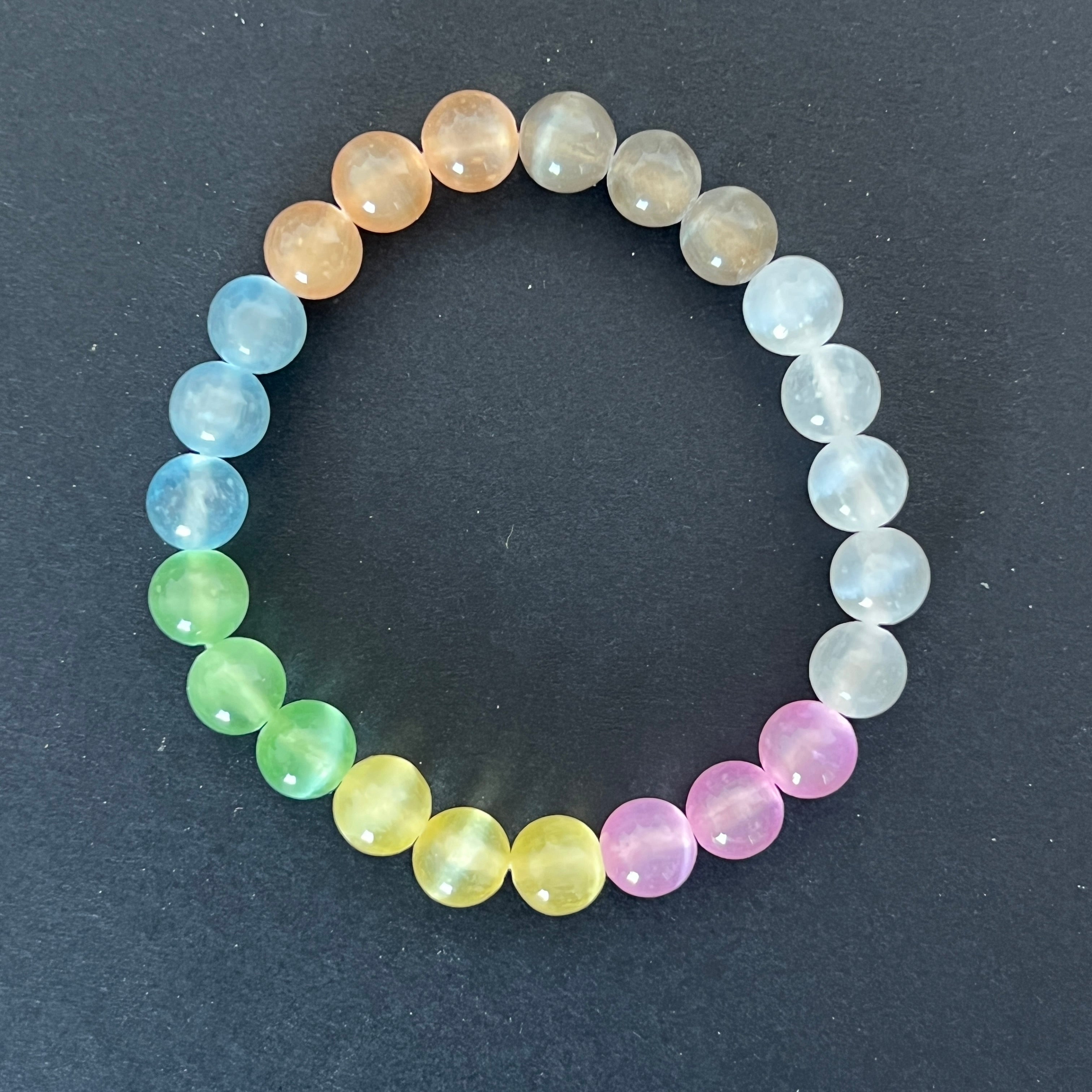 Βραχιόλι χρωματιστές σφαίρες από σεληνίτη 8 mm