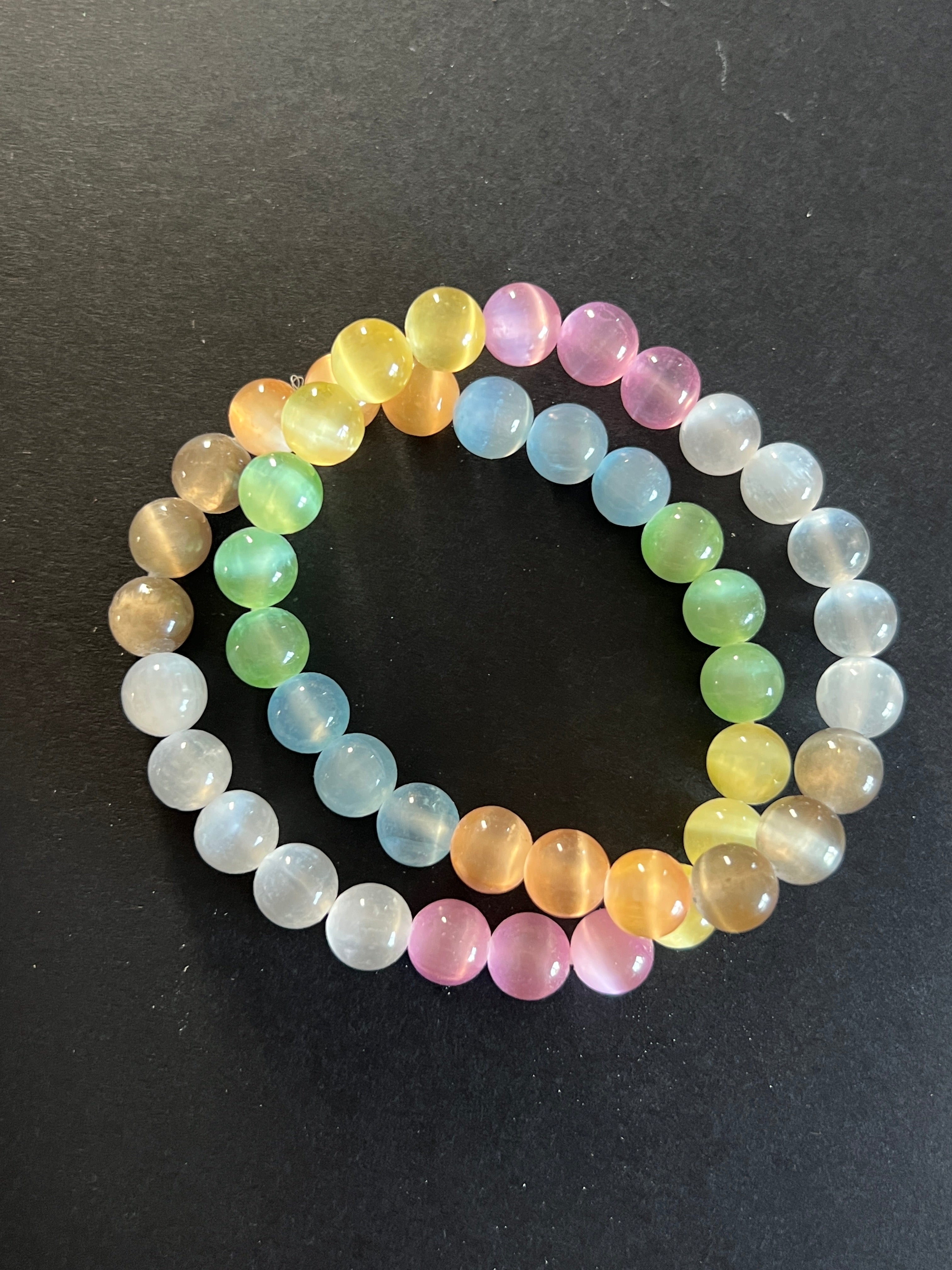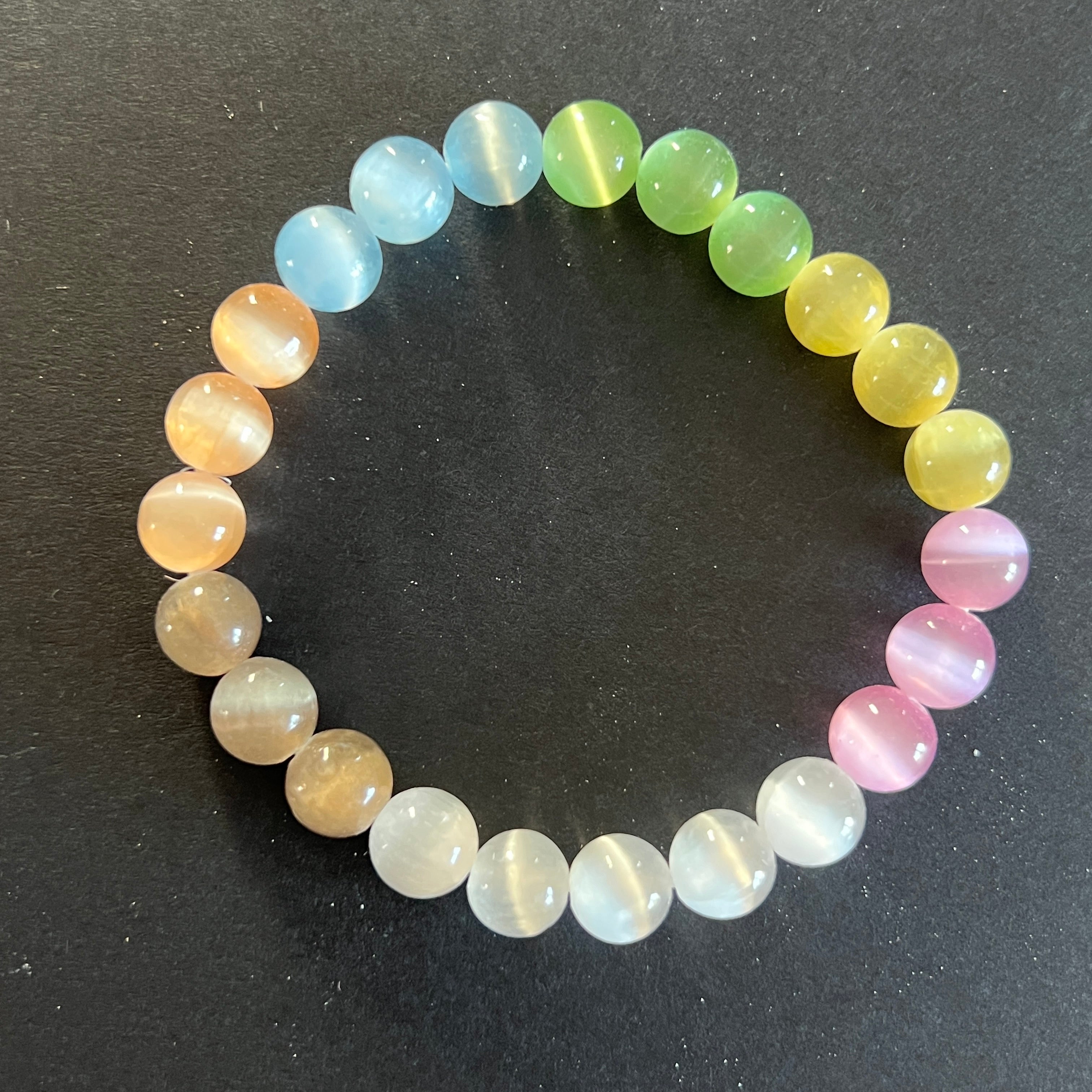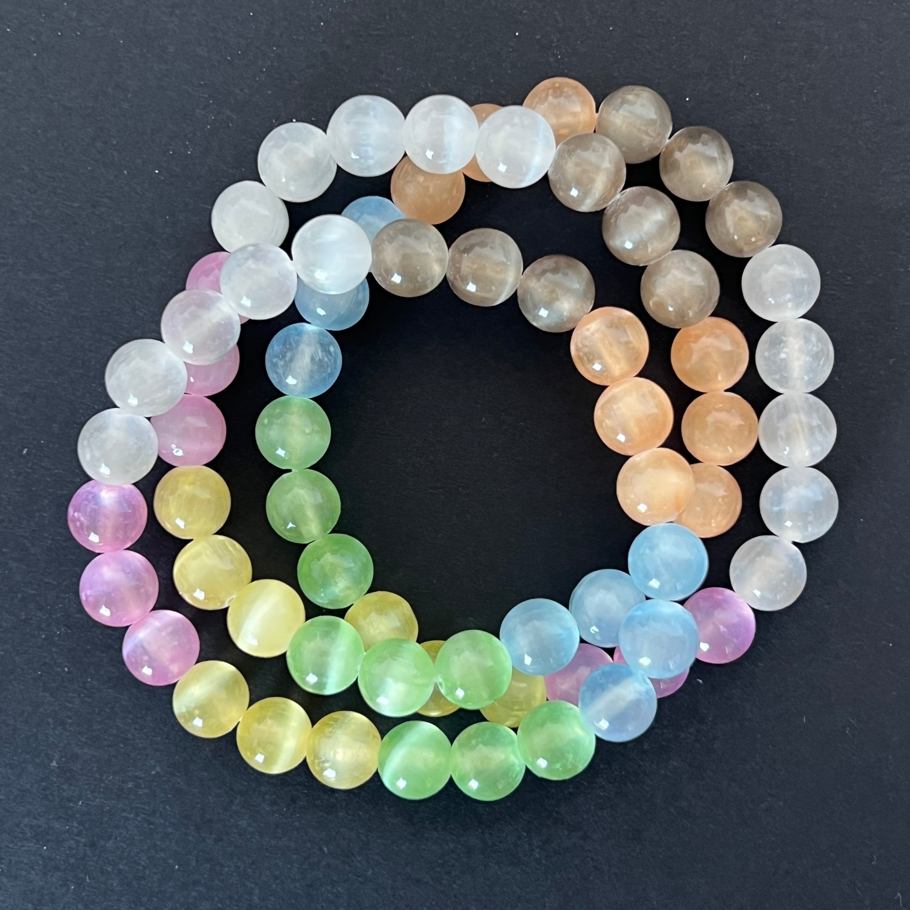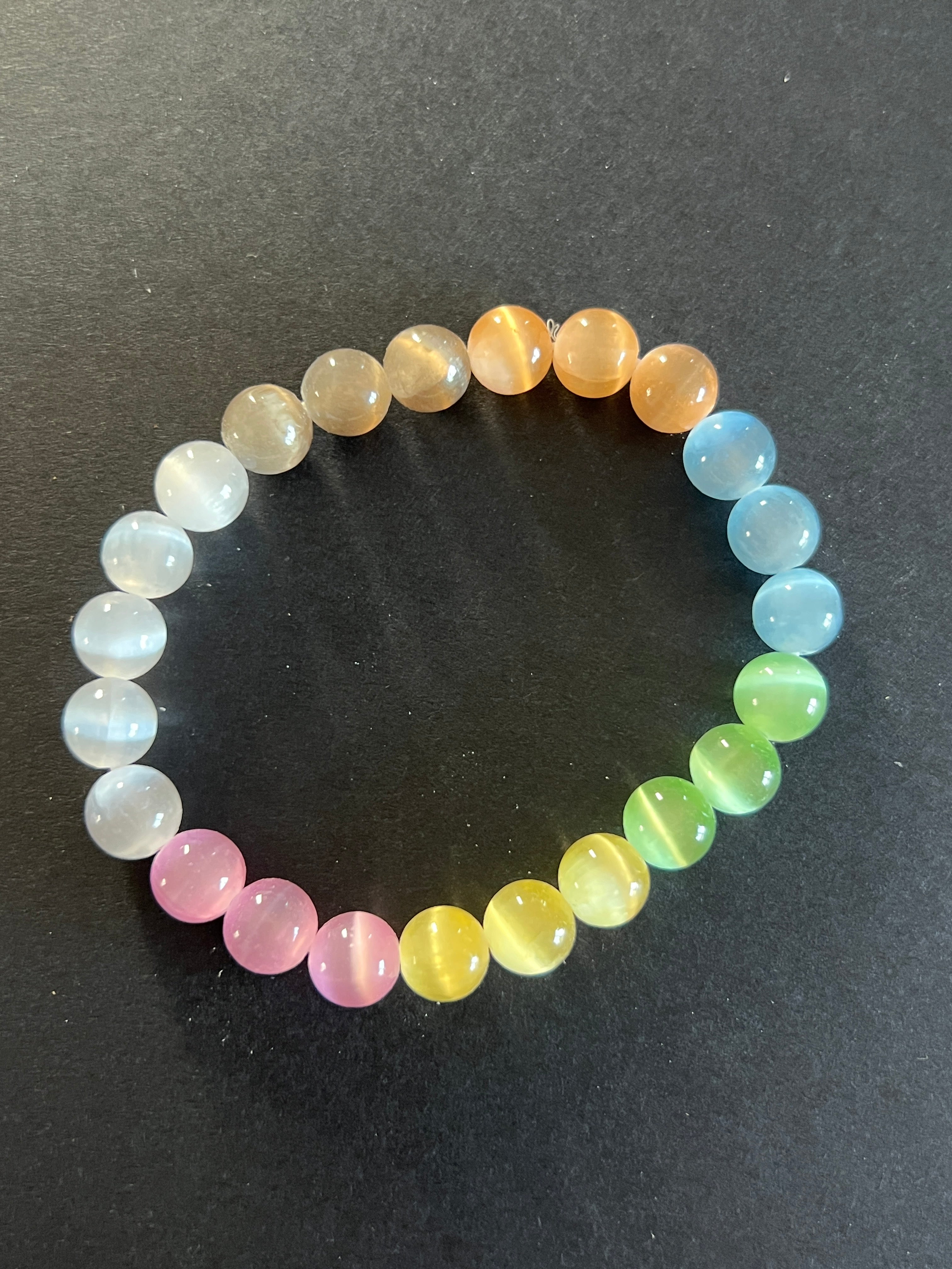 Βραχιόλι χρωματιστές σφαίρες από σεληνίτη 8 mm