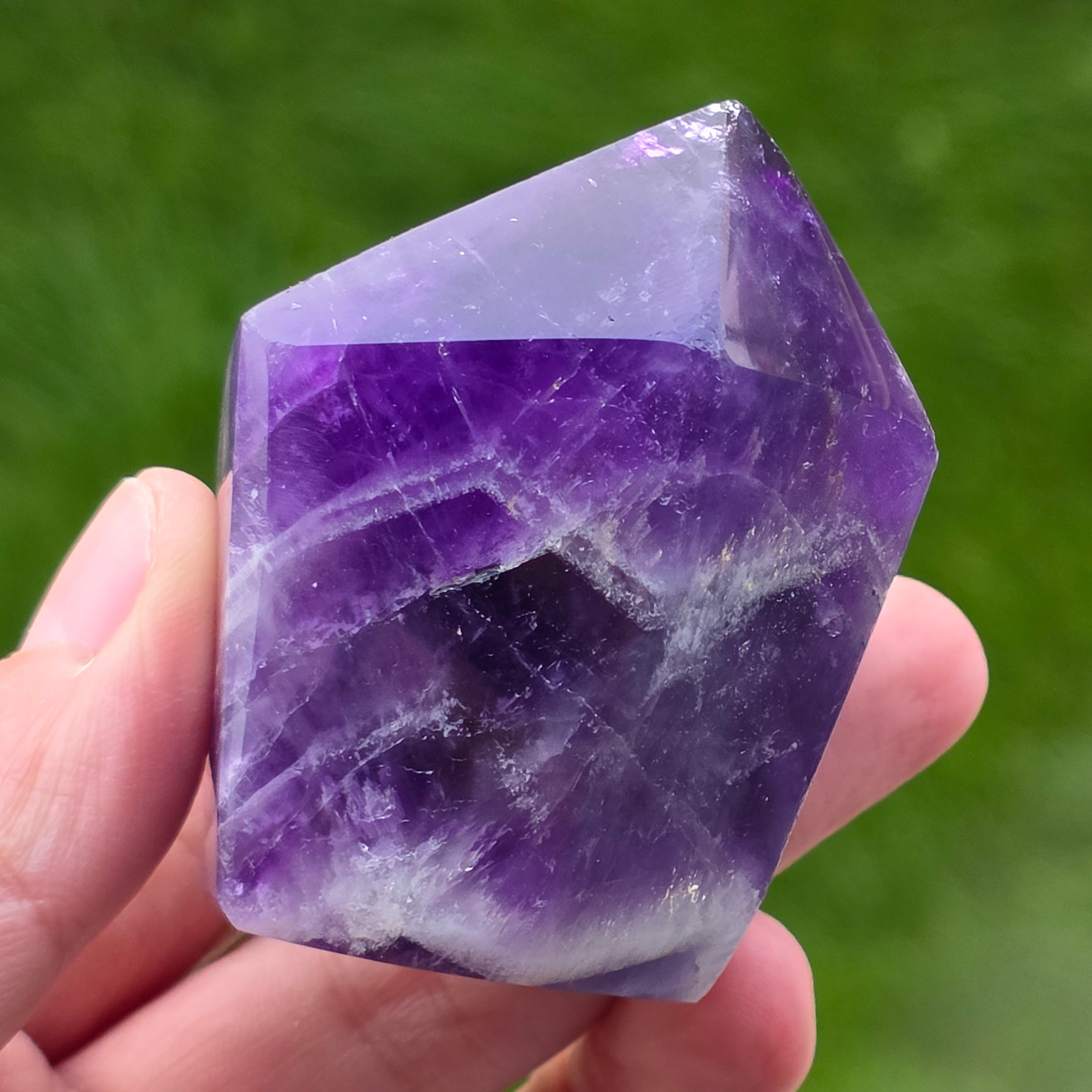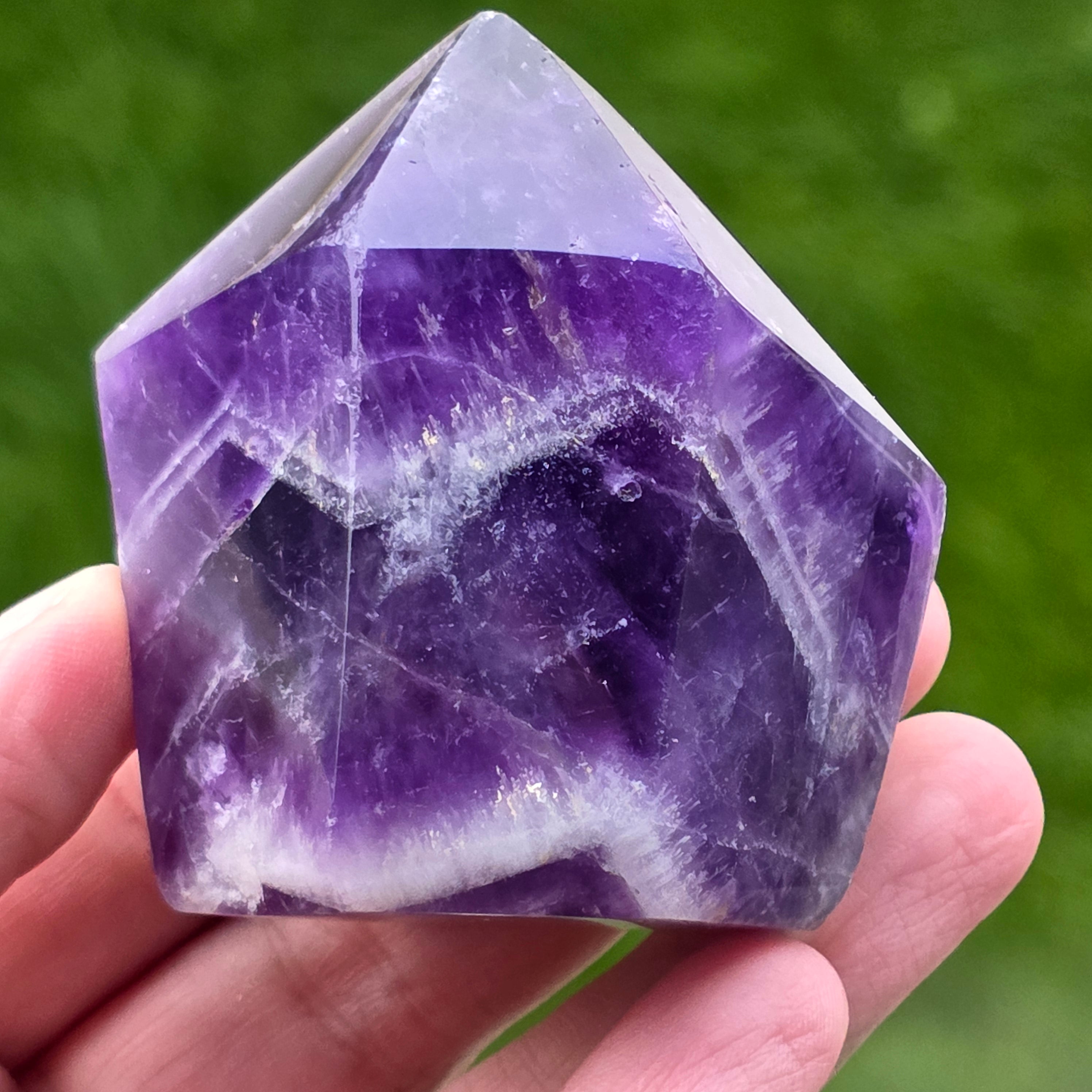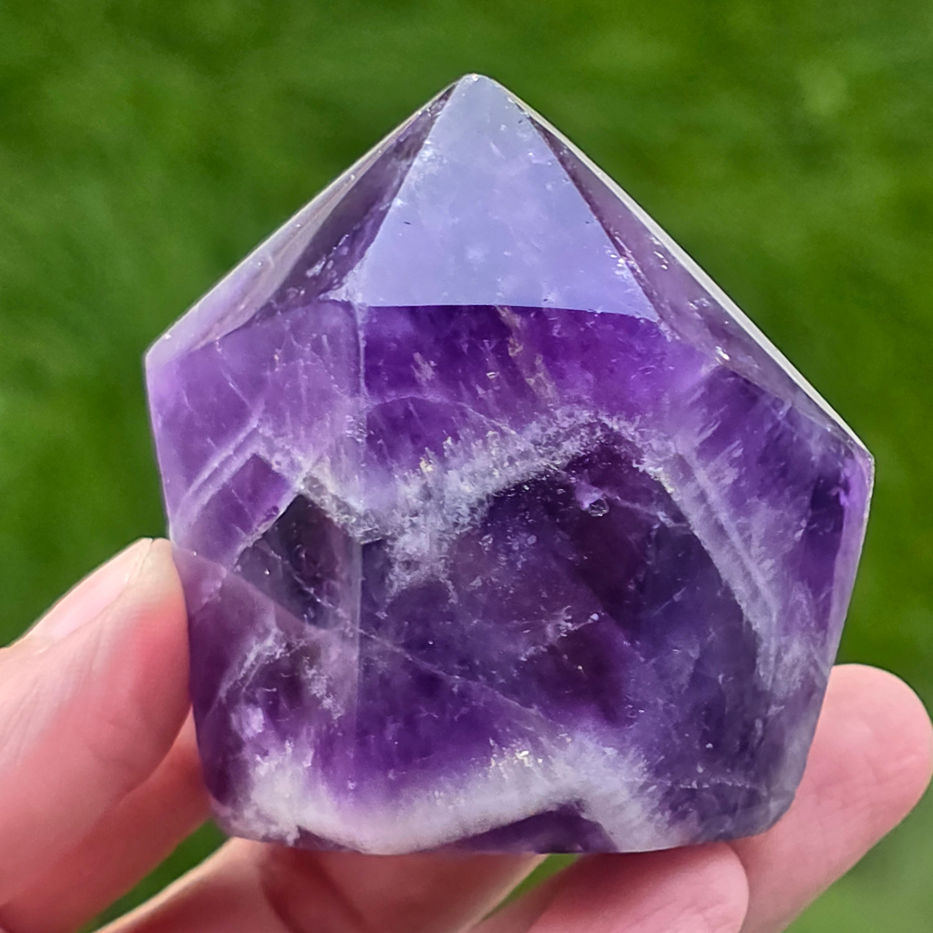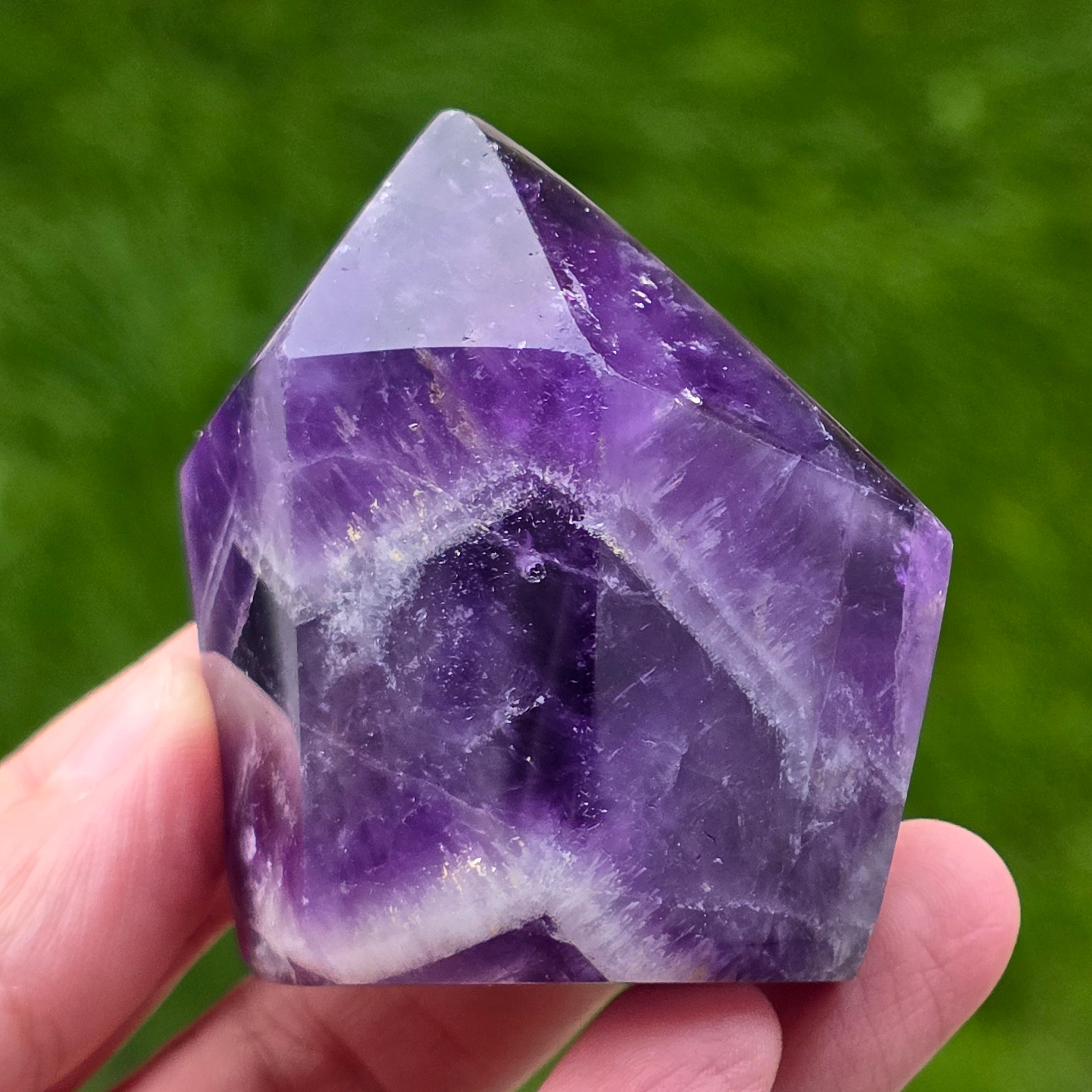 Το αμέθυστο chevron είναι γνωστό για τις συσχετίσεις του με το στέμμα και τα τσάκρα του τρίτου ματιού, αυξάνοντας τη διαίσθηση και τη λήψη αποφάσεων.