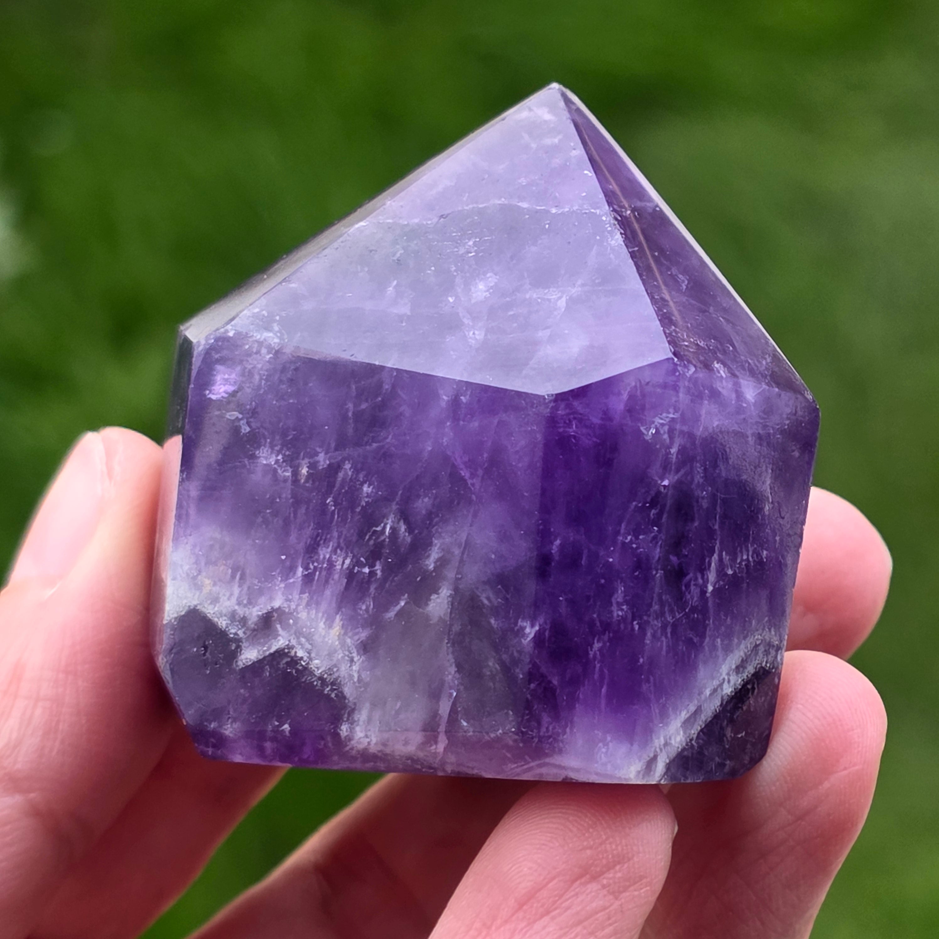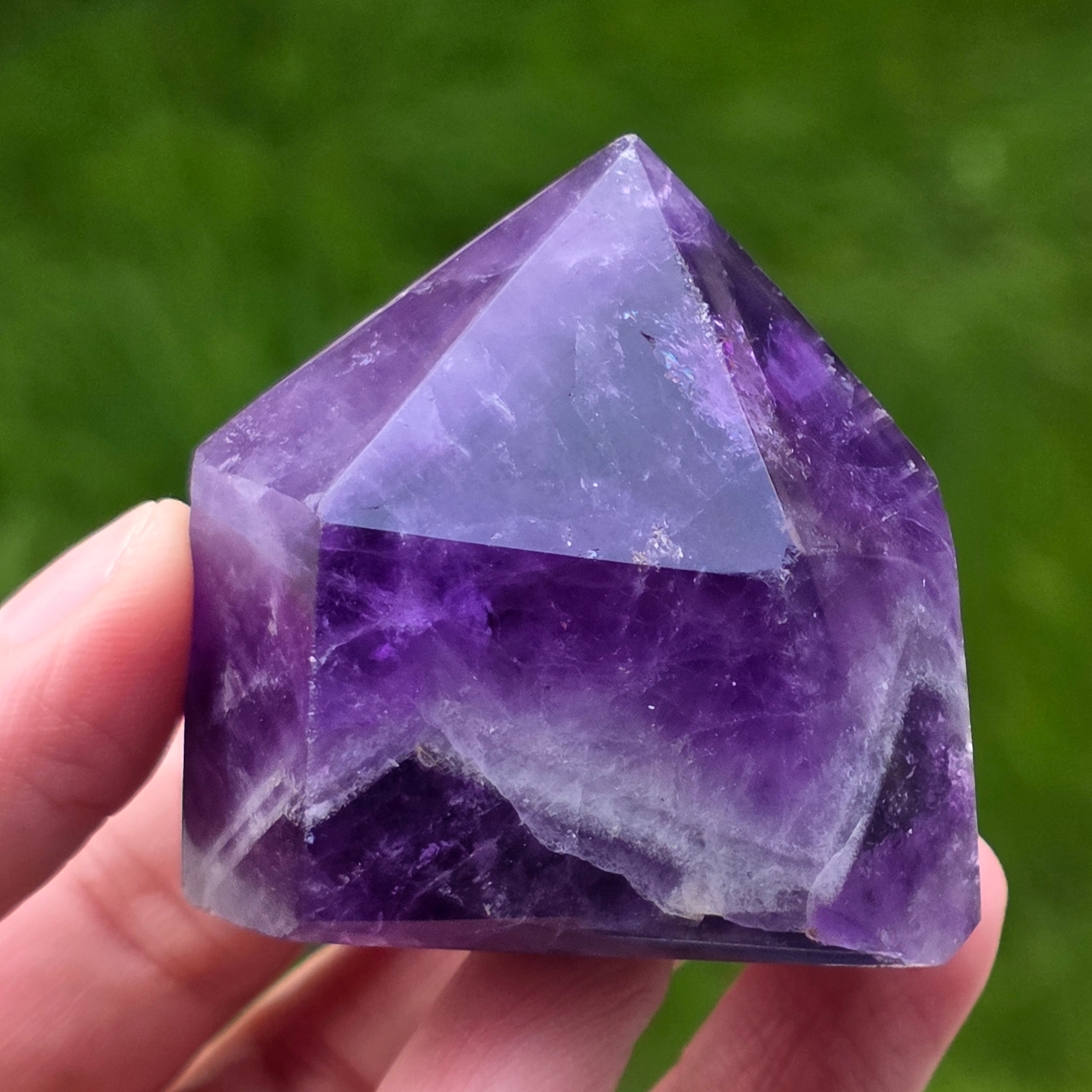 Το αμέθυστο chevron είναι γνωστό για τις συσχετίσεις του με το στέμμα και τα τσάκρα του τρίτου ματιού, αυξάνοντας τη διαίσθηση και τη λήψη αποφάσεων.