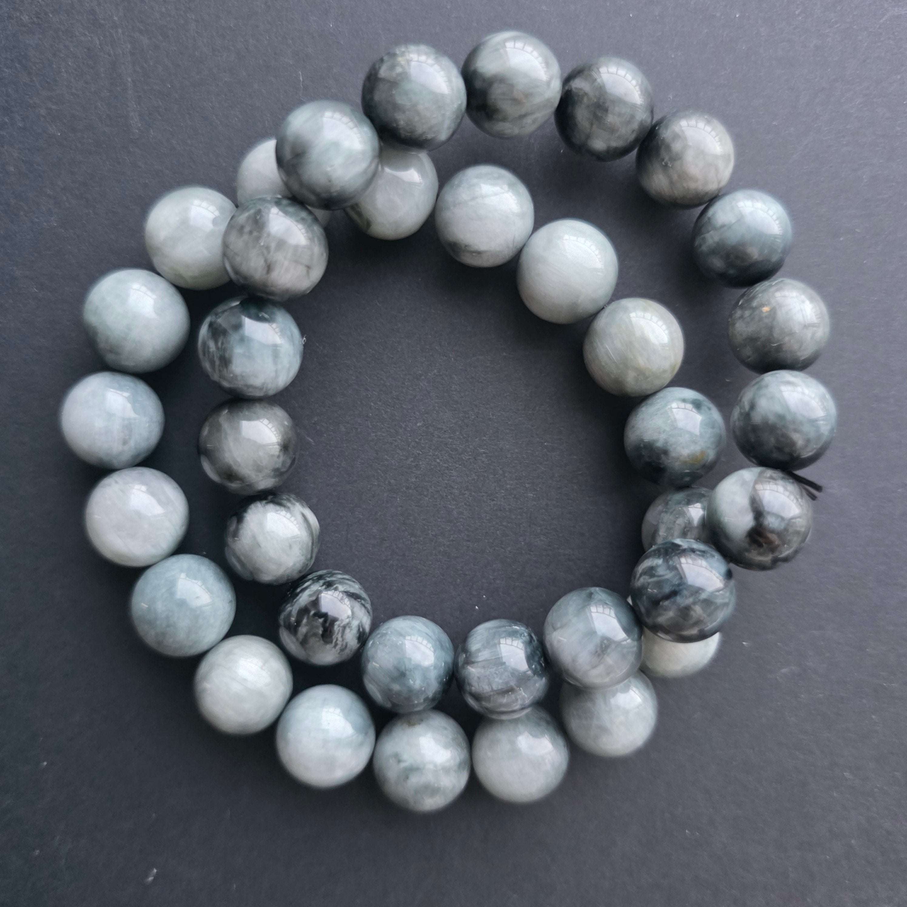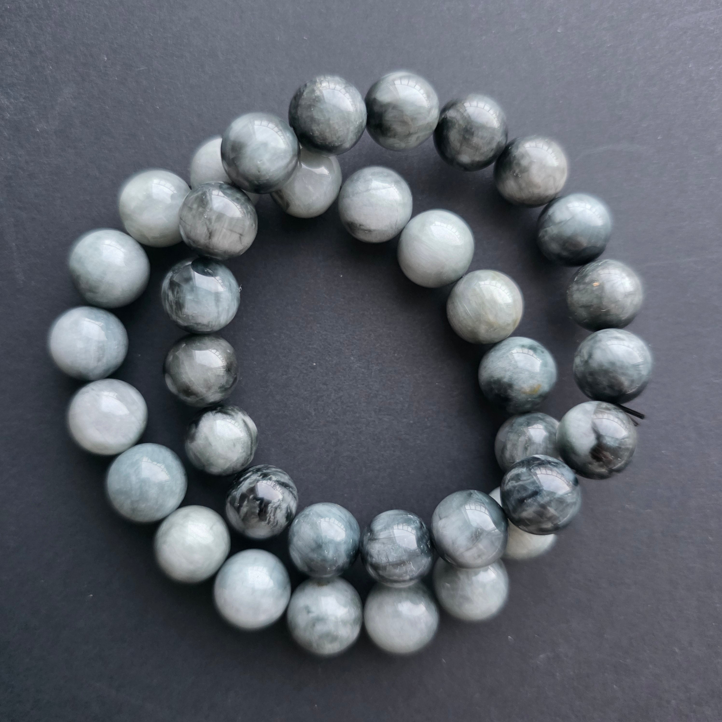 • Πέτρα: φυσικό γκρι μάτι τίγρης – σφαιρικές χάντρες 9–10 mm