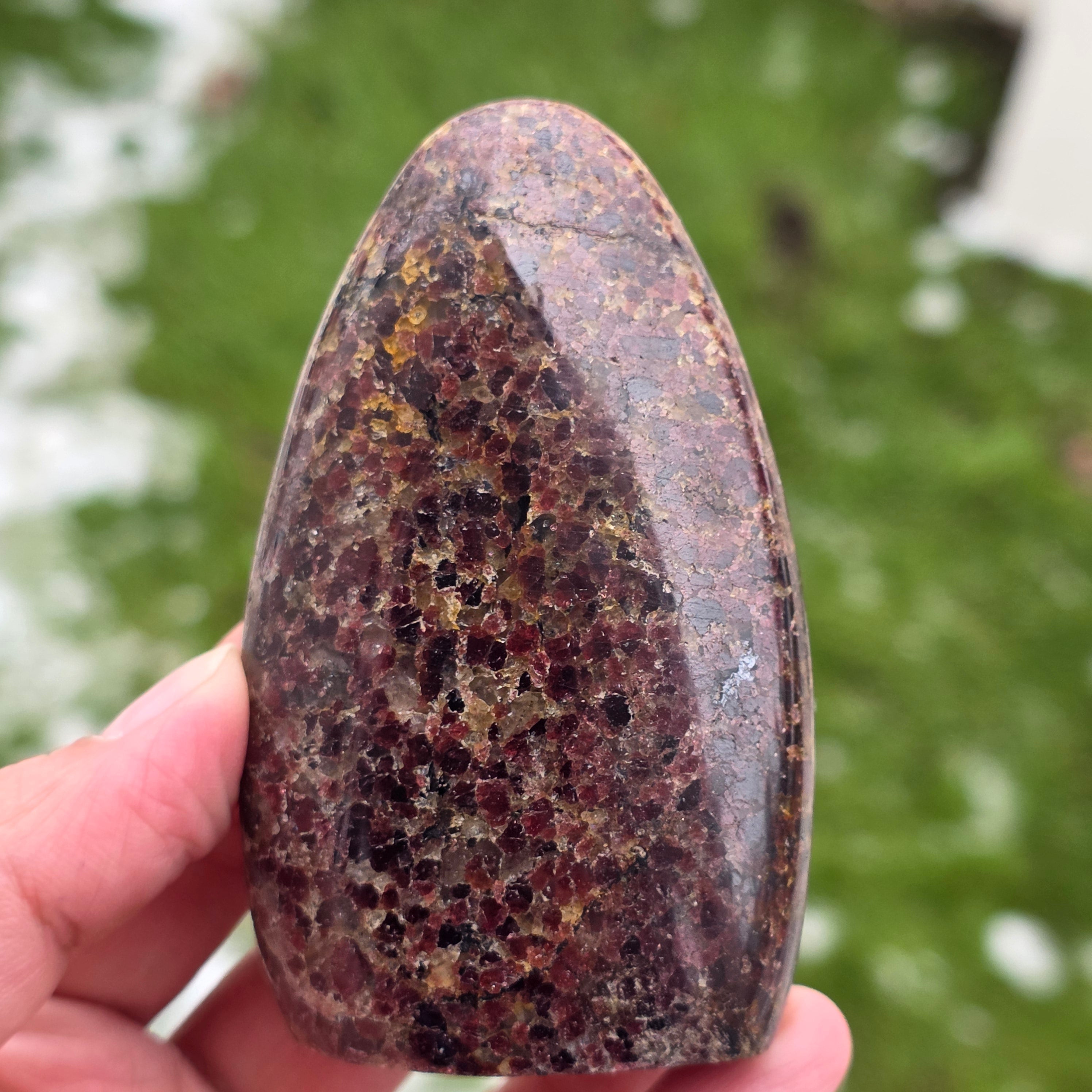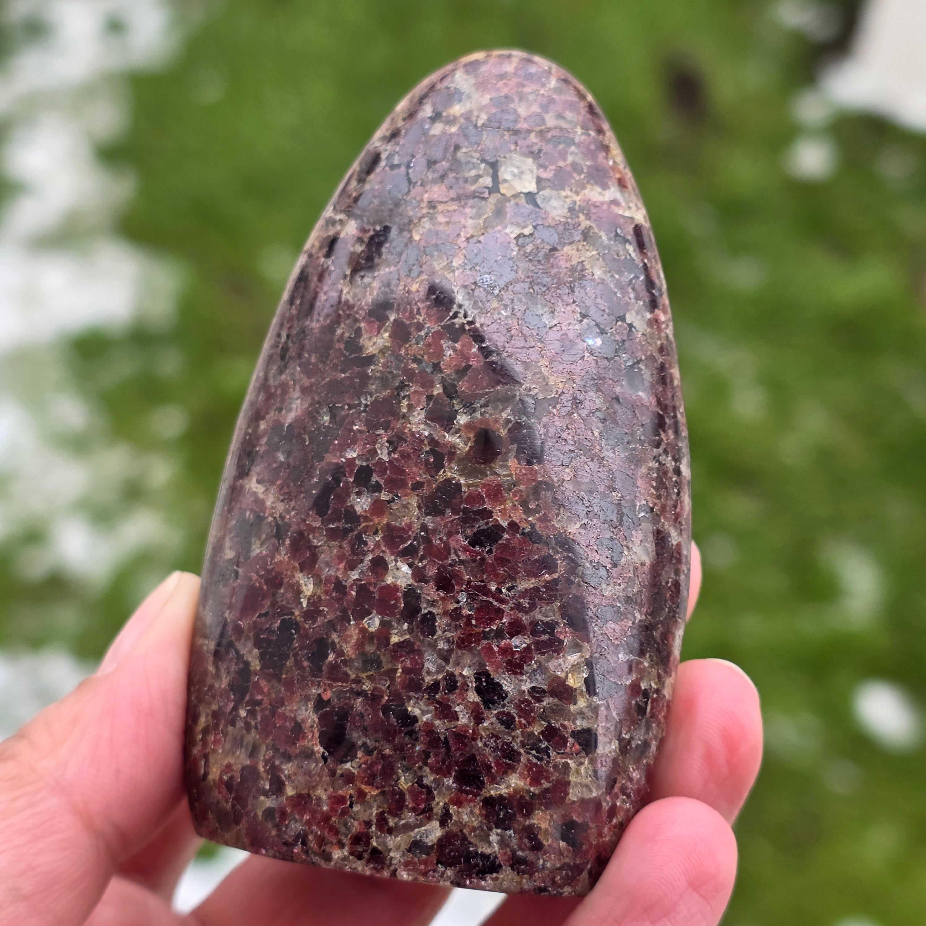 Αυτό κομμάτι από φυσικό γρανάτη Μαδαγασκάρης, με δομή ελεύθερης μορφής, διατηρεί τον αυθεντικό χαρακτήρα του κρυστάλλου, υπογραμμίζοντας την ισορροπία μεταξύ γυαλισμένων επιφανειών και φυσικών περιοχών. Είναι ένα κατάλληλο κομμάτι για συλλογή, χώρους διαλογισμού ή γραφείο, έχοντας μια ισχυρή και σταθεροποιητική παρουσία. Ο γρανάτης συνδέεται με τη ζωτικότητα, την αγκύρωση και τη σωματική και εσωτερική δύναμη, επιλέγεται συχνά για τη στήριξη της ενέργειας σε περιόδους κόπου, μεταμόρφωσης και επανασύνδεσης με τη δική δύναμη. Η ελεύθερη μορφή επιτρέπει μια φυσική έκφραση της ενέργειας, προσδίδοντας σε αυτό το κομμάτι έναν μοναδικό και αυθεντικό χαρακτήρα. Ο γρανάτης θεωρείται επίσης ως πέτρα του πάθους και της σεξουαλικής ενέργειας και συχνά φοριέται για να αυξήσει το επίπεδο ενέργειας και ζωτικότητας.