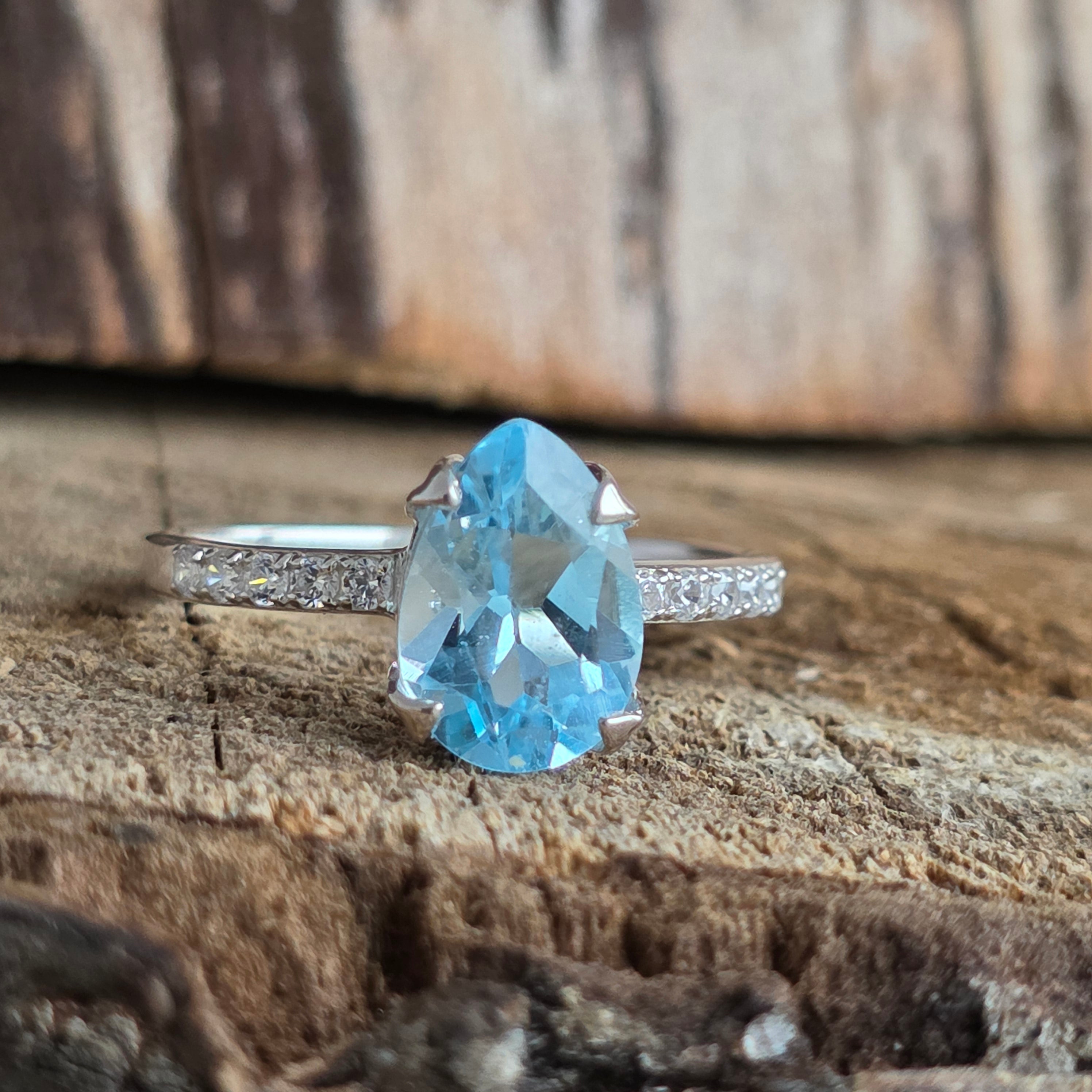 Μπλε Τοπάζι Ασημένιο Αχλάδι Δαχτυλίδι 10 mm, παρακαλώ επιλέξτε το μέγεθος που θέλετε.