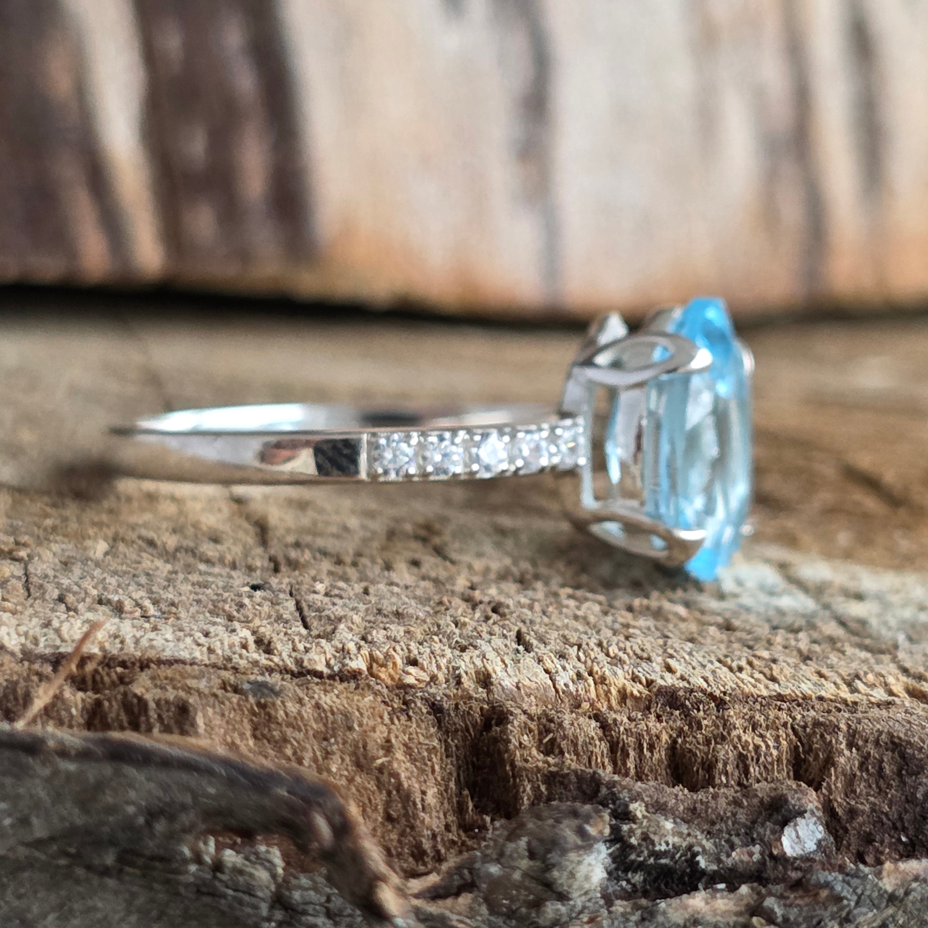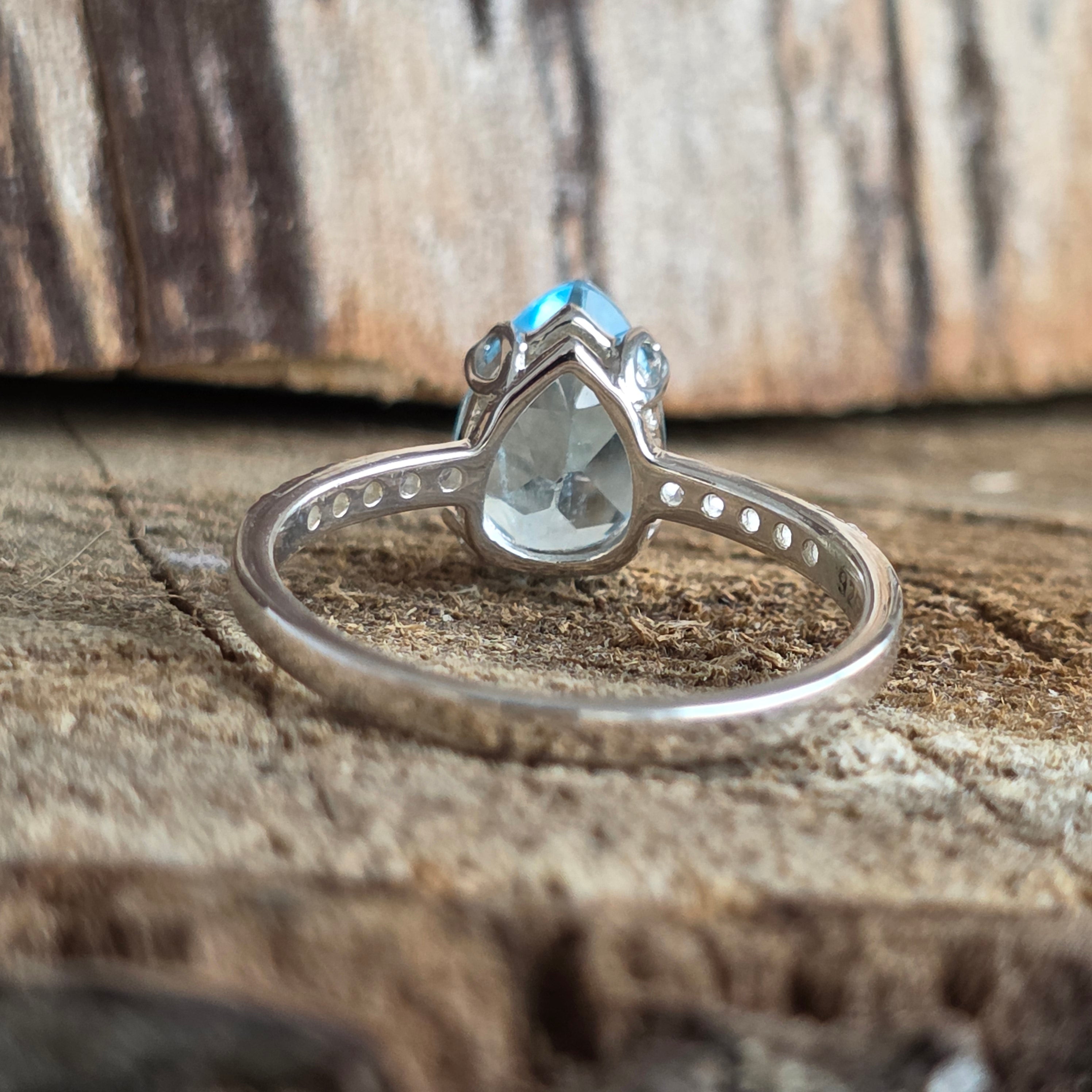 Δαχτυλίδι Αχλάδι Μπλε Τοπάζι Ασημί 10 mm