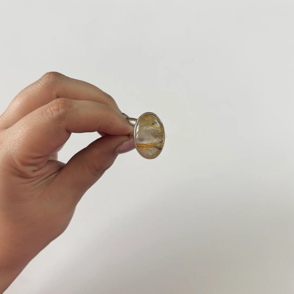 Ρυθμιζόμενο δαχτυλίδι χαλαζία Rutilated Silver Quartz Model 3