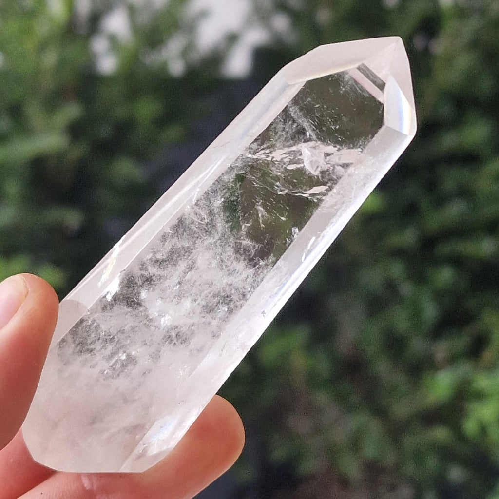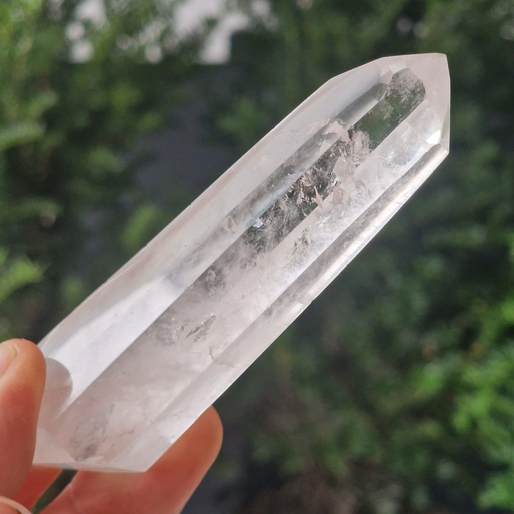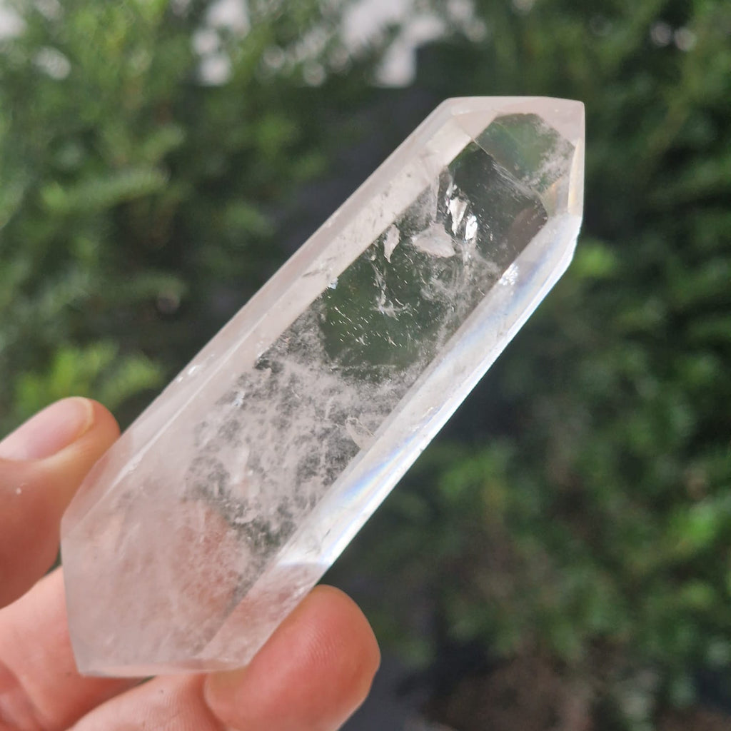 Διπλή άκρη άχρωμος χαλαζίας / κρύσταλλος βράχου από τη Μαδαγασκάρη μοντέλο icy4