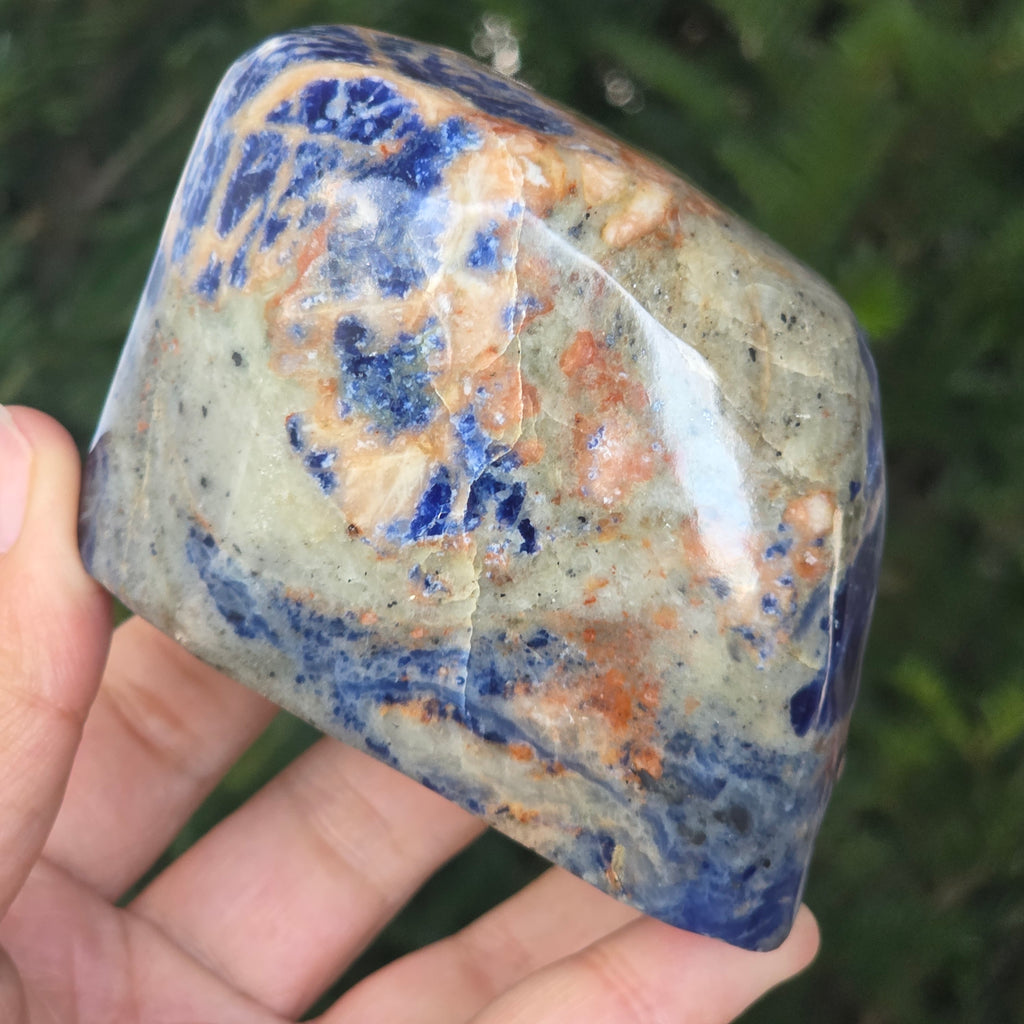 Προσθήκη α ελεύθερη μορφή από φυσικό σοδαλίτη στη συλλογή σας και αφήστε τη μπλε δόνηση του να φέρει διαύγεια, βάθος και αρμονία στο χώρο σας.