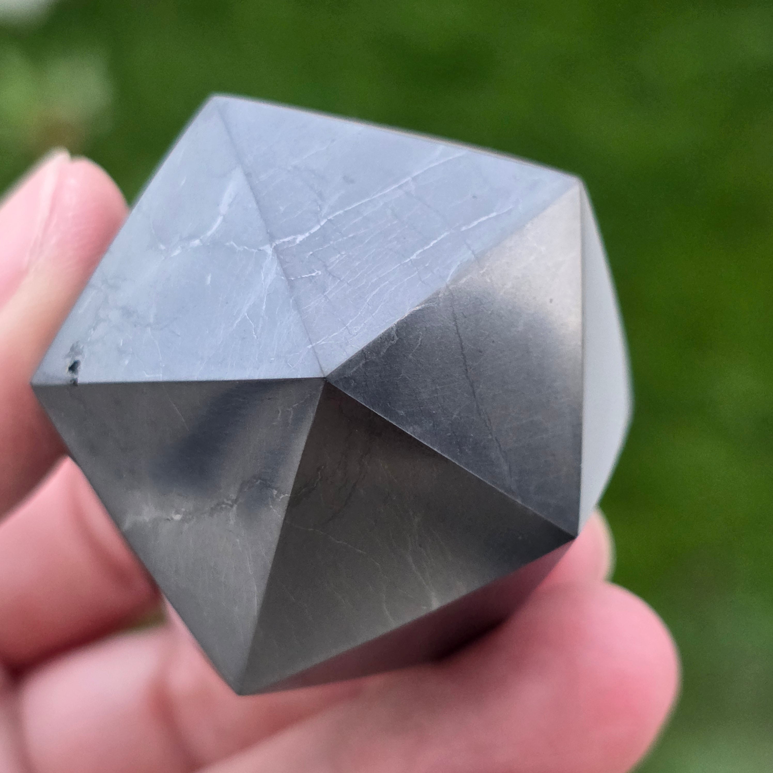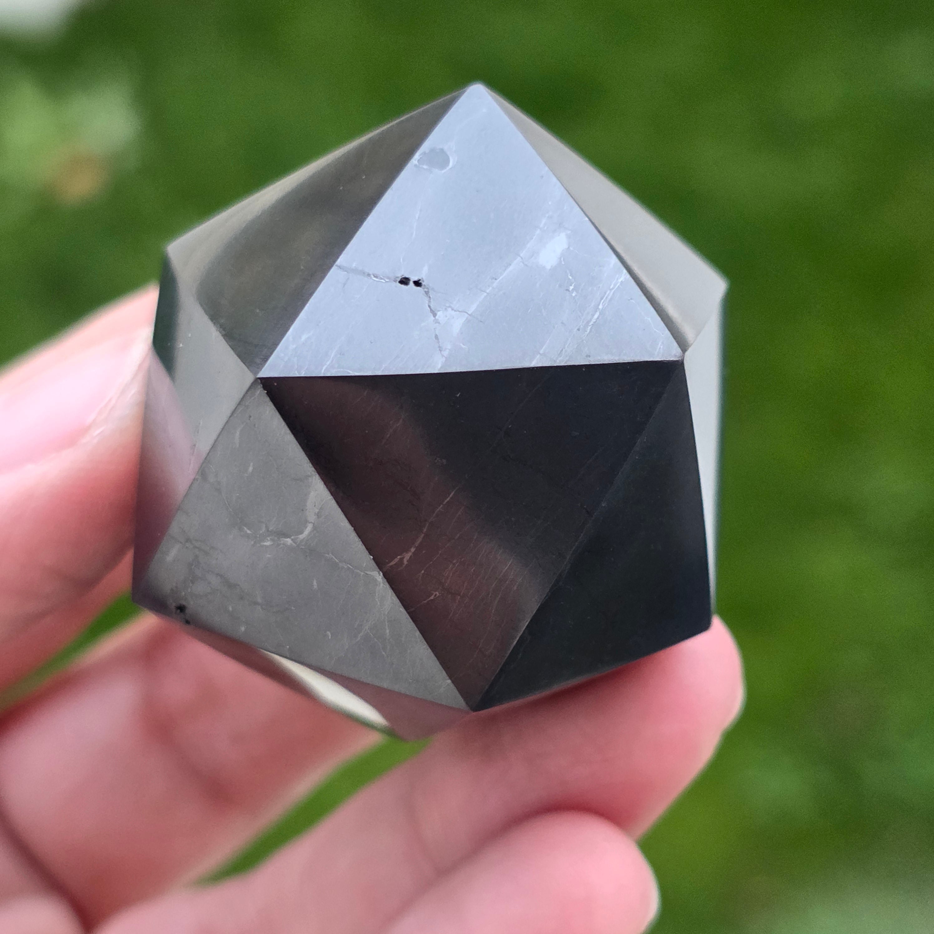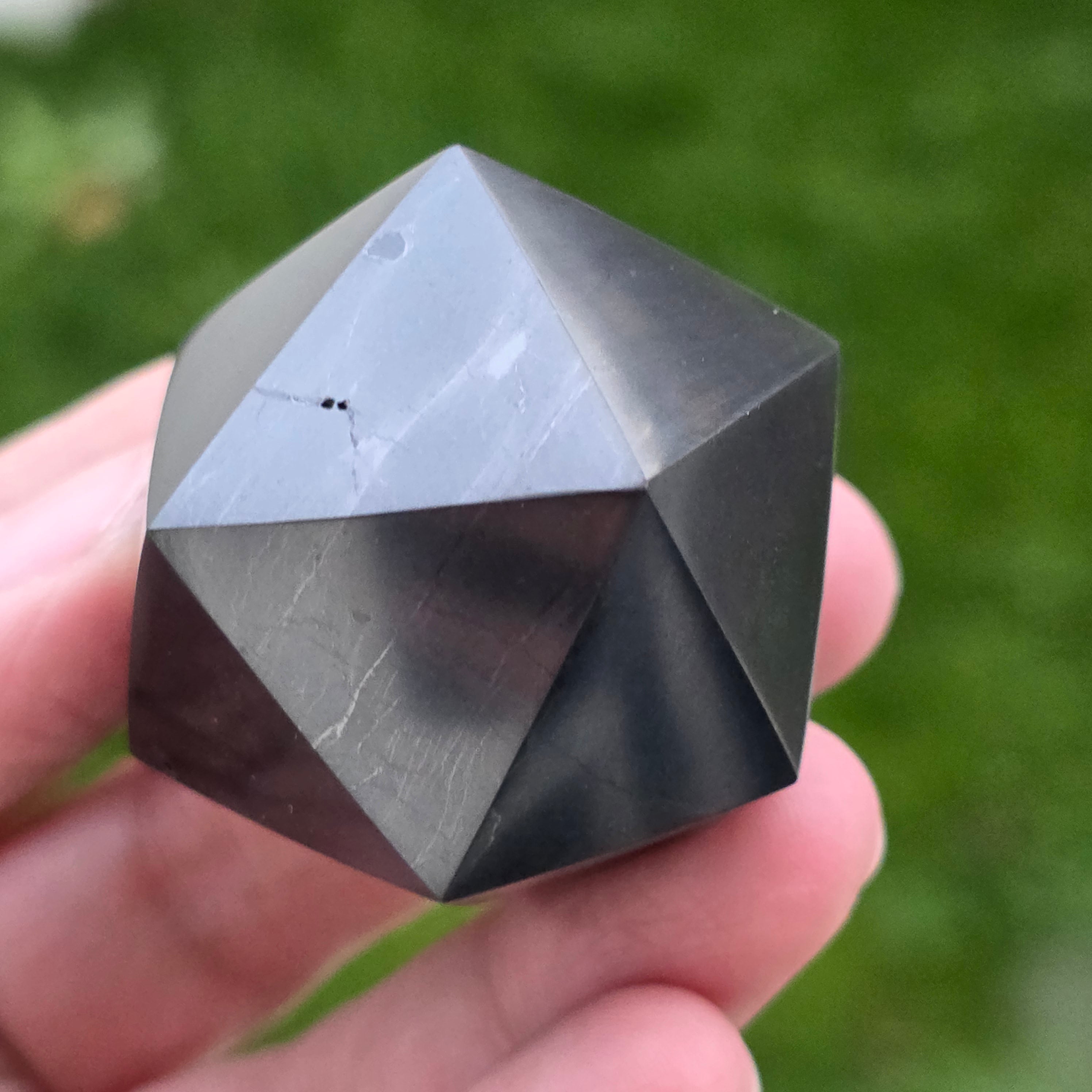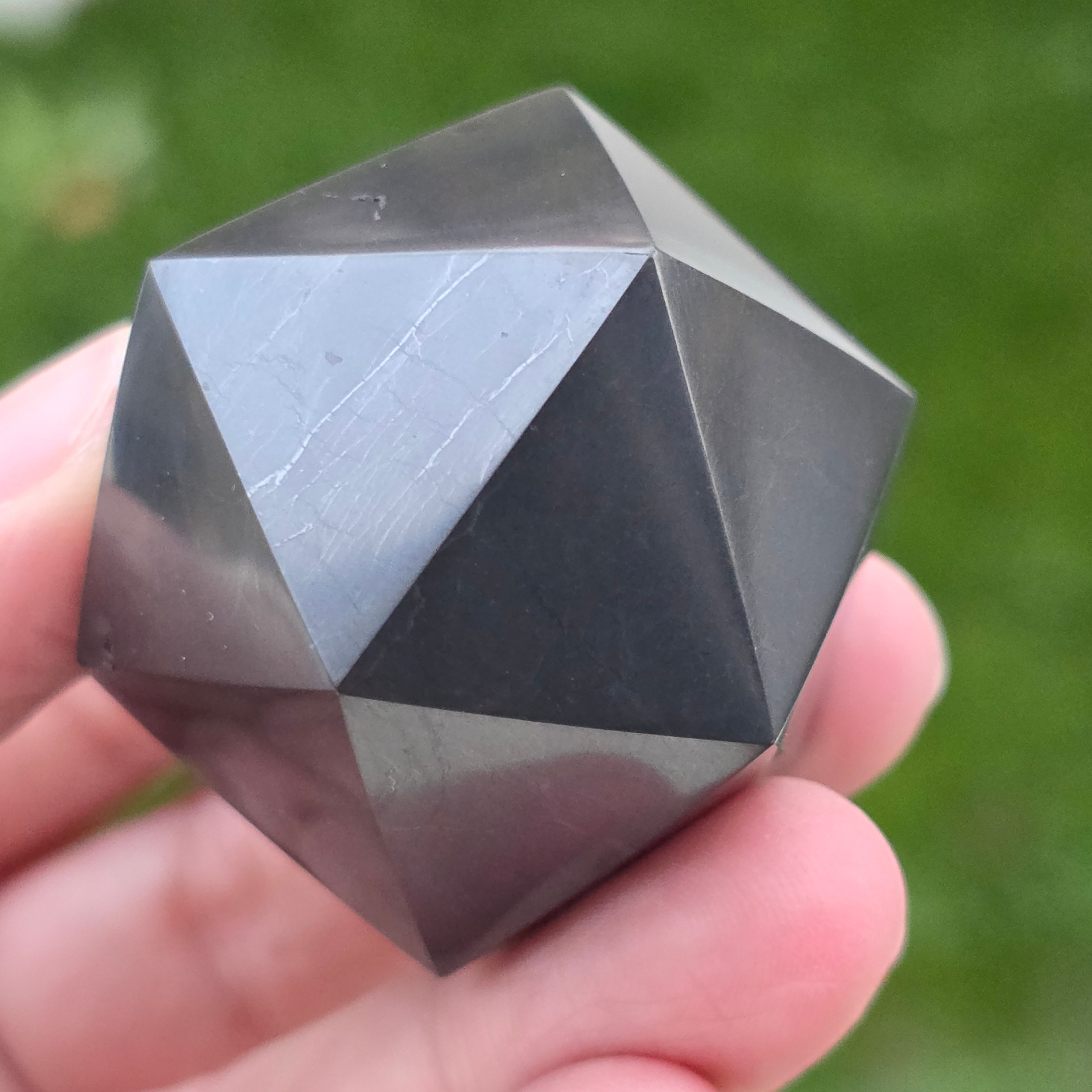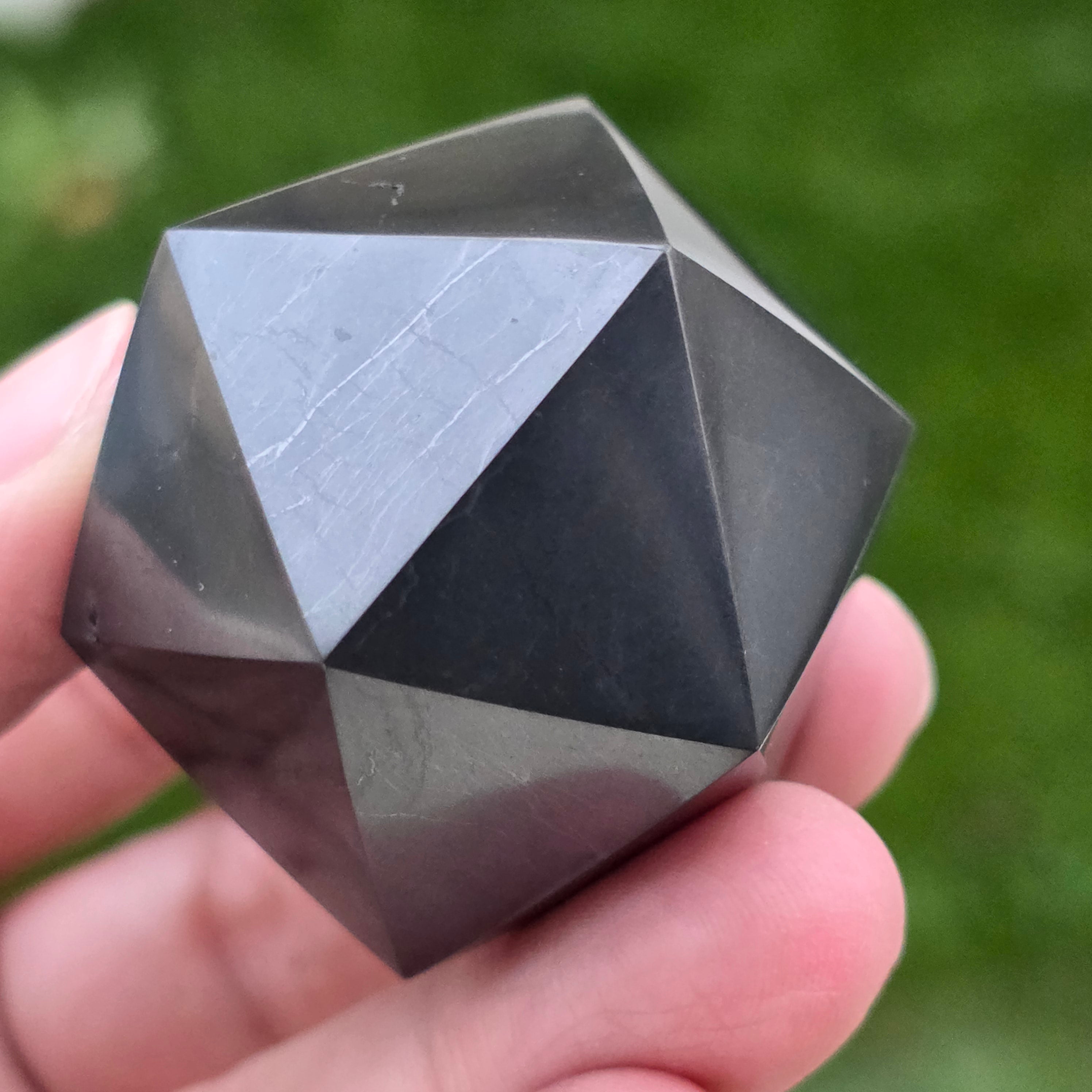 Το Shungite υποστηρίζει τις διαδικασίες καθαρισμού ενέργειας και τη δημιουργία ενός προστατευμένου χώρου και το σχήμα εικοσάεδρου τονίζει την ιδέα της αρμονικής ροής και της συναισθηματικής ισορροπίας. Είναι ένα κατάλληλο αντικείμενο για όσους εργάζονται με ενδοσκόπηση, συναισθηματική θεραπεία ή θέλουν να φέρουν περισσότερη ρευστότητα στη ζωή τους.