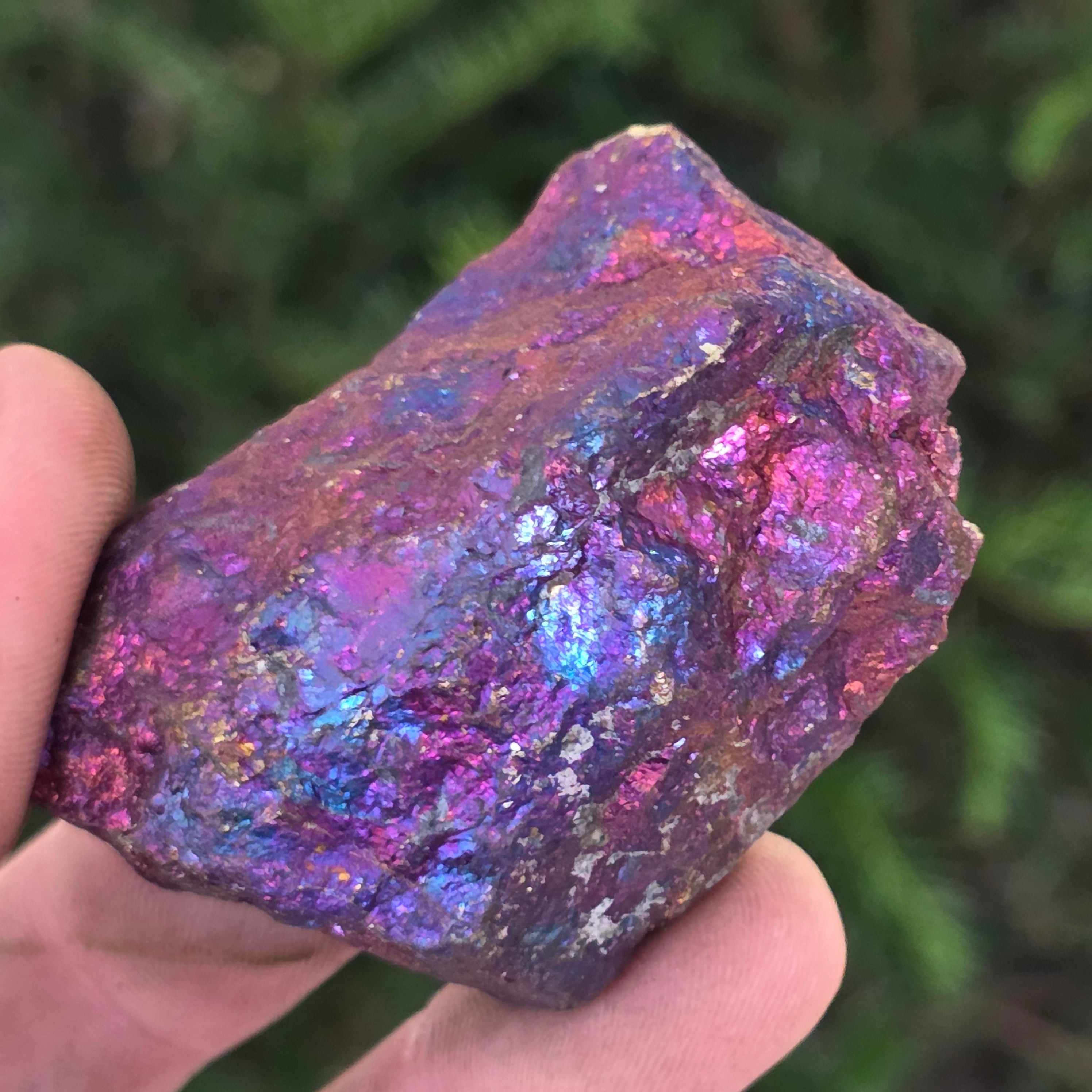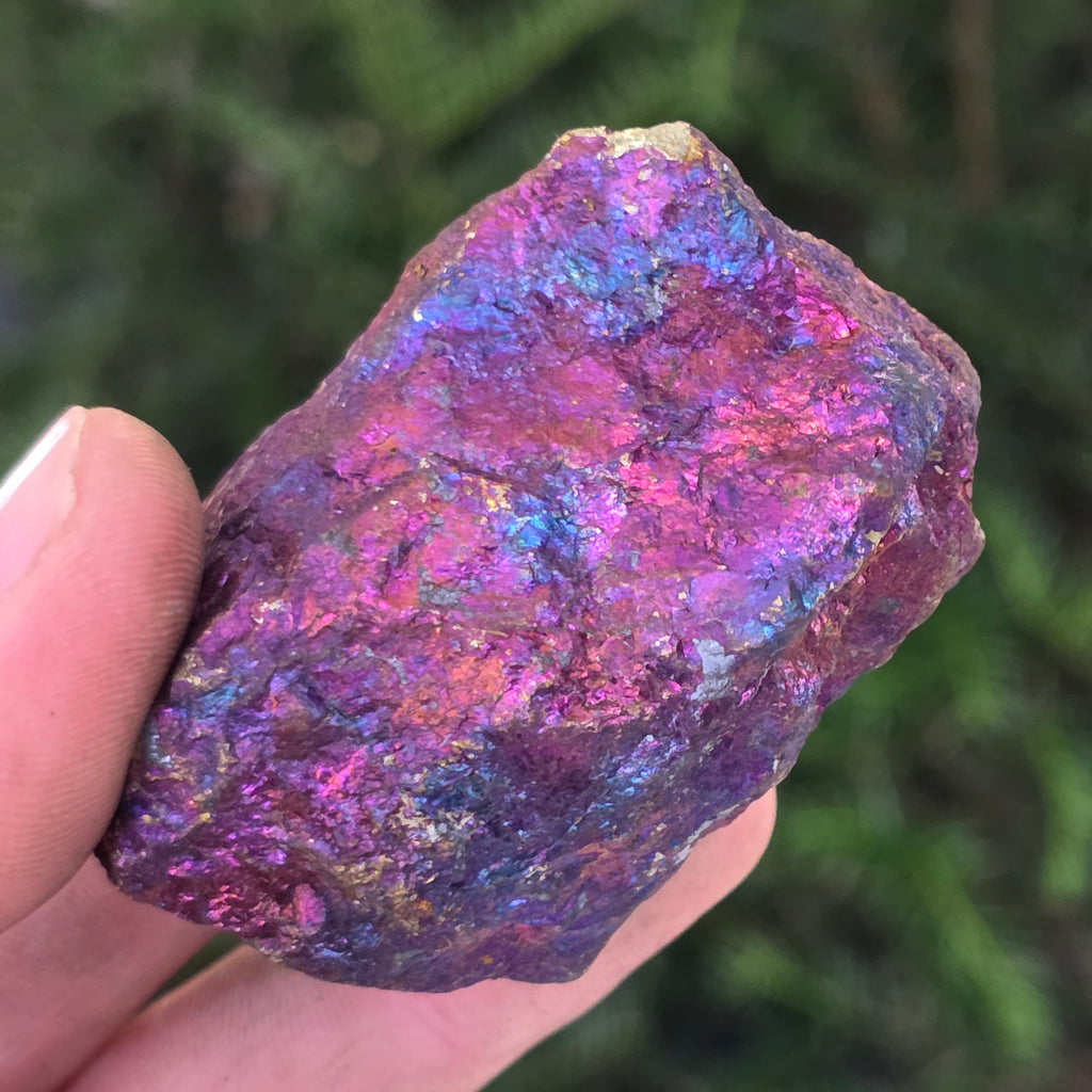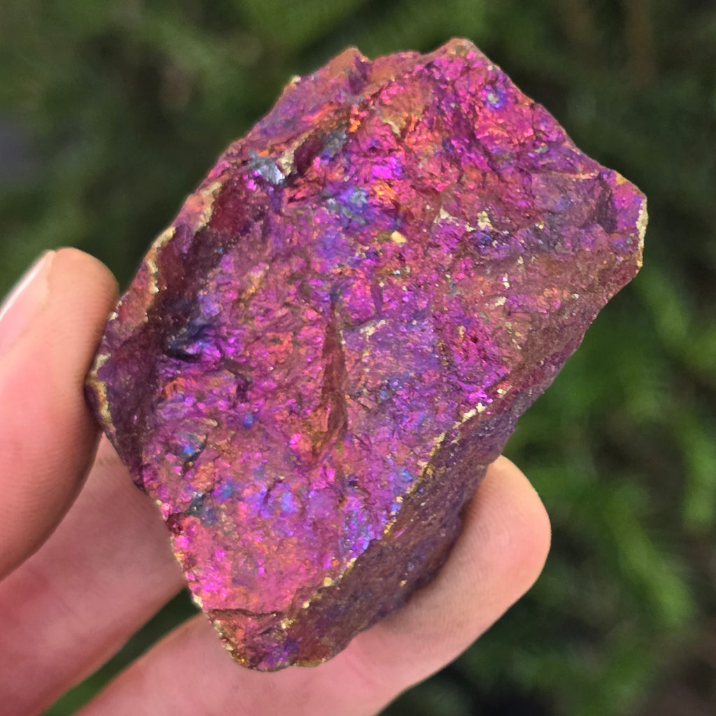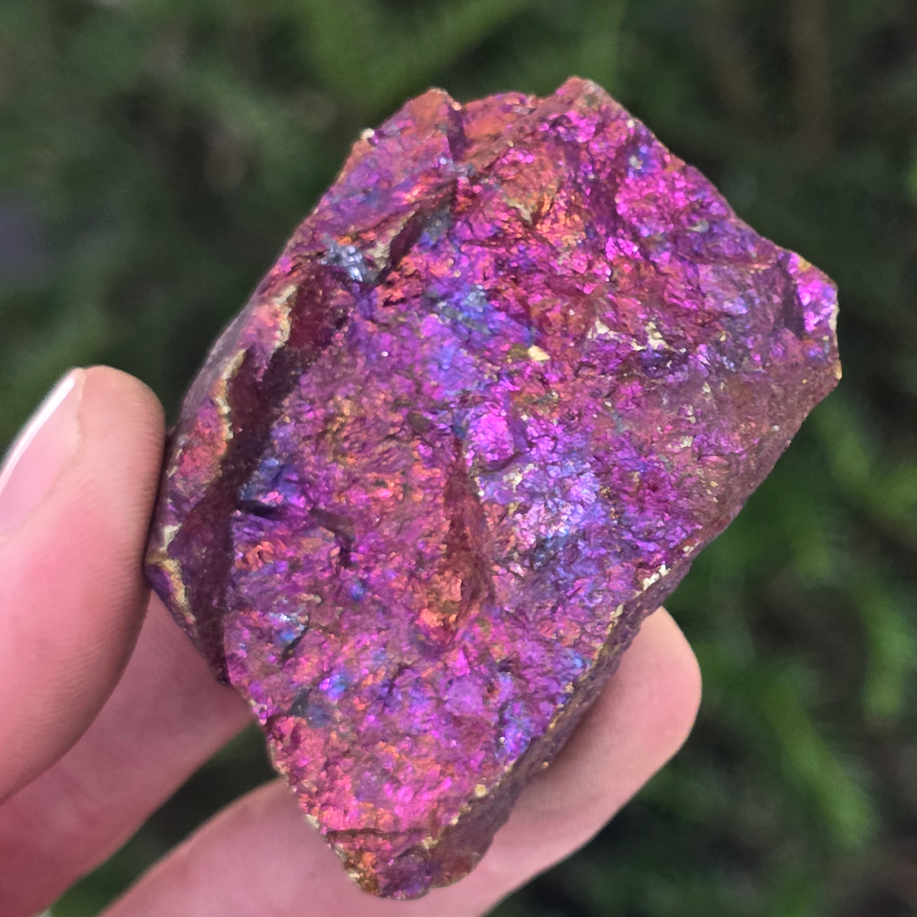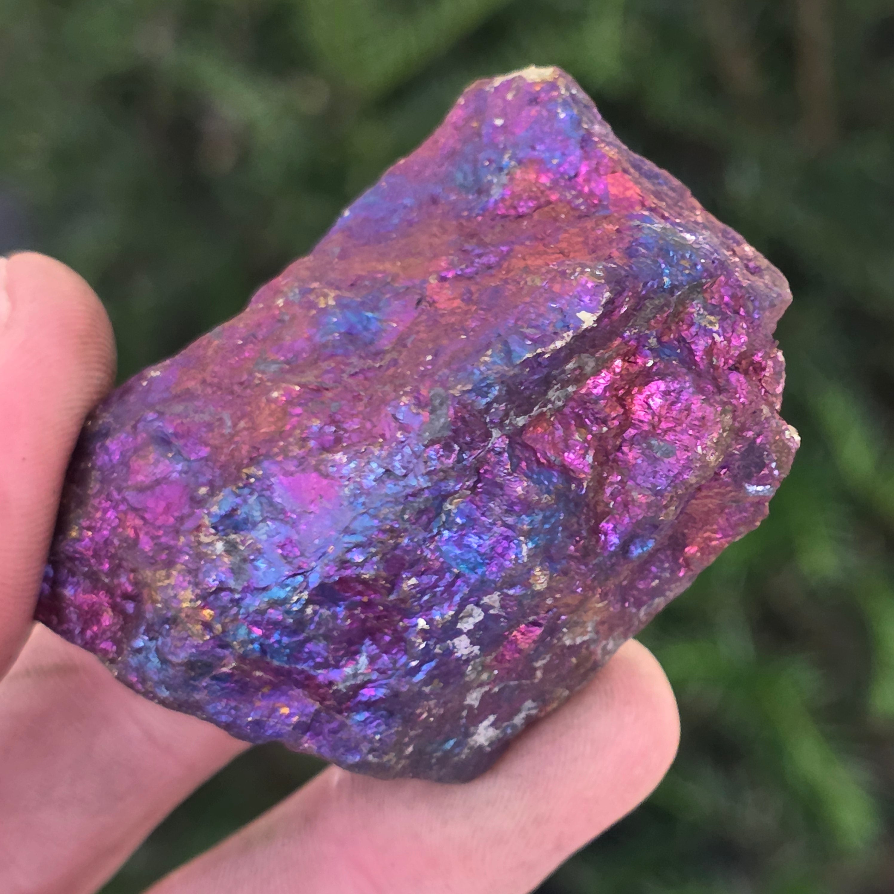 Οι μπλε και μοβ χαλκοπυρίτες συνδέονται με την πνευματική ανάπτυξη, τη διαίσθηση και τη σύνδεση με ανώτερες ενέργειες. Πιστεύεται ότι βοηθά να ηρεμήσει το μυαλό και να τονώσει τη δημιουργικότητα. Οι ιριδίζουσες αποχρώσεις του συνδέονται συμβολικά με την ισορροπία και την αρμονία.