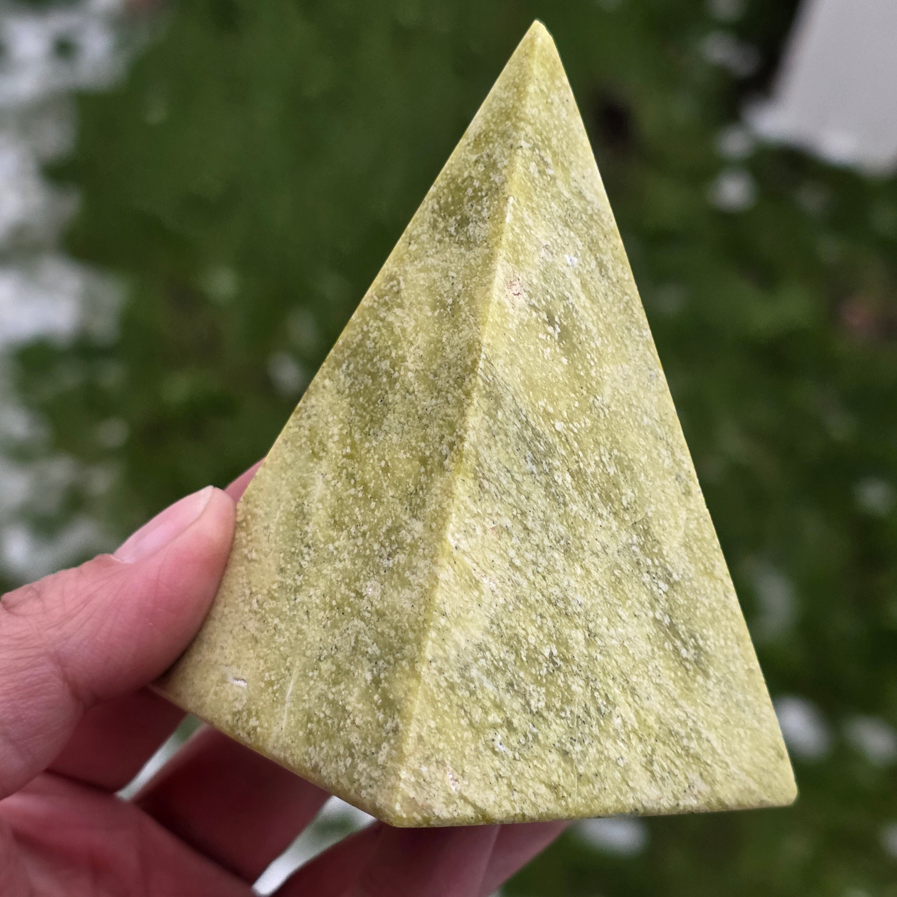Αυτή η πυραμίδα από φυσική κίτρινη σερπεντίνη είναι ένα φωτεινό και ισορροπητικό κομμάτι, κατάλληλο για χώρους διαλογισμού, γραφείο ή περιοχές αφιερωμένες στην εσωτερική αναζωογόνηση. Η κίτρινη σερπεντίνη συνδέεται με την αναζωογόνηση της ενέργειας, τη νοητική καθαρότητα και τη στήριξη των διαδικασιών συναισθηματικής ισορροπίας. Το σχήμα της πυραμίδας βοηθά στη συγκέντρωση και σταθεροποίηση της ενέργειας, καθιστώντας αυτό το κομμάτι ένα σημείο λεπτής υποστήριξης για συγκέντρωση, αρμονία και επανασύνδεση.