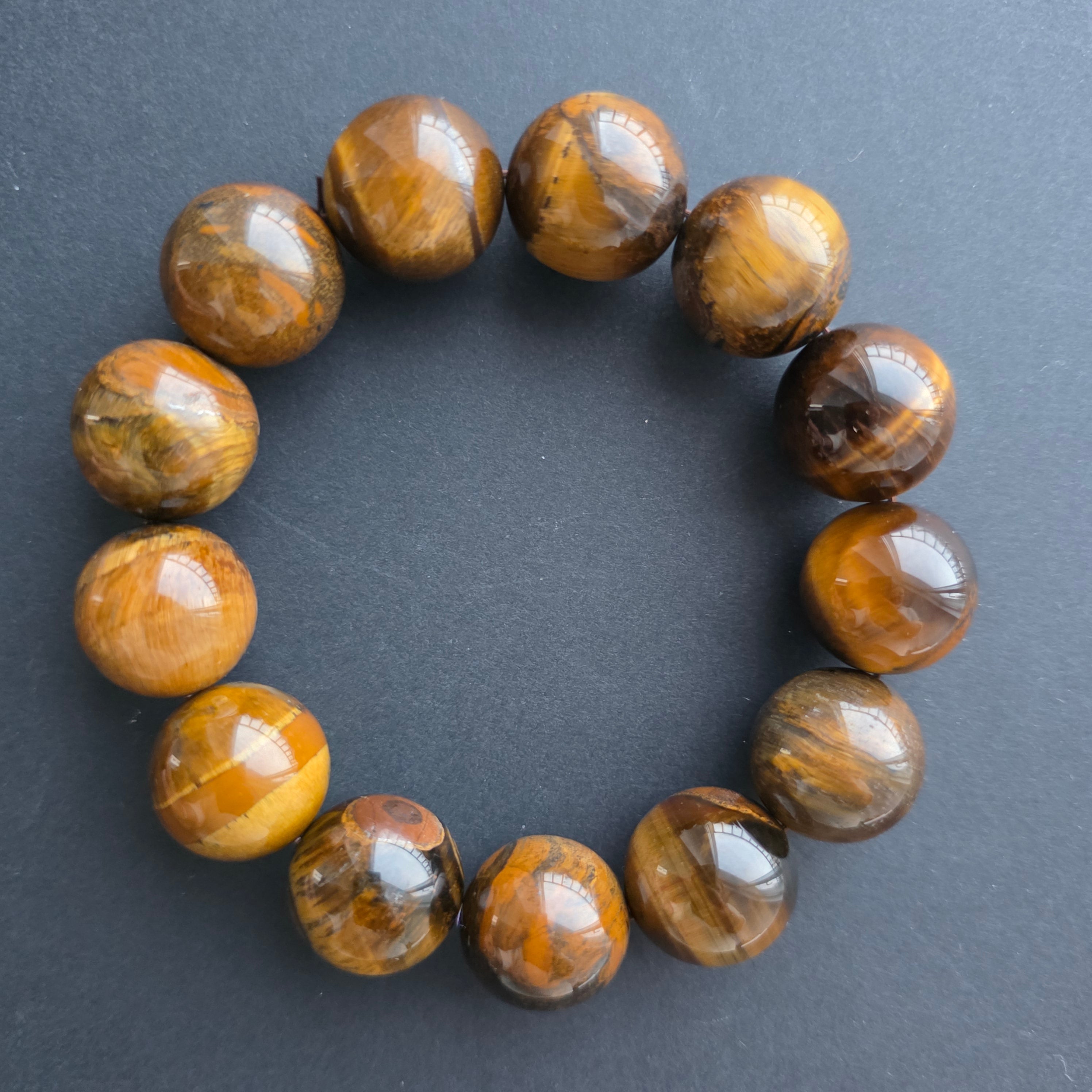 • Πέτρα: Φυσικό Κίτρινο Μάτι Τίγρης – Σφαιρικές Χάντρες 14 mm