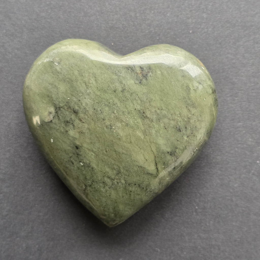Αυτή η καρδιά σκαλισμένη από νεφρίτης πράσινος νεφρίτης κουβαλά μέσα του την ησυχία των βουνών, τη δροσιά των πηγών και την ήρεμη δύναμη της προστατευτικής πέτρας της Ασίας. Κάθε απόχρωση του πράσινου, κάθε κυματισμός της επιφάνειάς του φέρνει στο μυαλό αρμονία, ισορροπία και εσωτερική σταθερότητα. Ένα μικρό κομμάτι, αλλά γεμάτο νόημα, που δημιουργήθηκε για όσους νιώθουν ότι η μεταμόρφωση ξεκινά πάντα από το χώρο της καρδιάς.
