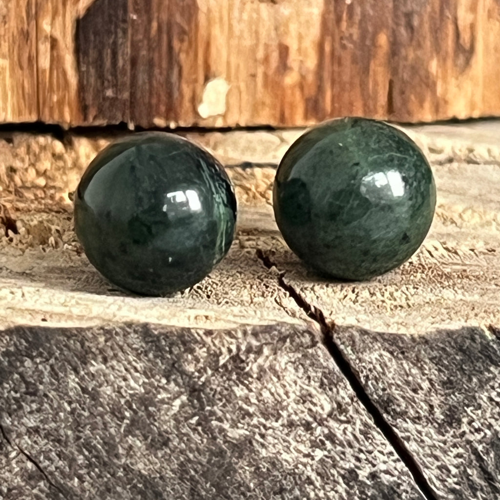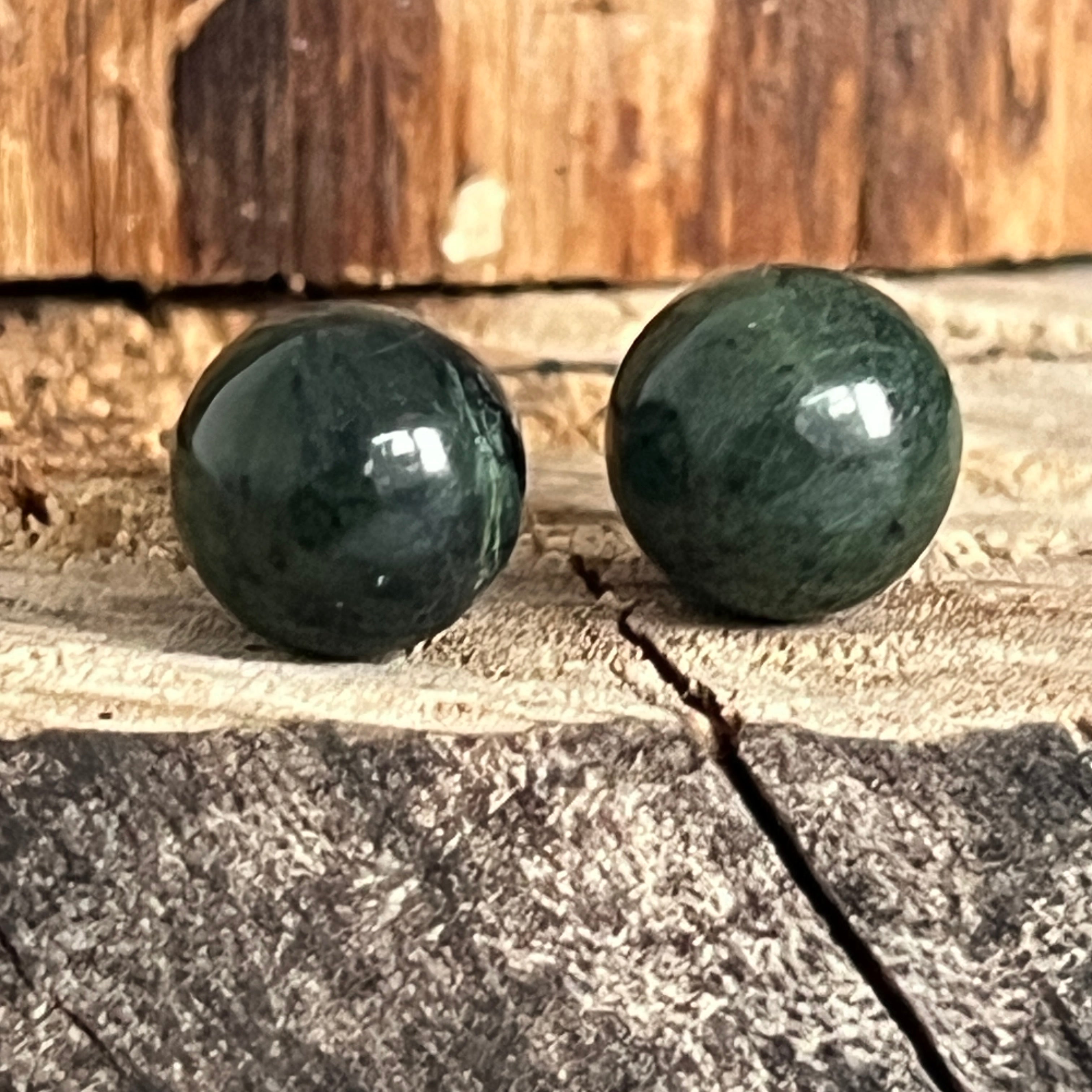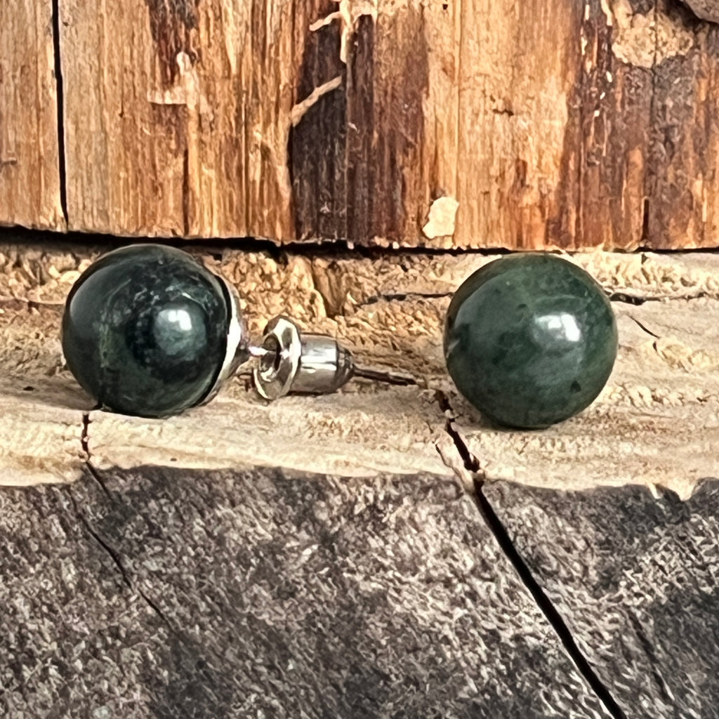 Περιγραφή - Καρφωτά Σκουλαρίκια Green Jade 10 mm