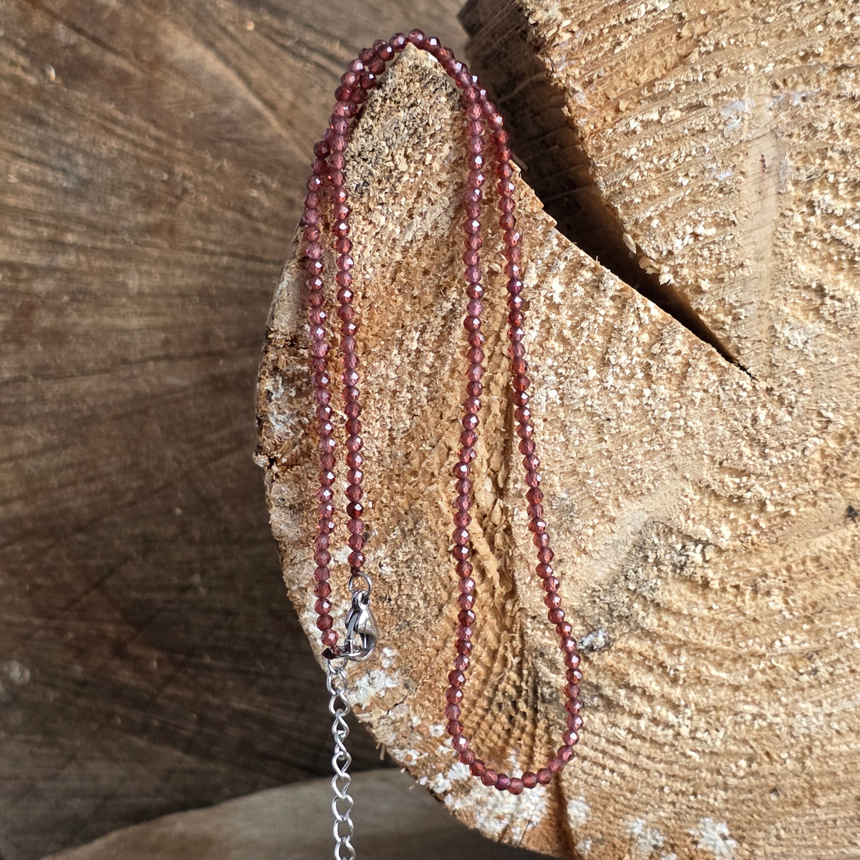 Γρανάτης κολιέ σφαίρες 2 mm, μέγεθος: 38 + 5 cm (αλυσίδα επέκτασης)