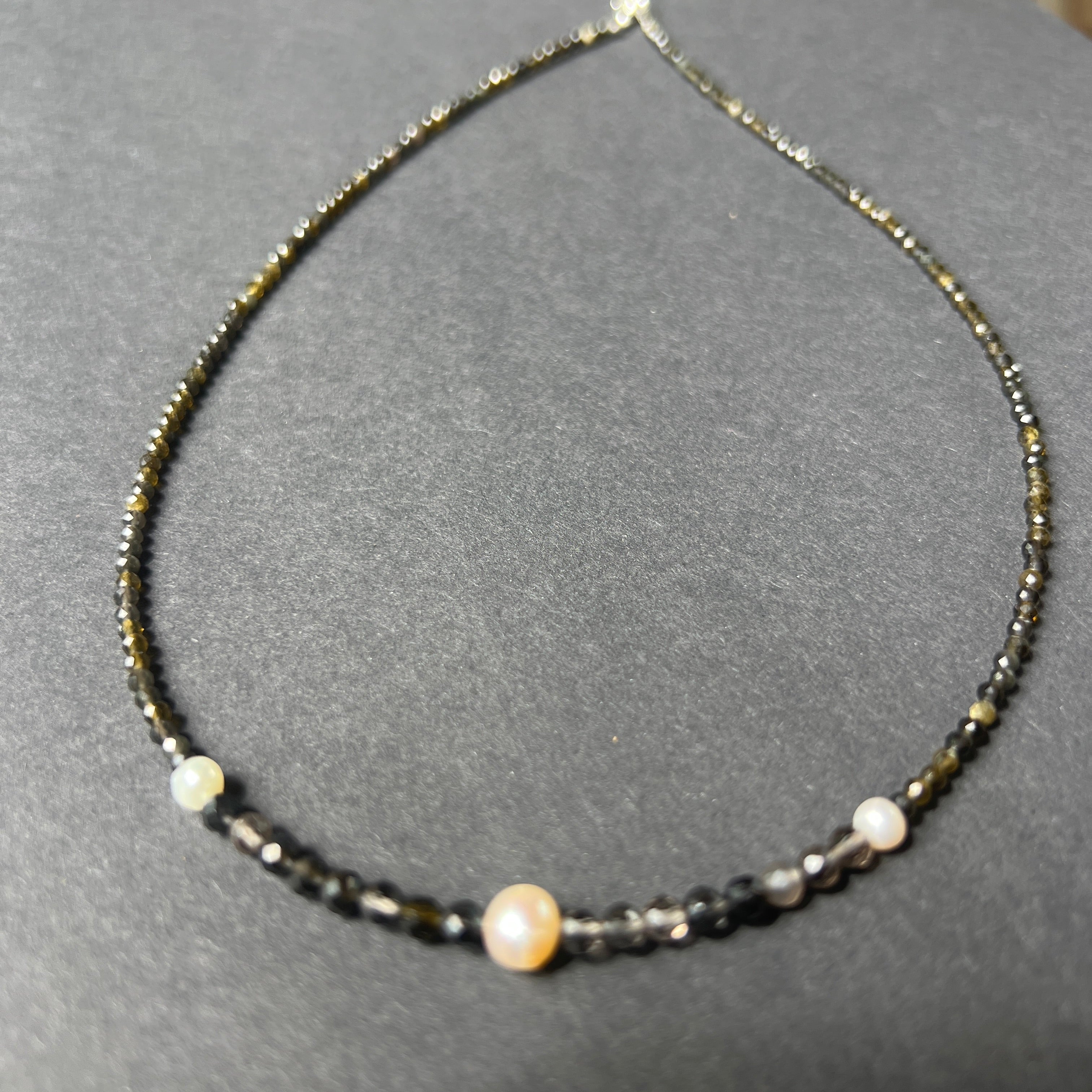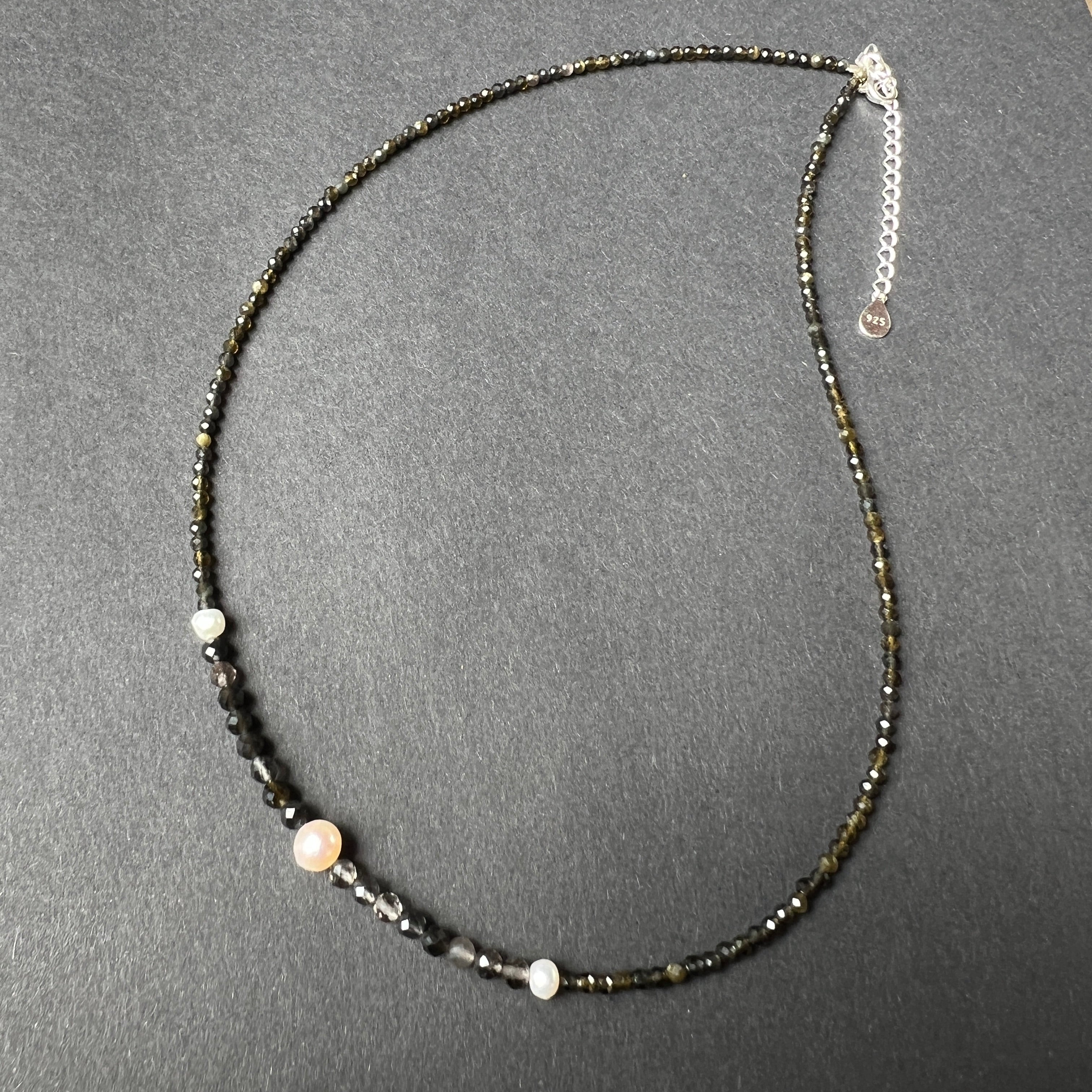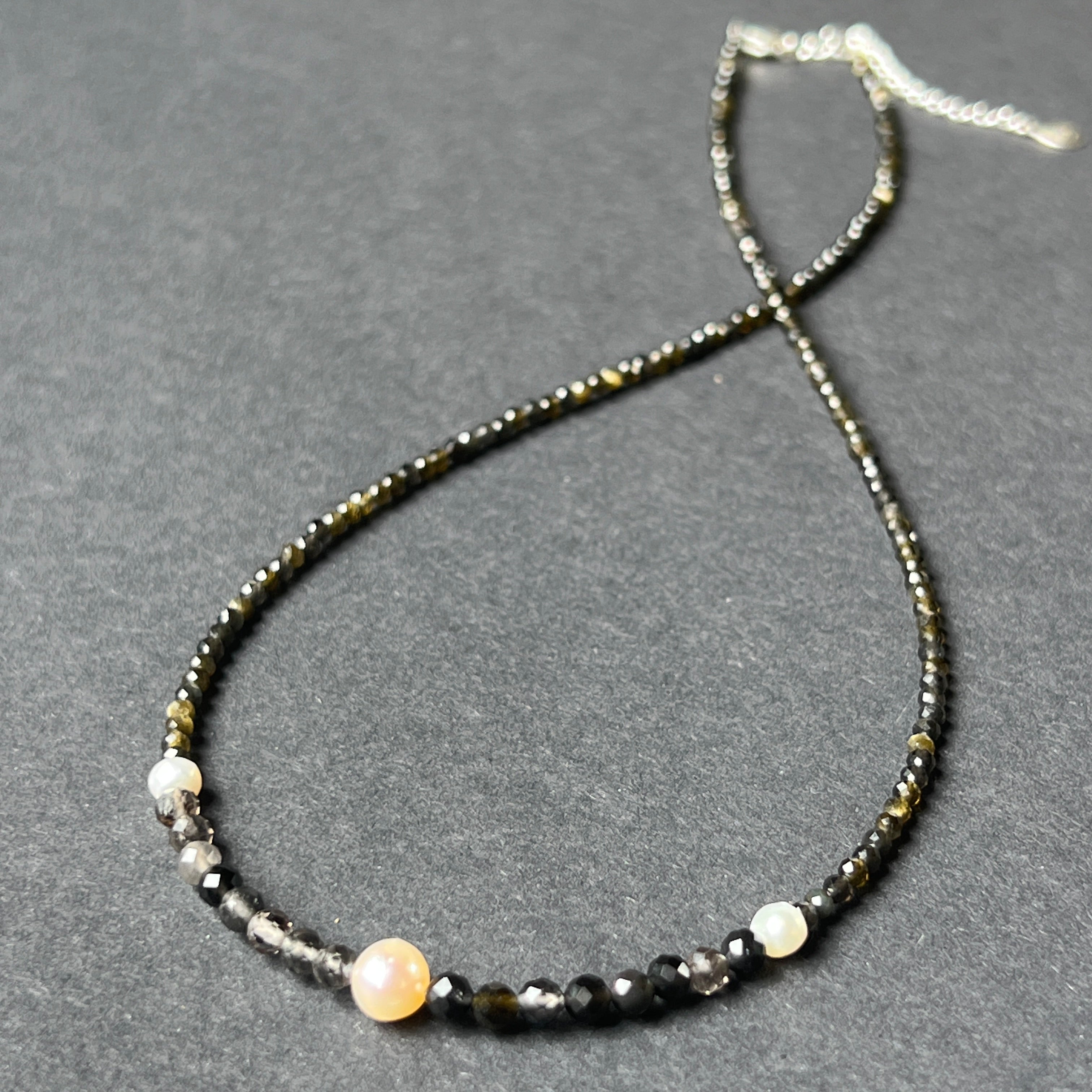 Υλικά: Obsidian Facet 2 και 4 mm, 3 φυσικά μαργαριτάρια, 925 ασημένια