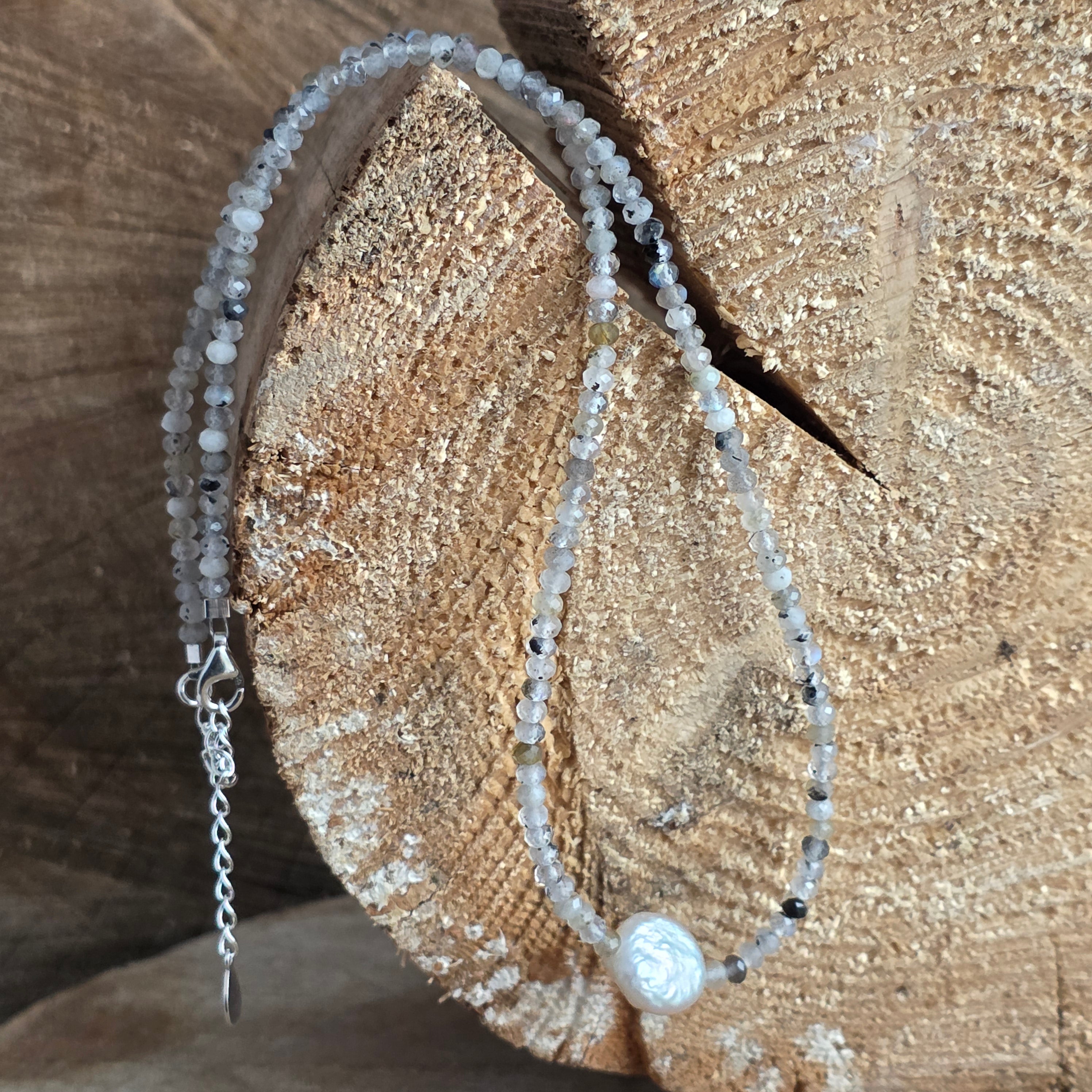 Η ενέργειά του φέρει τη δόνηση της διαίσθησης, της προστασίας και της εσωτερικής μεταμόρφωσης, αποτελώντας μια πέτρα λεπτής μαγείας, που μας θυμίζει ότι η πραγματικότητα είναι πιο εκτεταμένη από αυτό που φαίνεται. Ο λάβραντορ ξυπνά το θάρρος να ακολουθήσουμε τον δικό μας δρόμο, ενώ το φυσικό μαργαριτάρι 1 cm προσθέτει μια νότα χάρης και καθαρότητας — μια ισορροπία μεταξύ εσωτερικού φωτός και εξωτερικής κομψότητας.