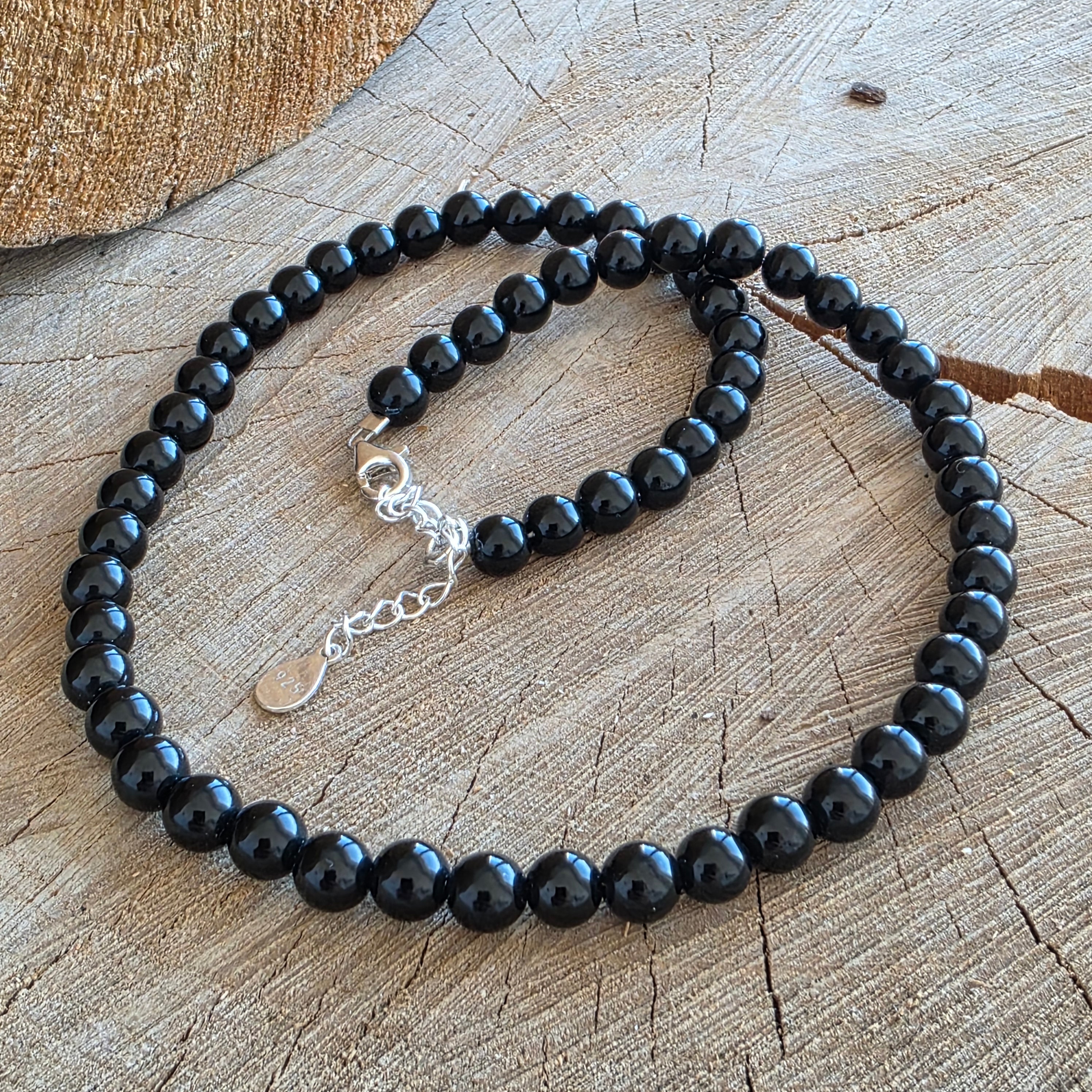 Υλικά: φυσικός μαύρος οψιδιανός, σφαιρίδια 6 χλστ. με όψη, ασήμι 925