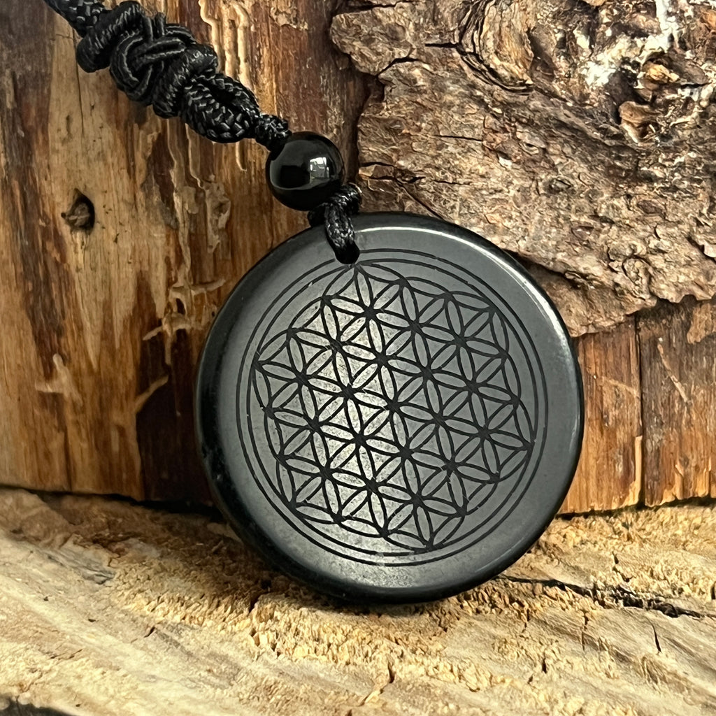 Το κολιέ από Φυσικός οψιανός Χαραγμένο με το σύμβολο Το λουλούδι της ζωής / Λουλούδι της ζωής Είναι ένα κόσμημα προστασίας και καθολικής αρμονίας. Το λουλούδι της ζωής, ένα από τα παλαιότερα και πιο ιερά γεωμετρικά σύμβολα, αντιπροσωπεύει την ενότητα και τη διασύνδεση όλων των μορφών ζωής.