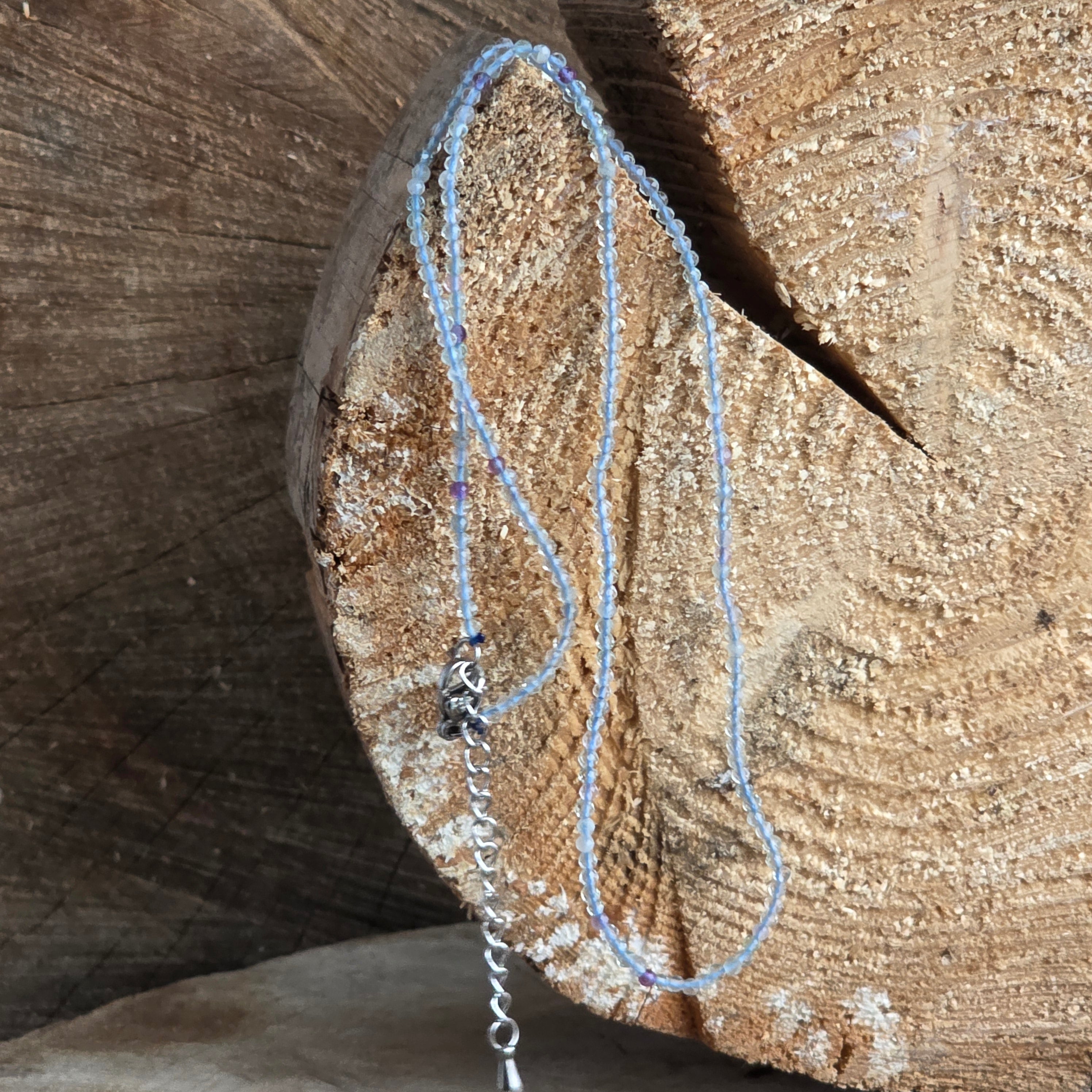 Σφαίρες κολιέ φθορίτη 2-3 mm, μέγεθος: 38 + 5 cm (αλυσίδα επέκτασης)