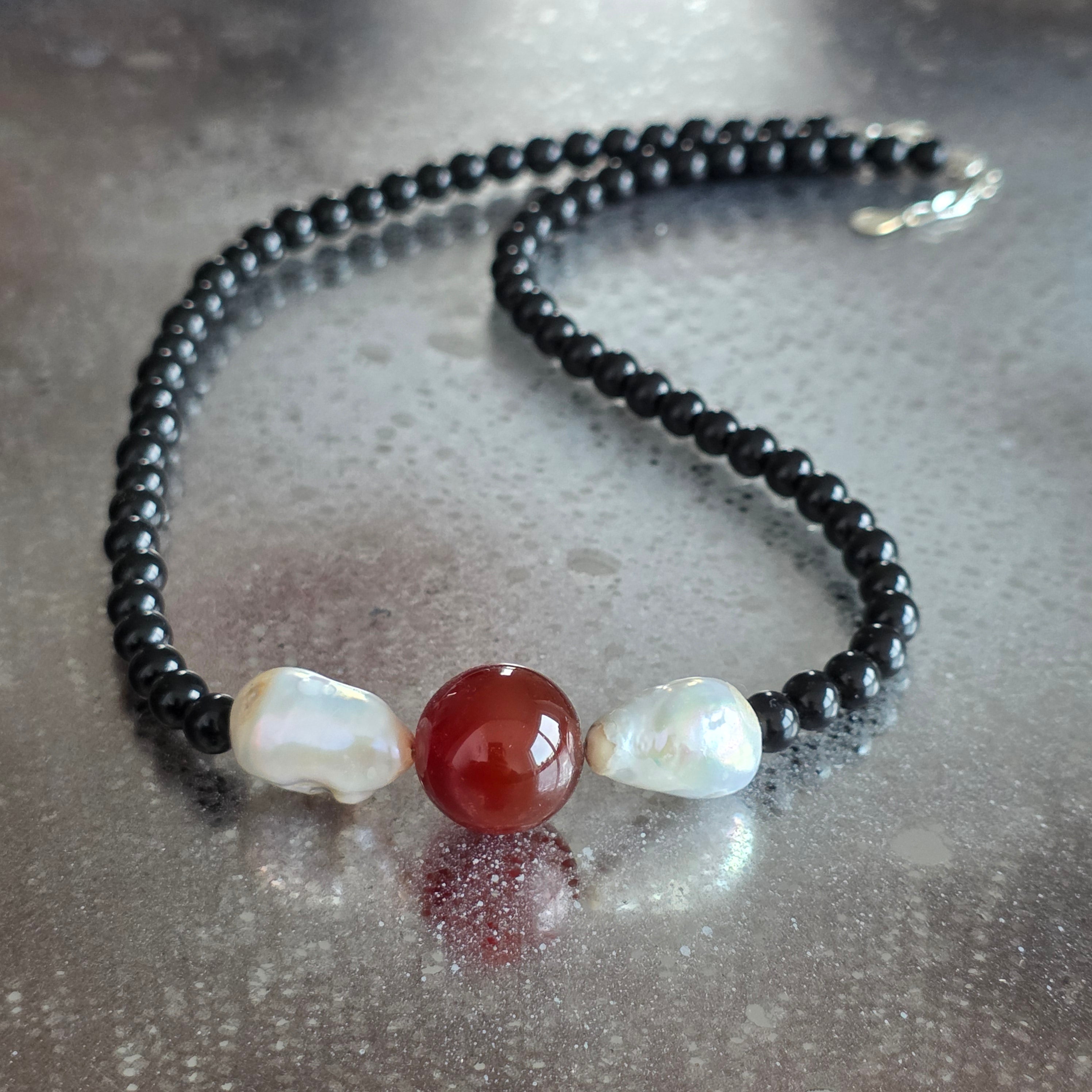 Κολιέ από οψιδιανό, καρνεόλη και μαργαριτάρια Rooted Glow#13