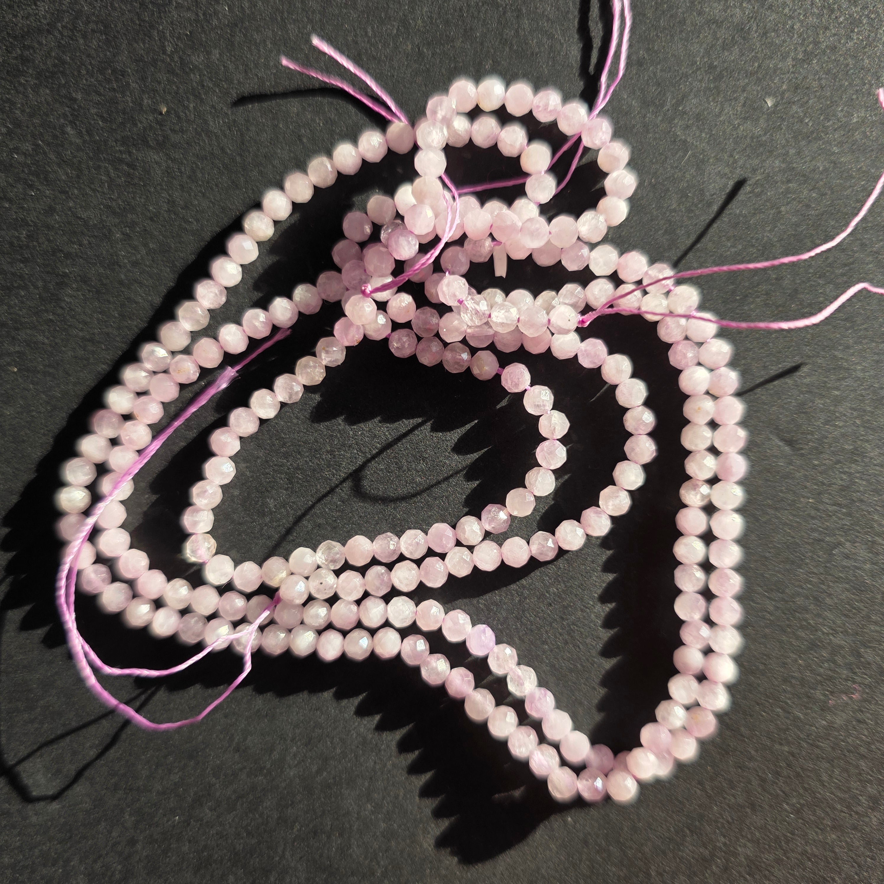 Κολιέ με χάντρες από ημιπολύτιμους λίθους, σφαιρικές φαστσεταρισμένες KUNZITE