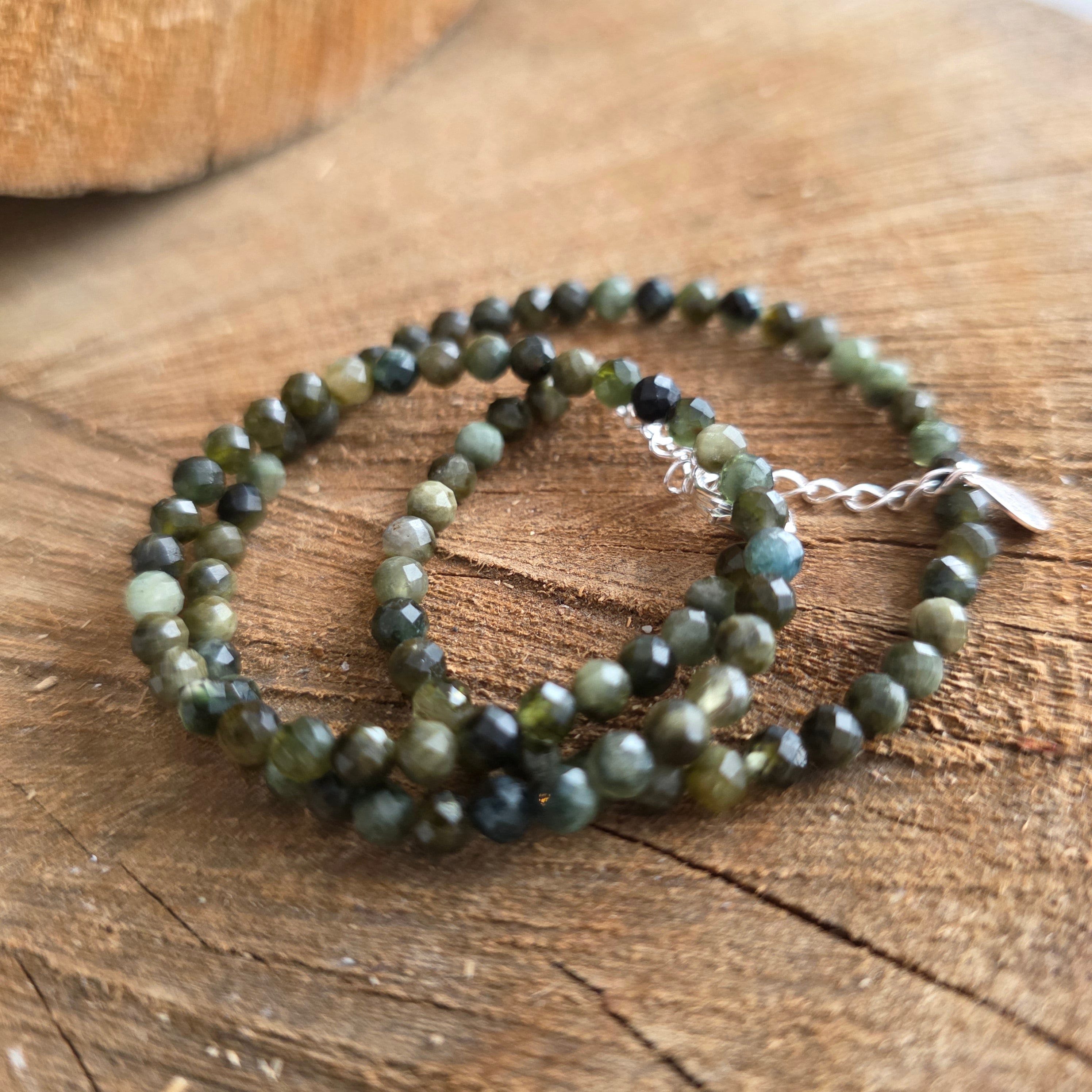 Σχεδιασμός: στρογγυλές χάντρες κομμένες σε φάσετ σε αποχρώσεις του πράσινου – με διακριτικές αντανακλάσεις και ζωηρή, κομψή και φυσική εμφάνιση