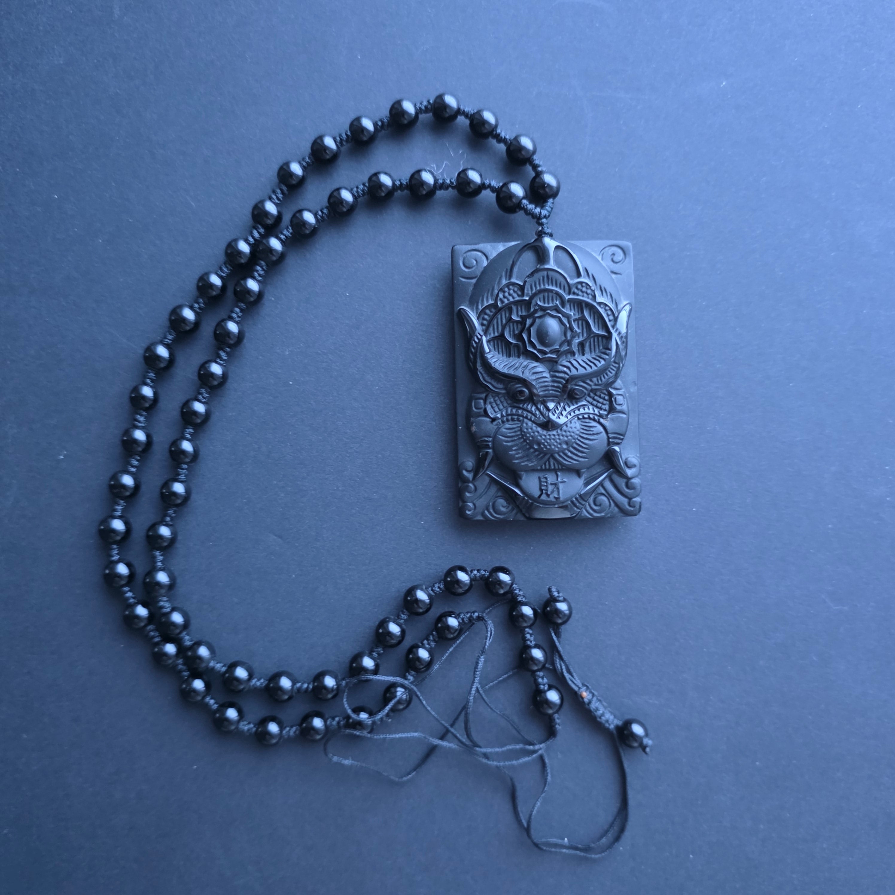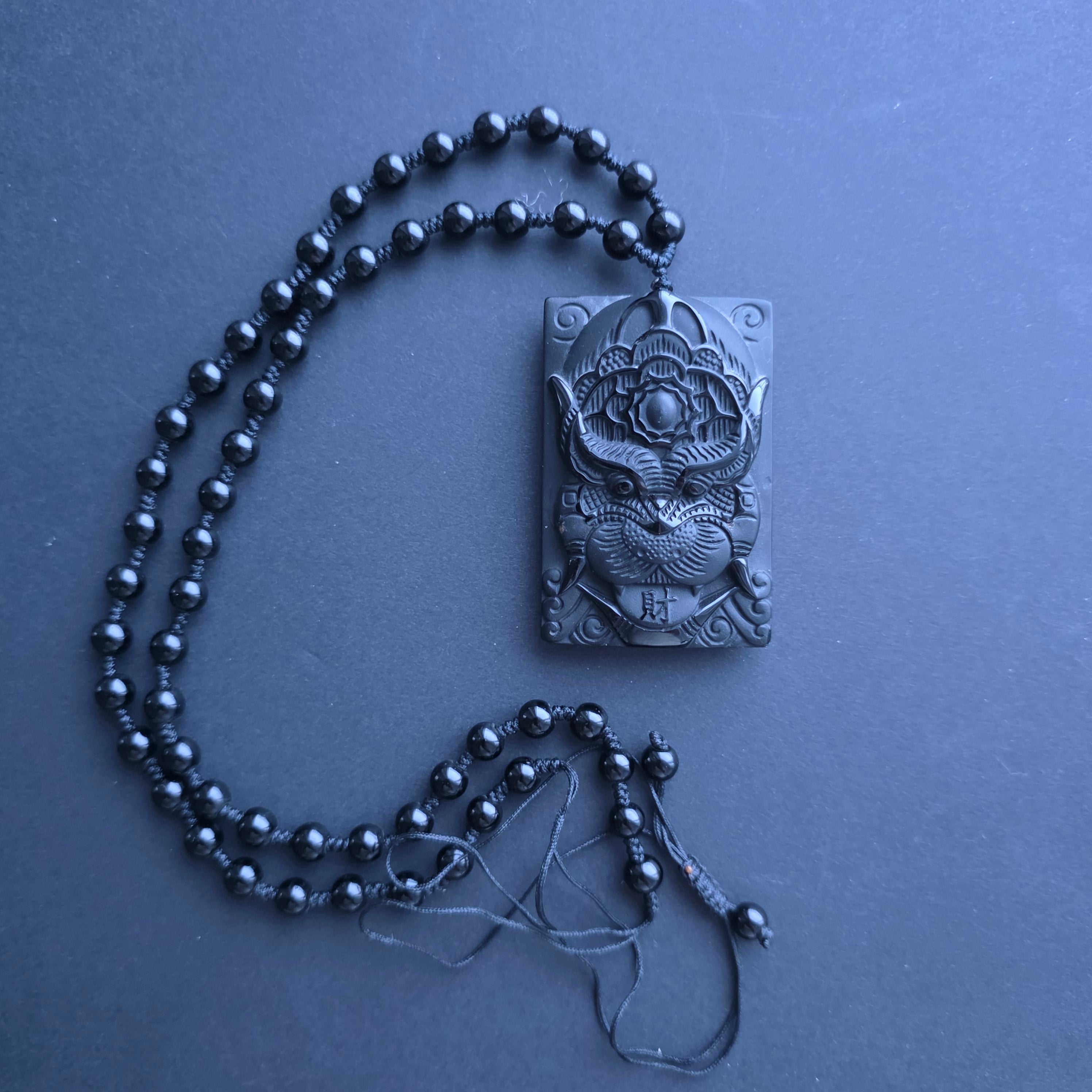 Περιγραφή - Κολιέ φυλαχτό από μαύρο οψιδιανό | Δράκος