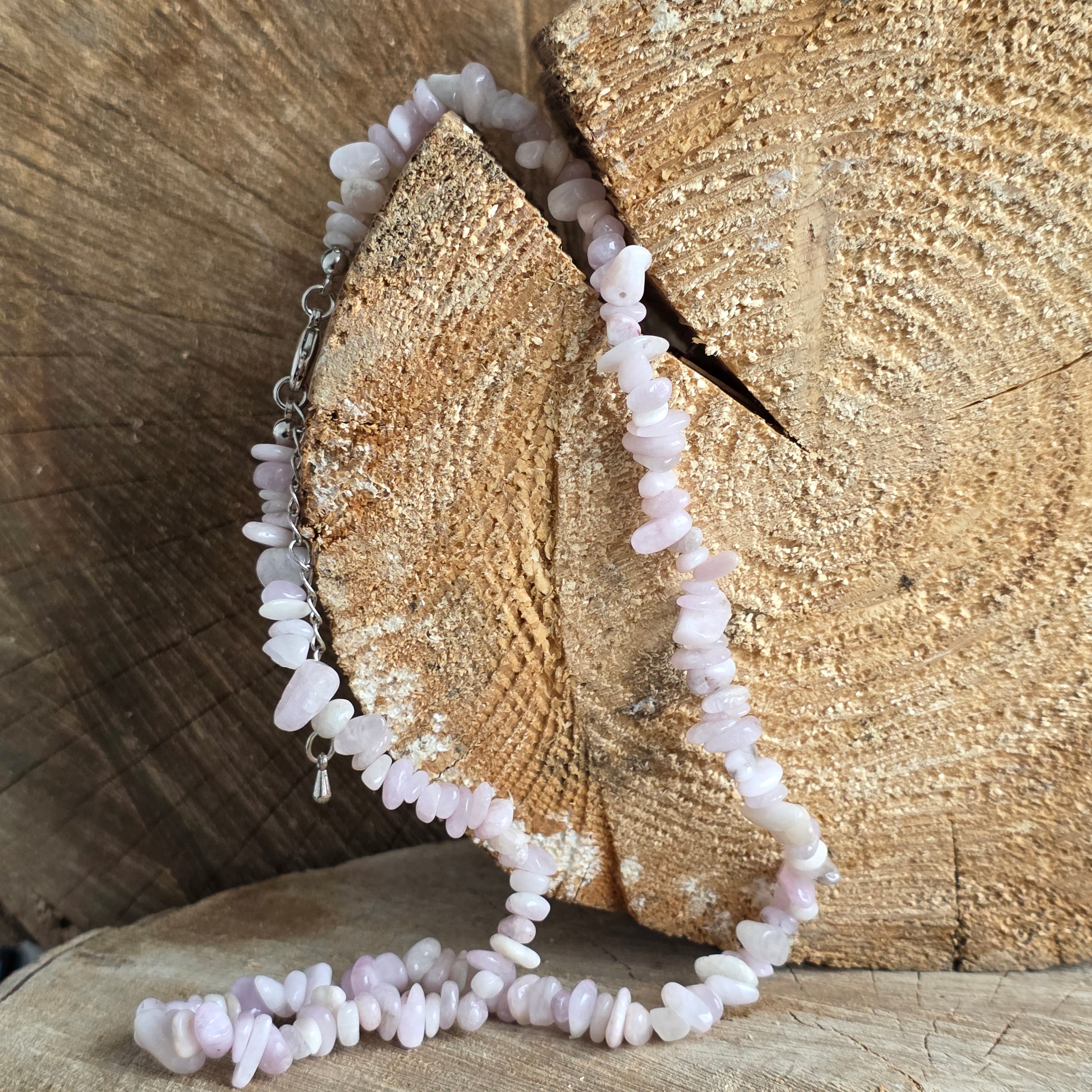 Μακρύ κολιέ kunzit chips, μέγεθος περίπου 45 cm